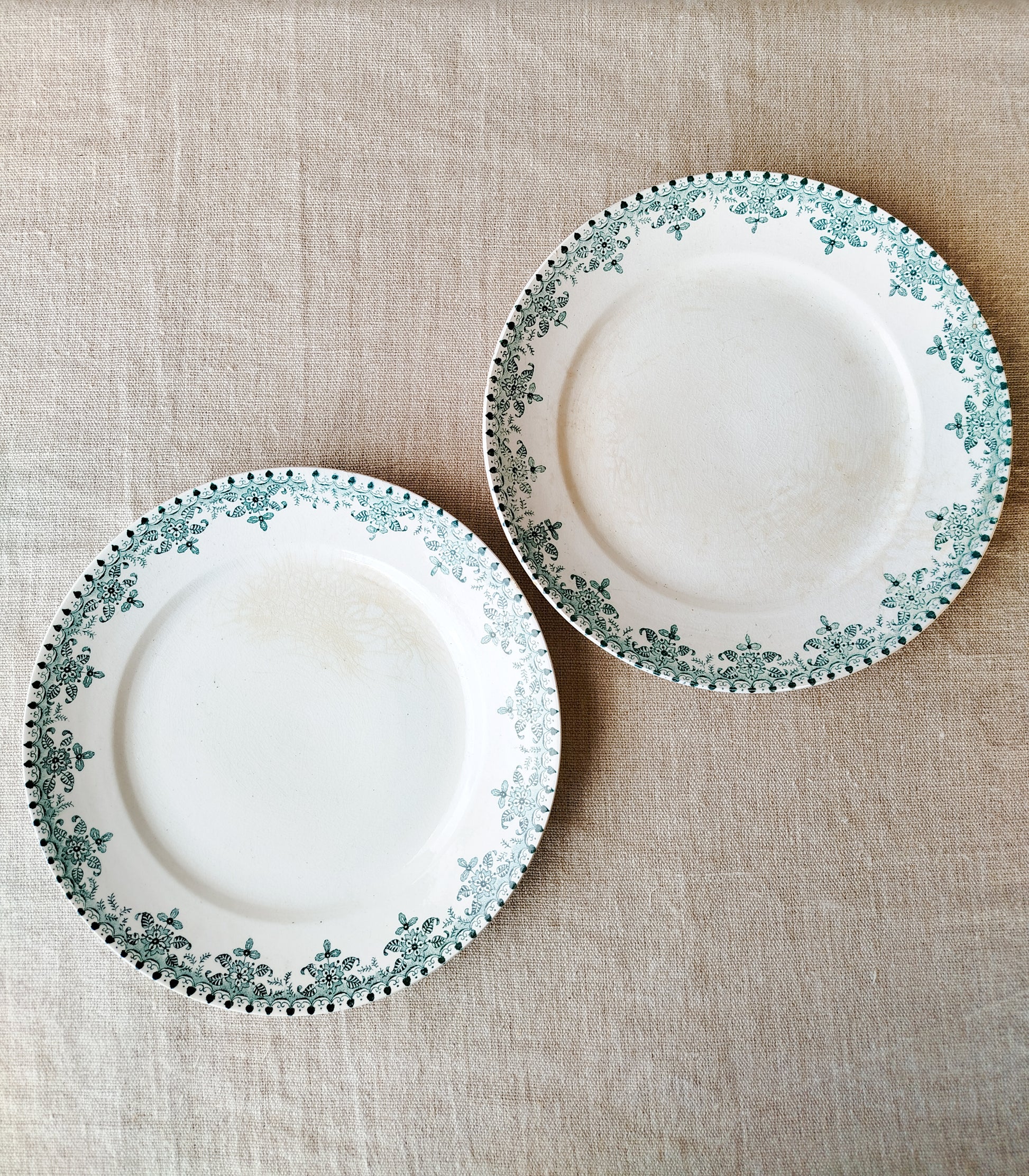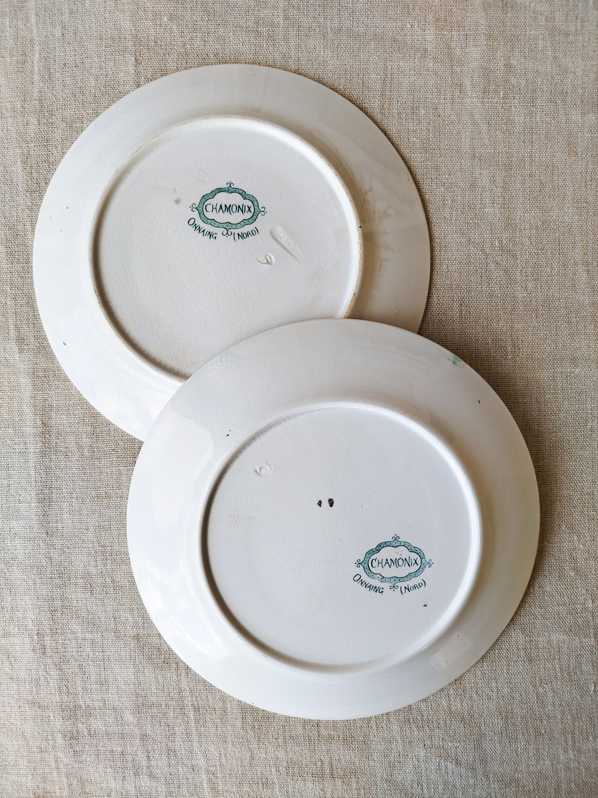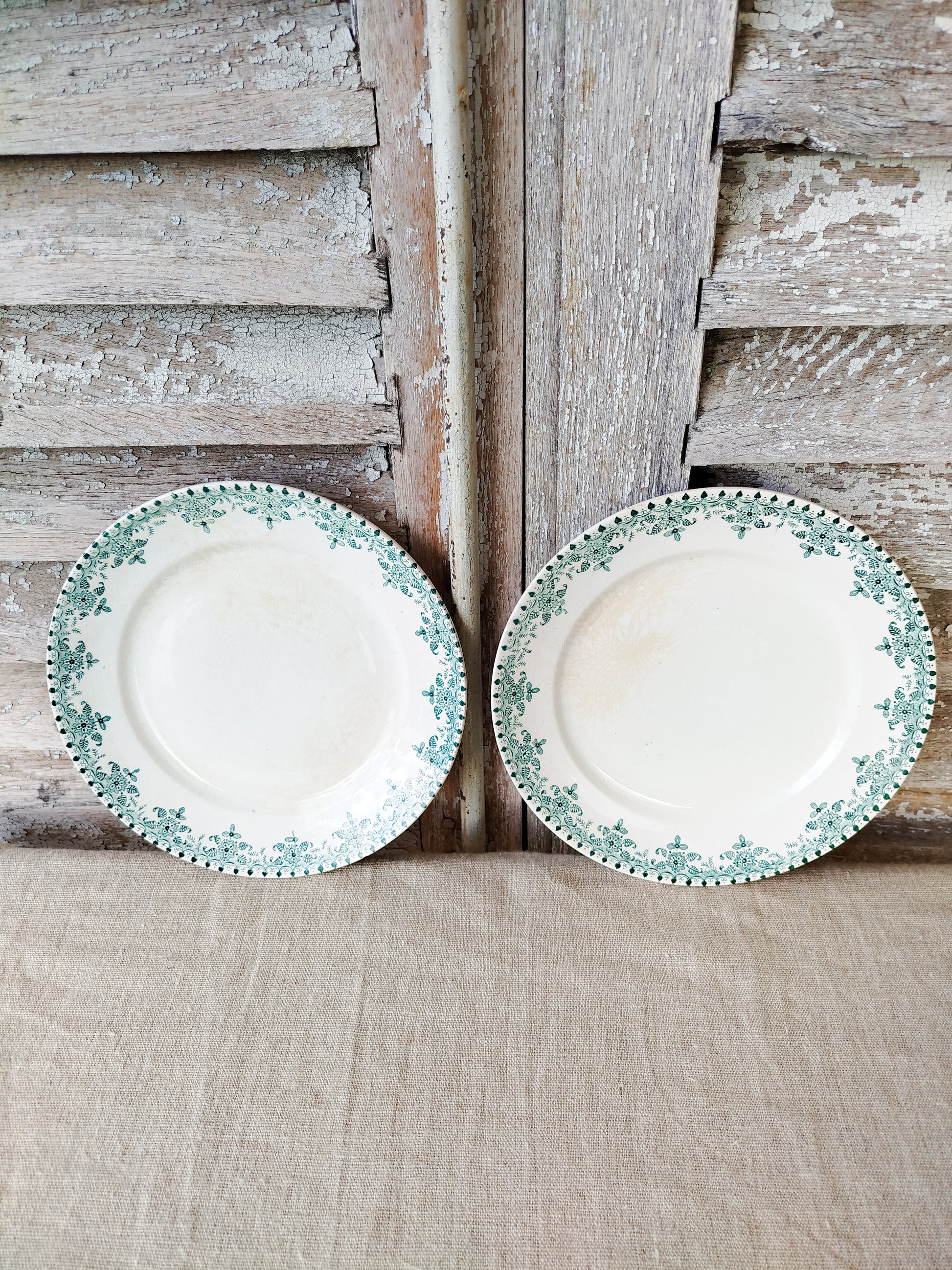 Ensemble de deux assiettes à dessert anciennes en terre de fer.