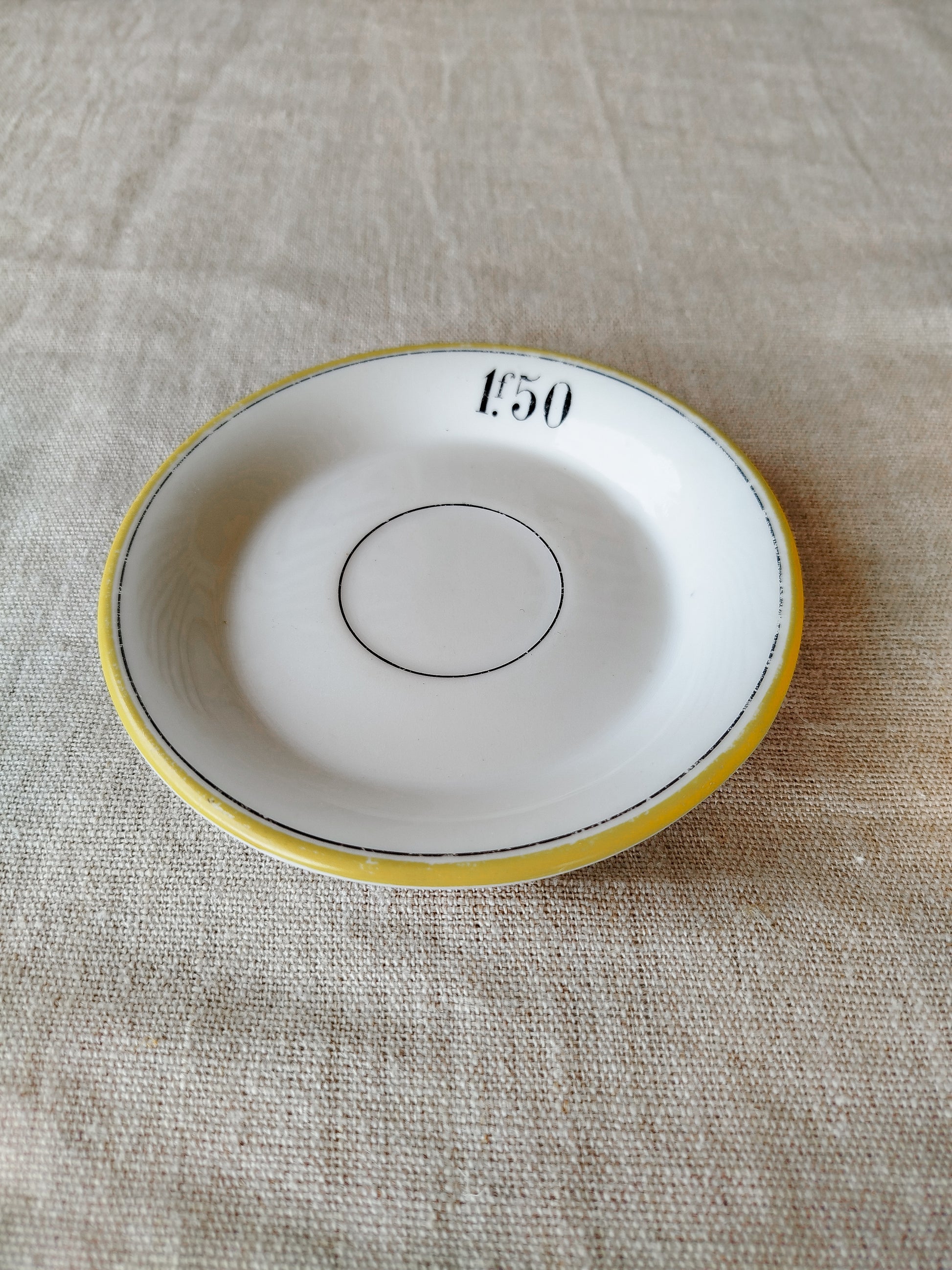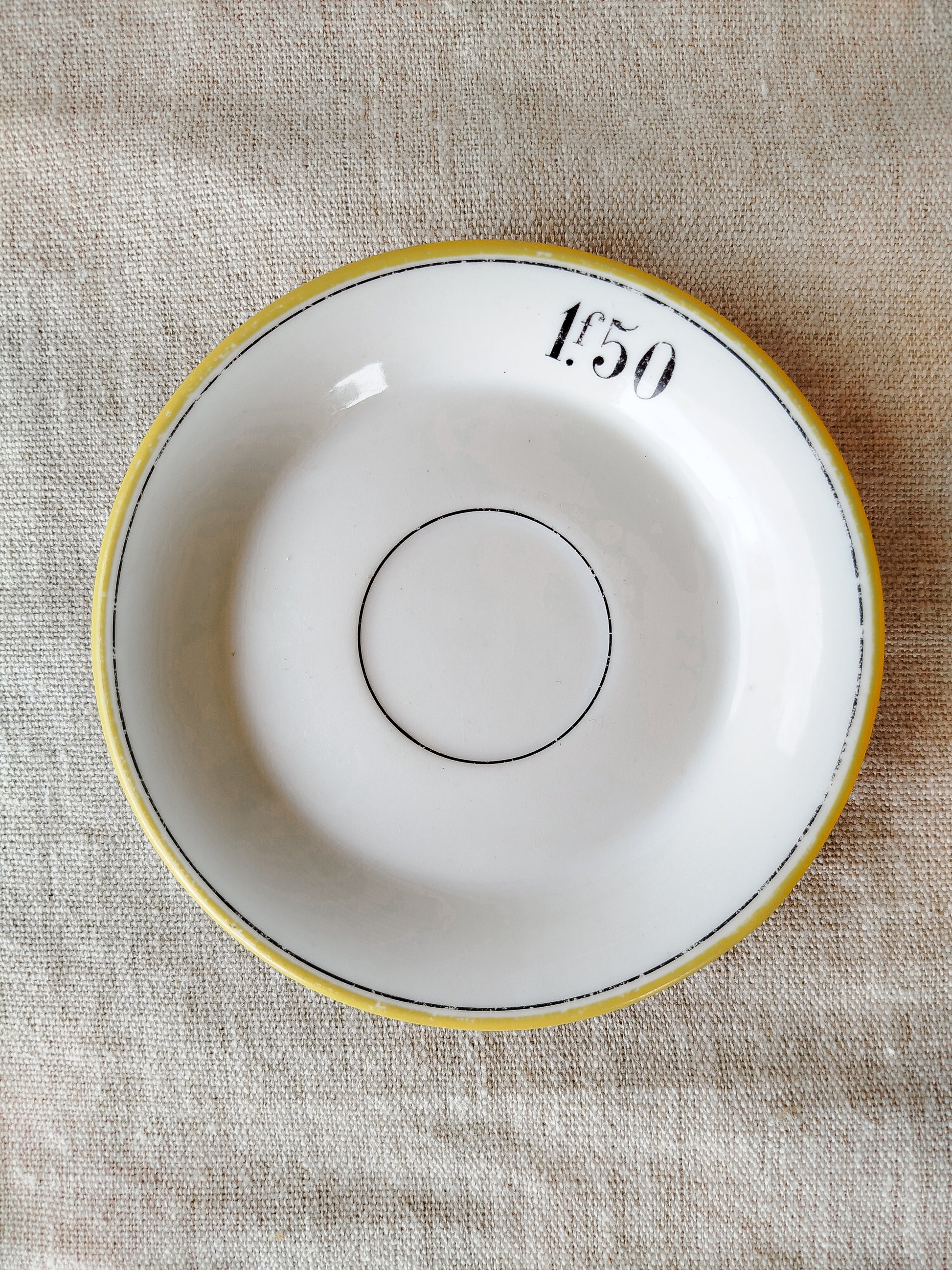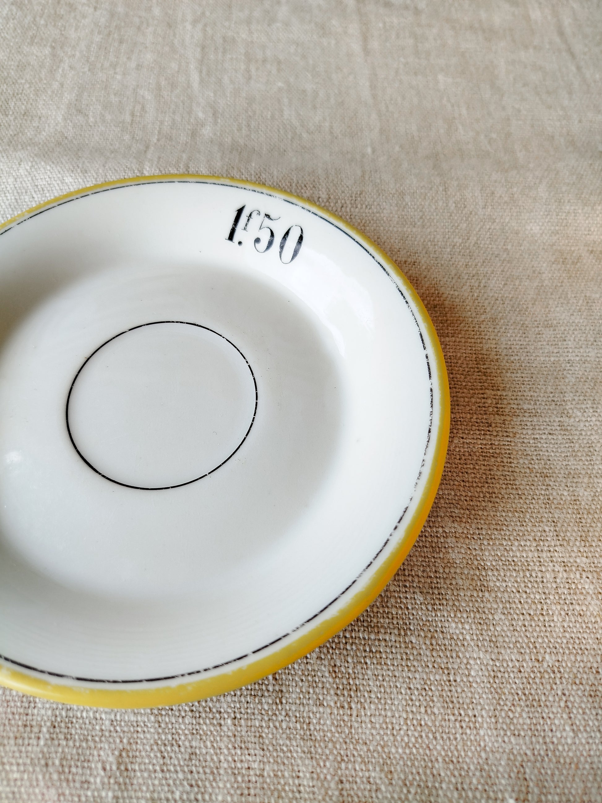 Utilisée à l'époque dans les bistrots comme la tarification des consommations. Le verre était apporté sur cette coupelle.