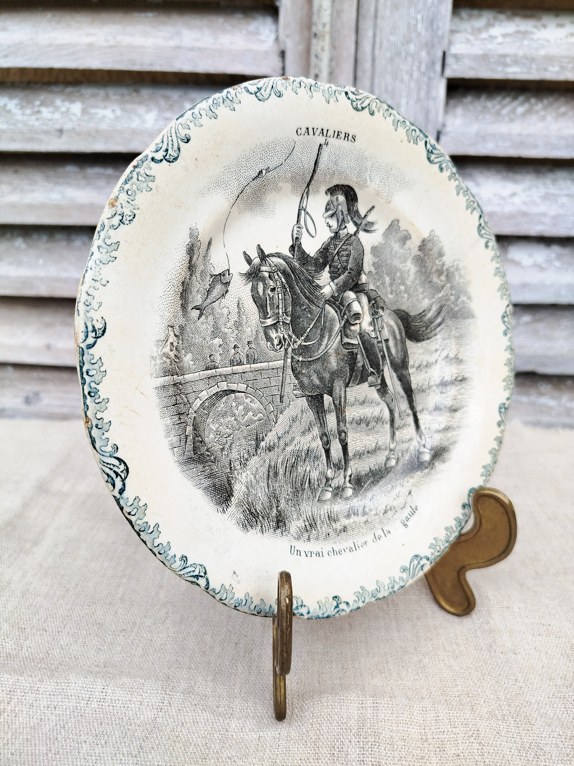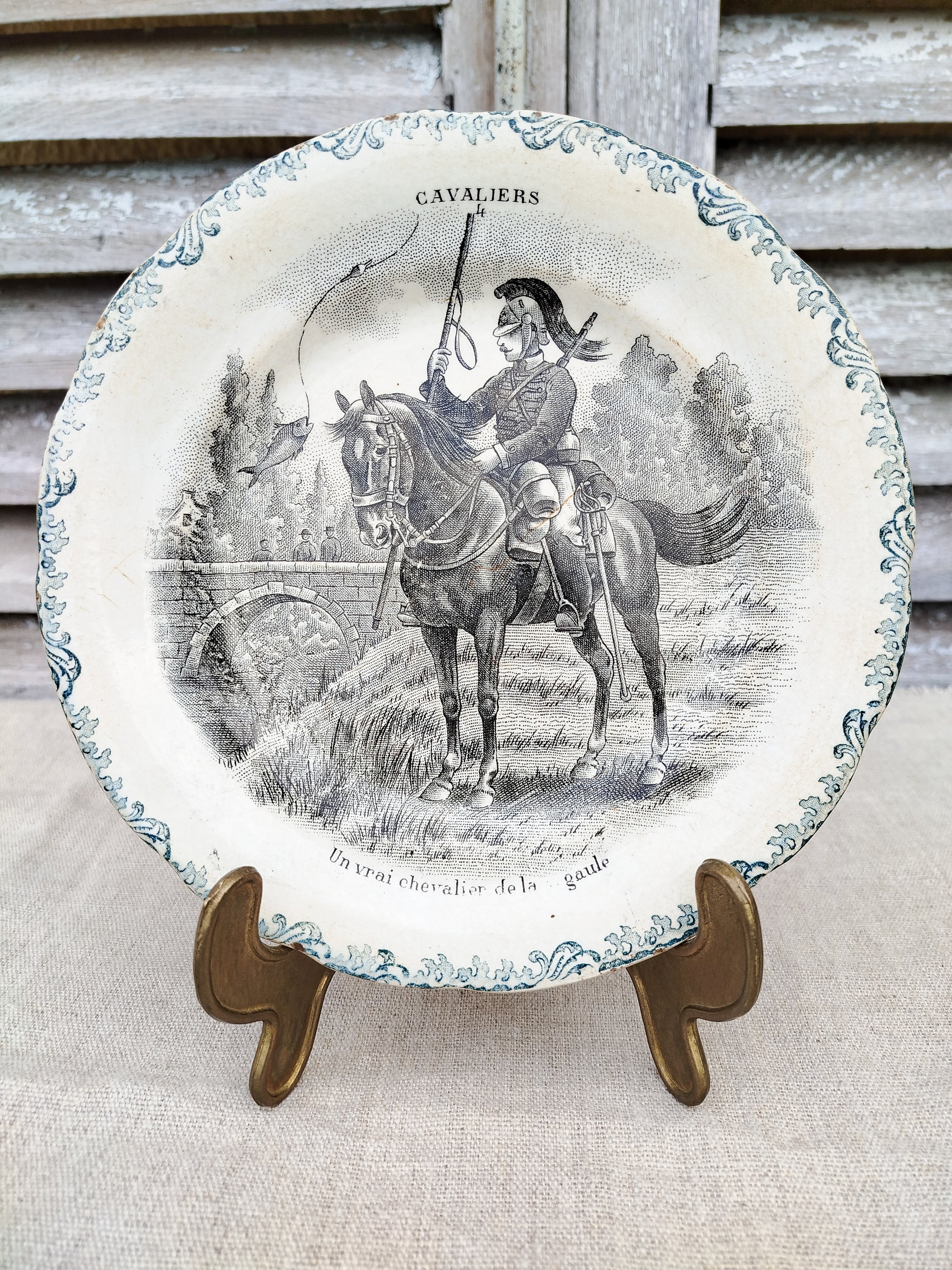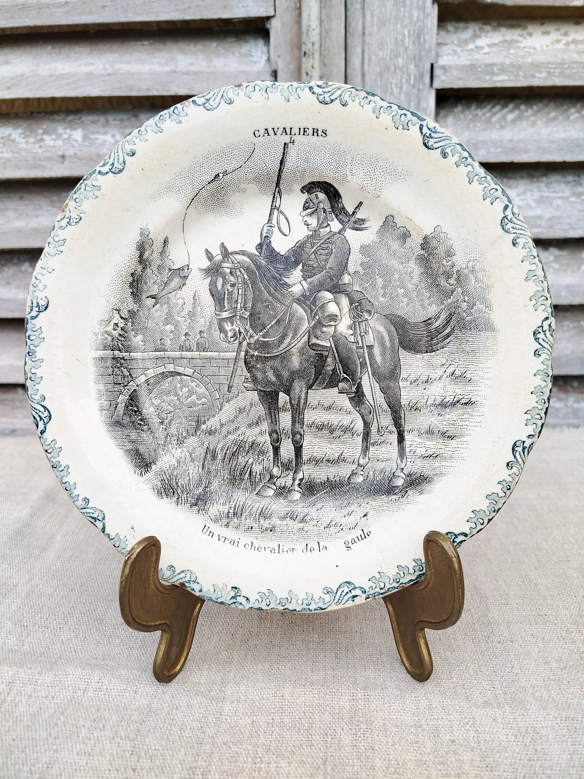 Elles possèdent chacune un décor différent, représentant une scène de cavalerie, accompagnée d'une légende au bas de l'assiette.