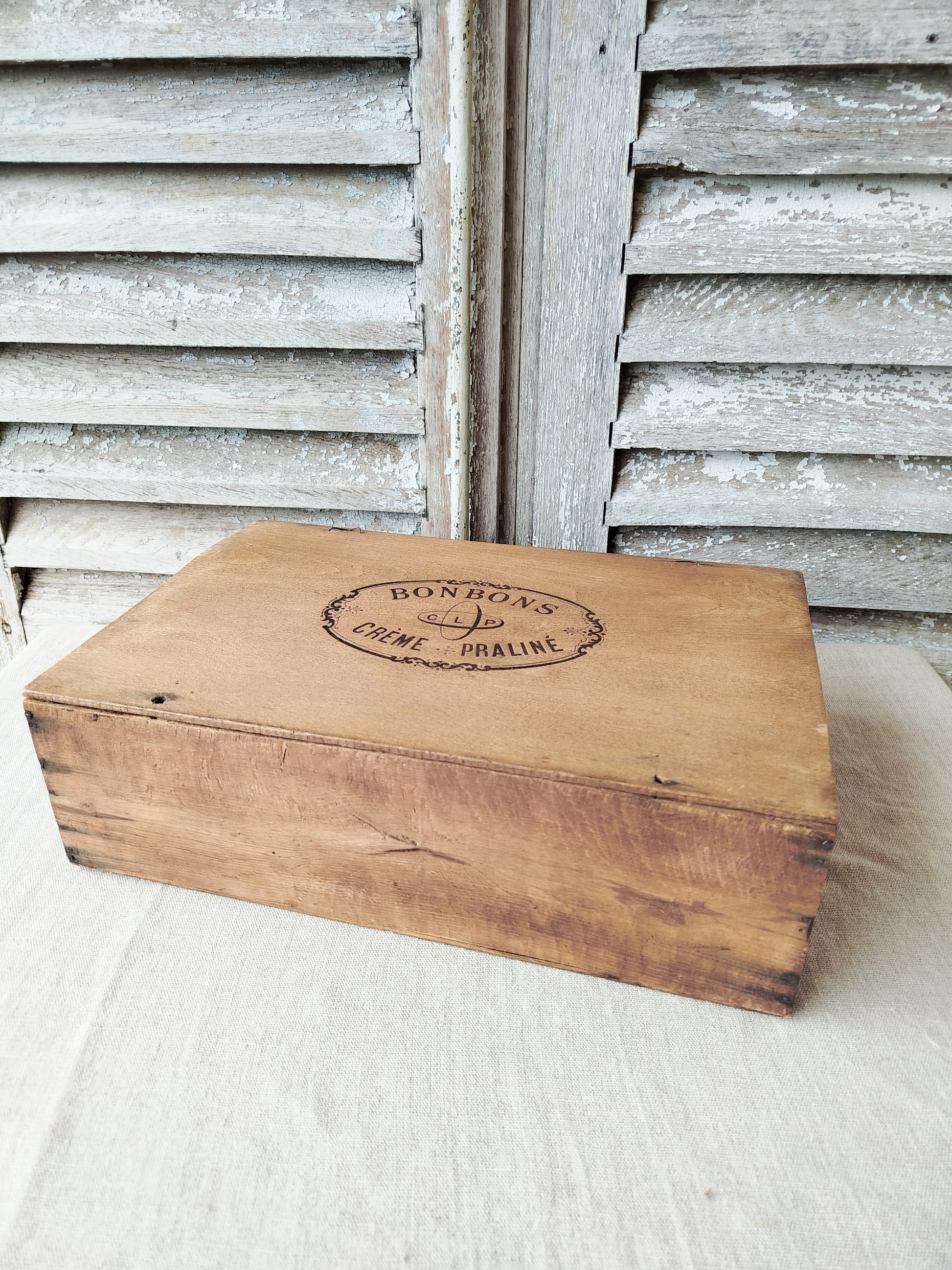 On peut y lire " Bonbons CLP crème praliné " en écritures noires.