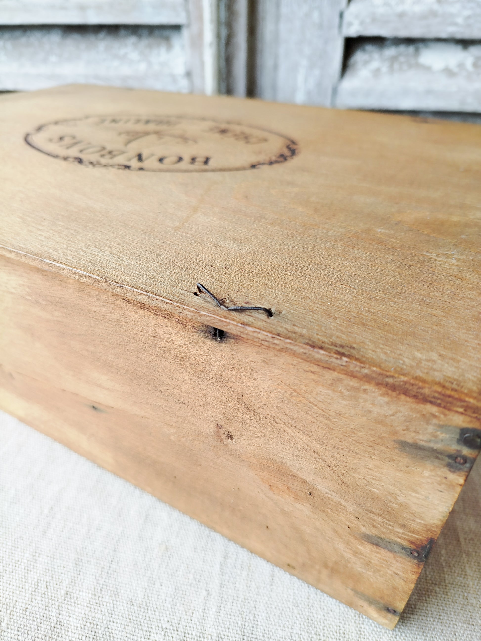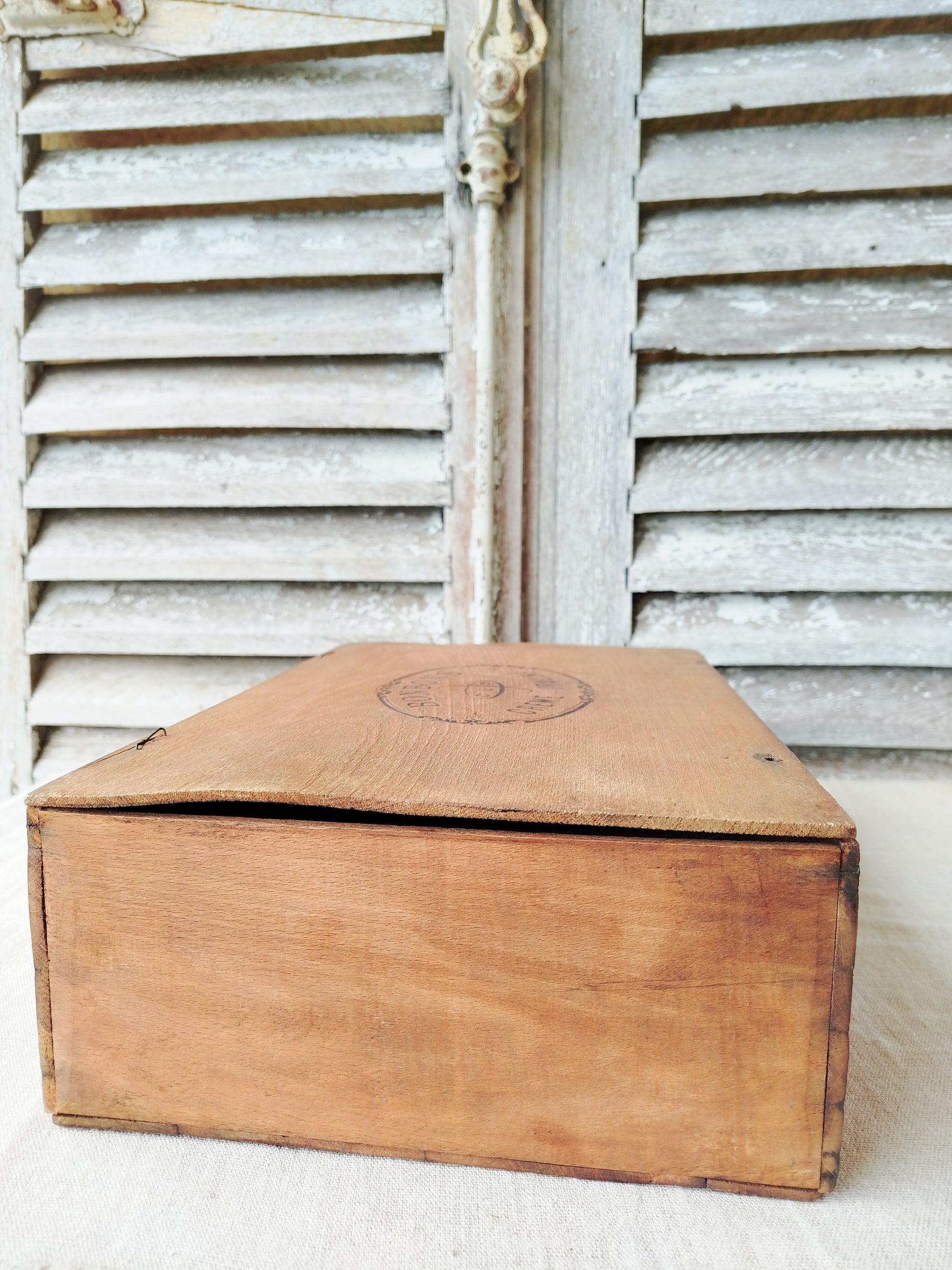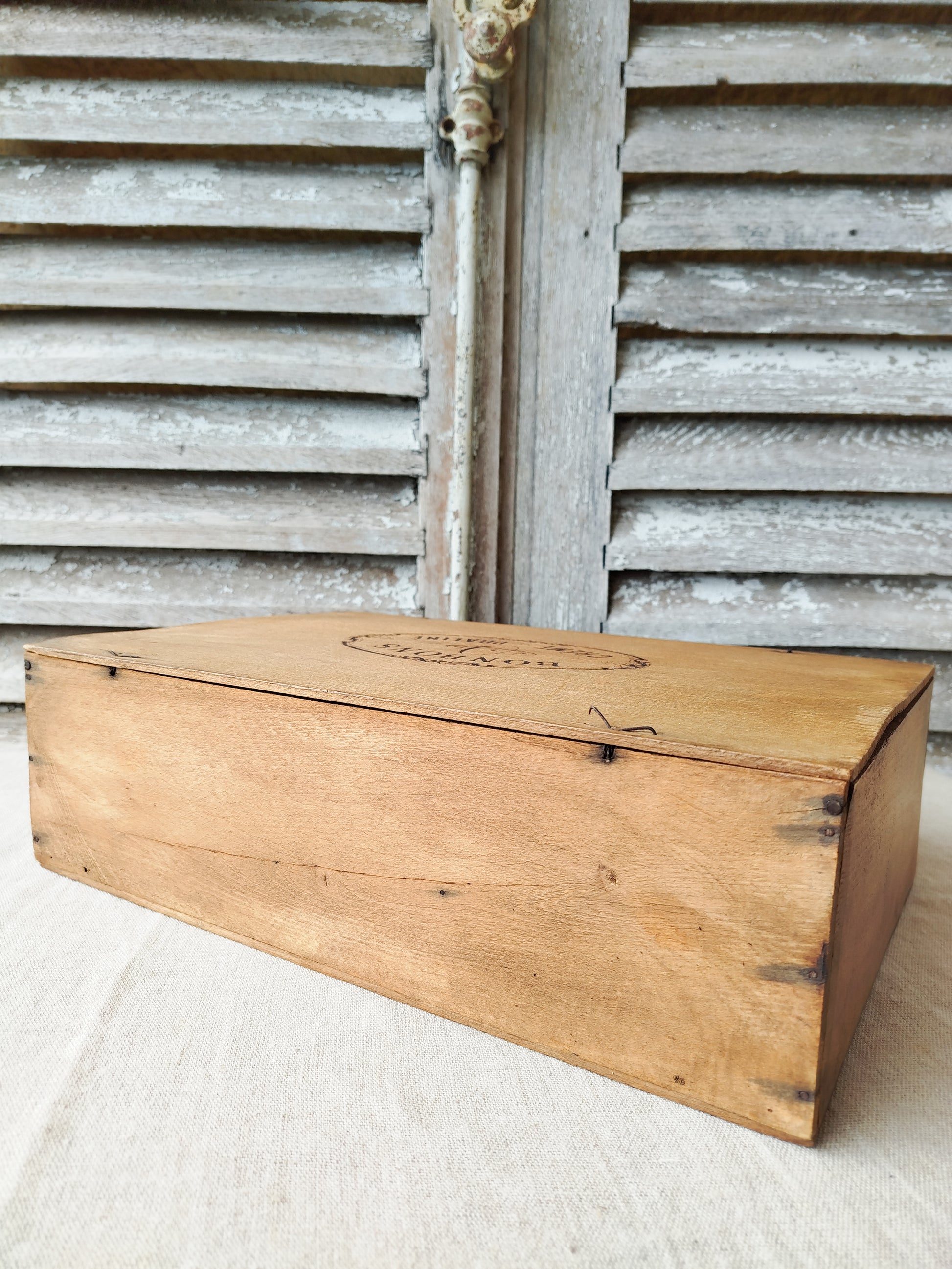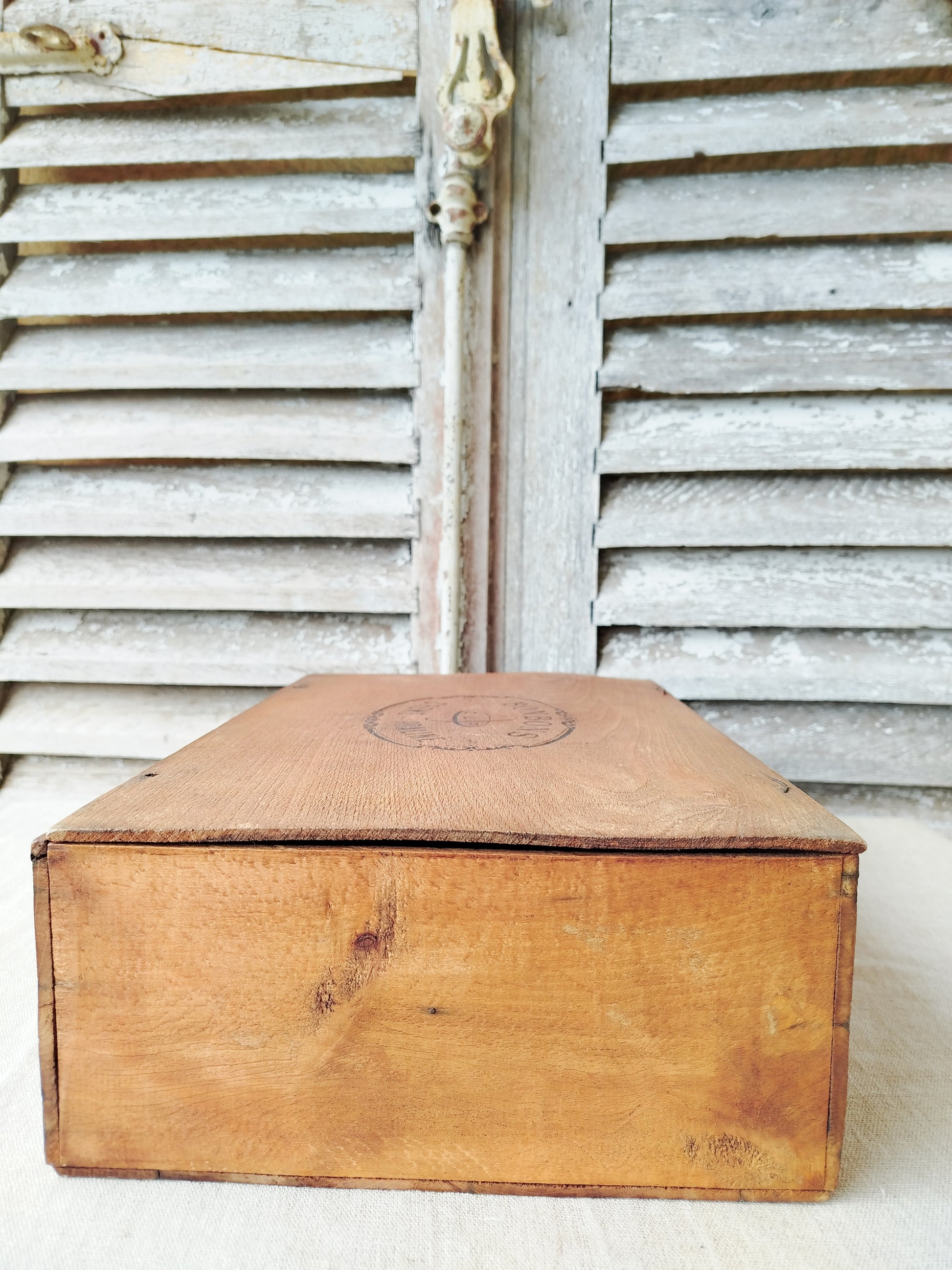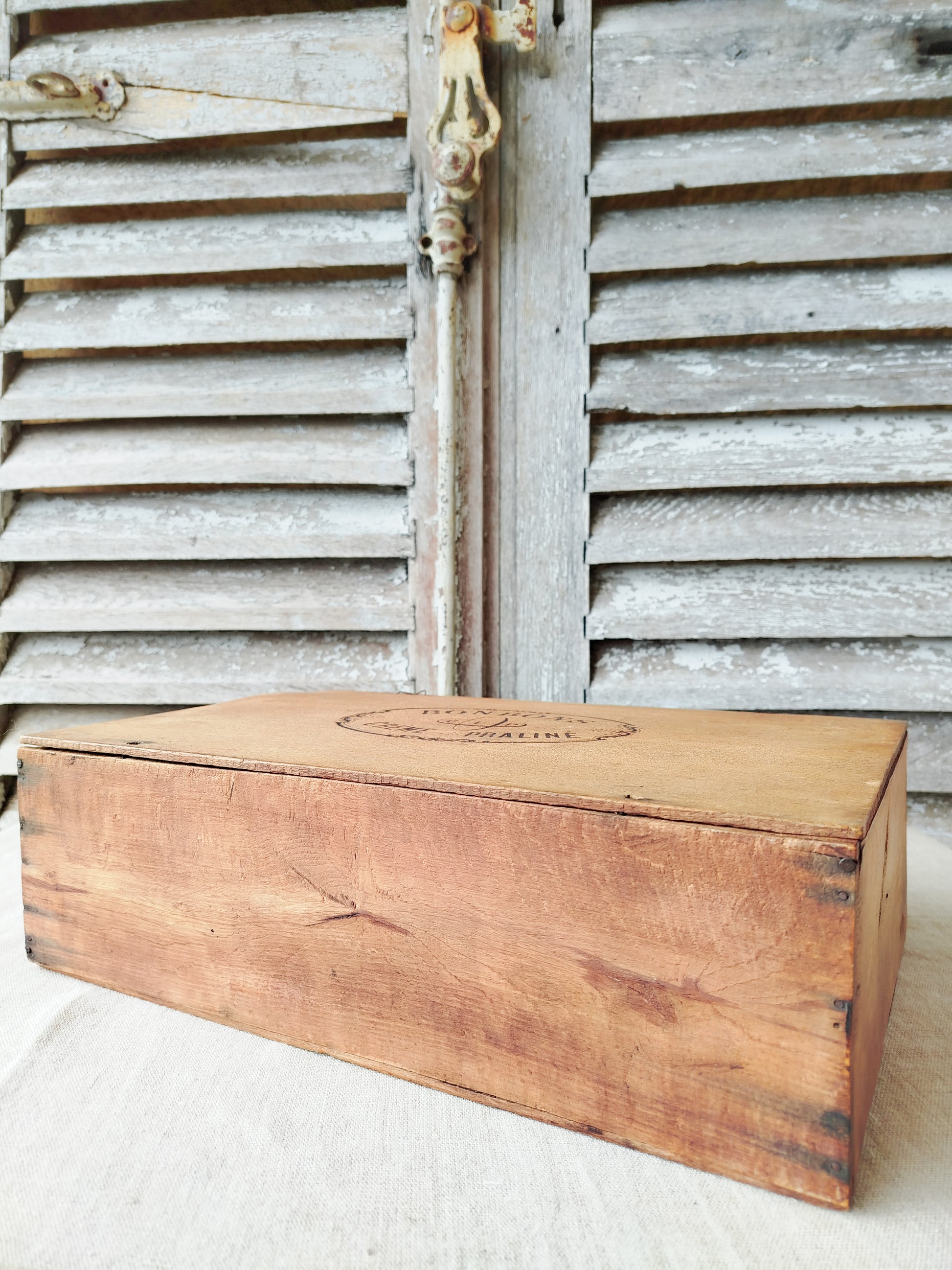 Avec écritures publicitaires sur le couvercle de la boîte.