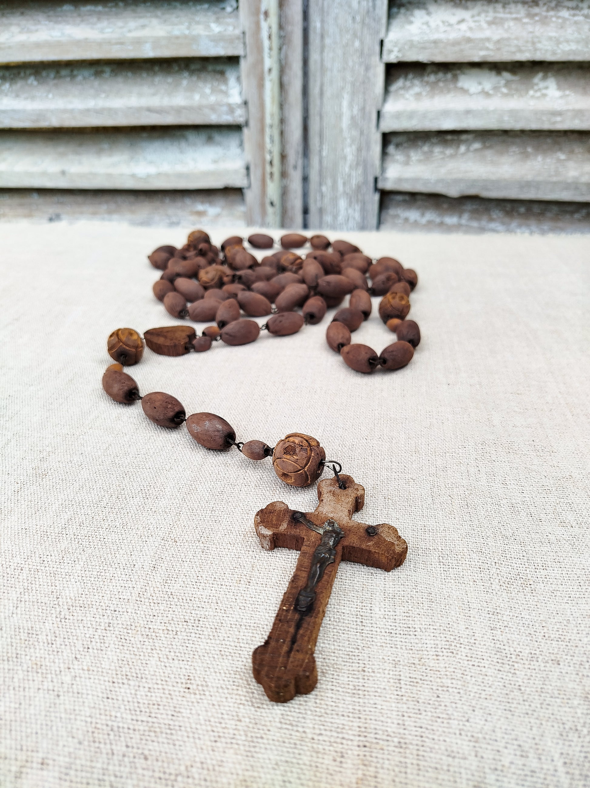Chapelet géant antique et français en bois.