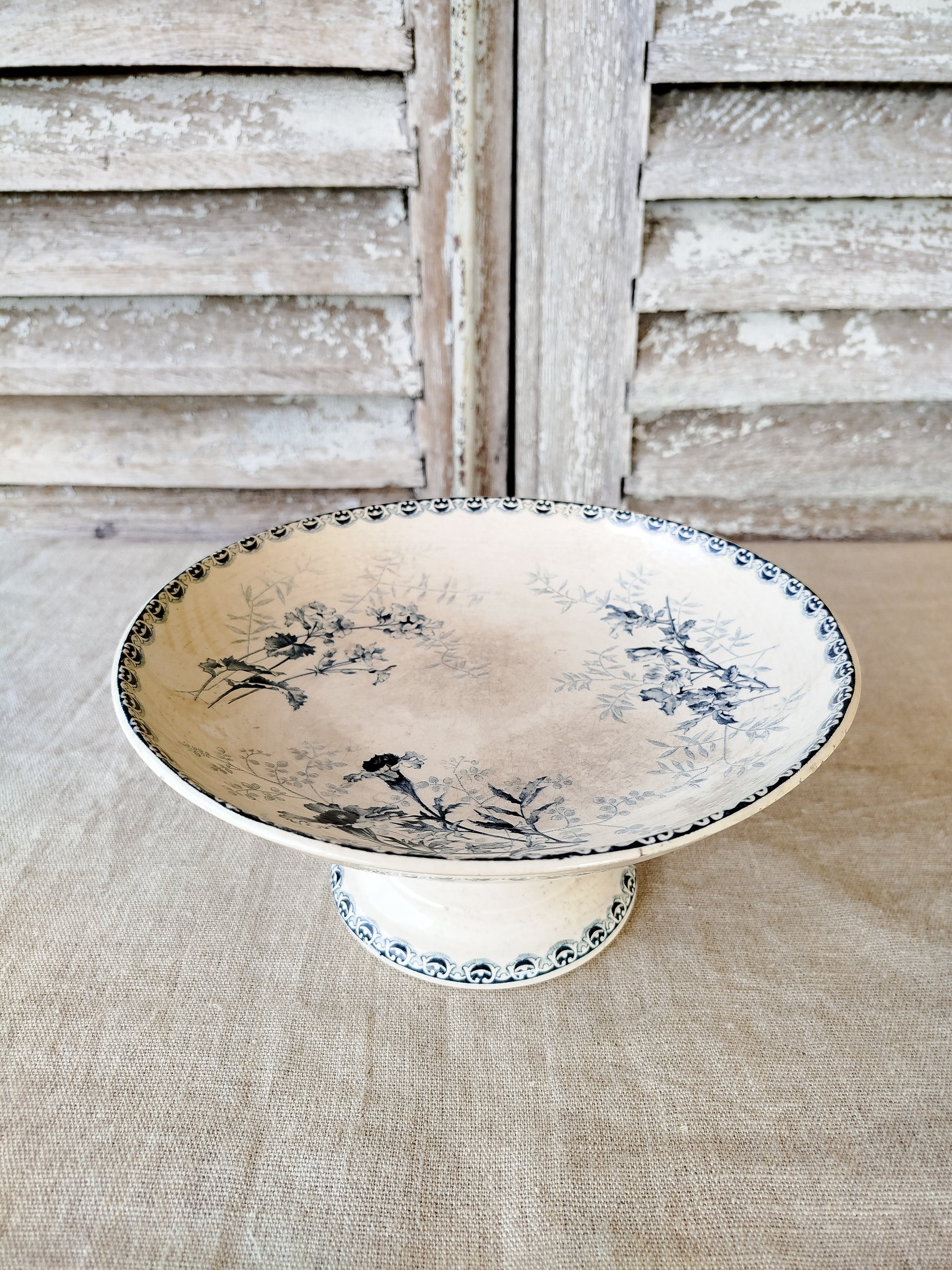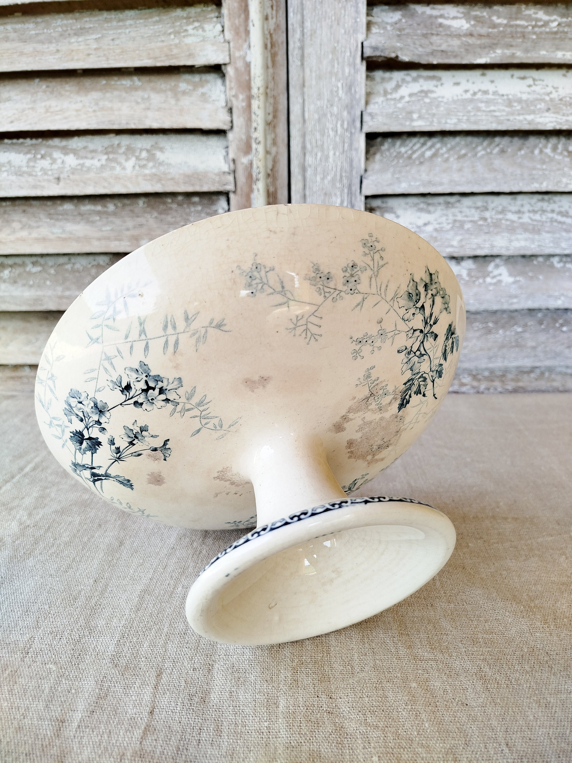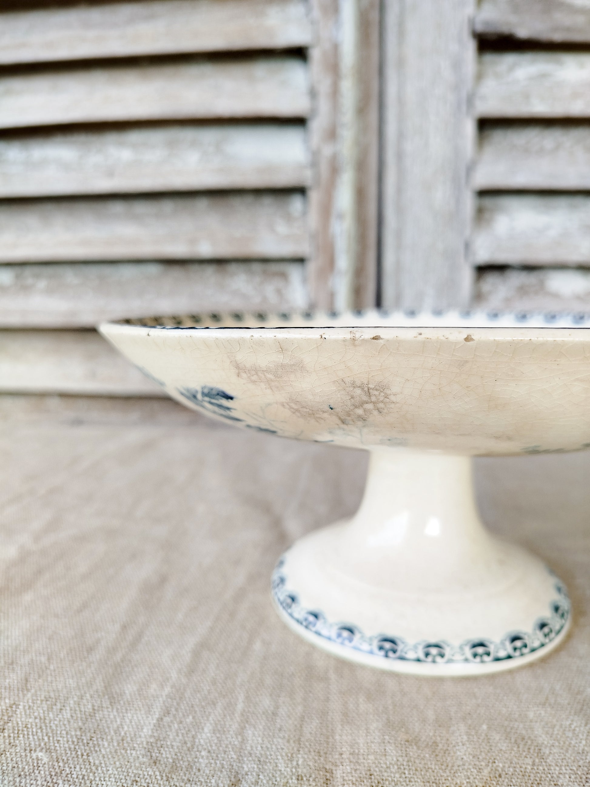 Différentes tâches de patine ancienne sont présentes sur le compotier, ainsi que des craquelures à la surface de l'email.