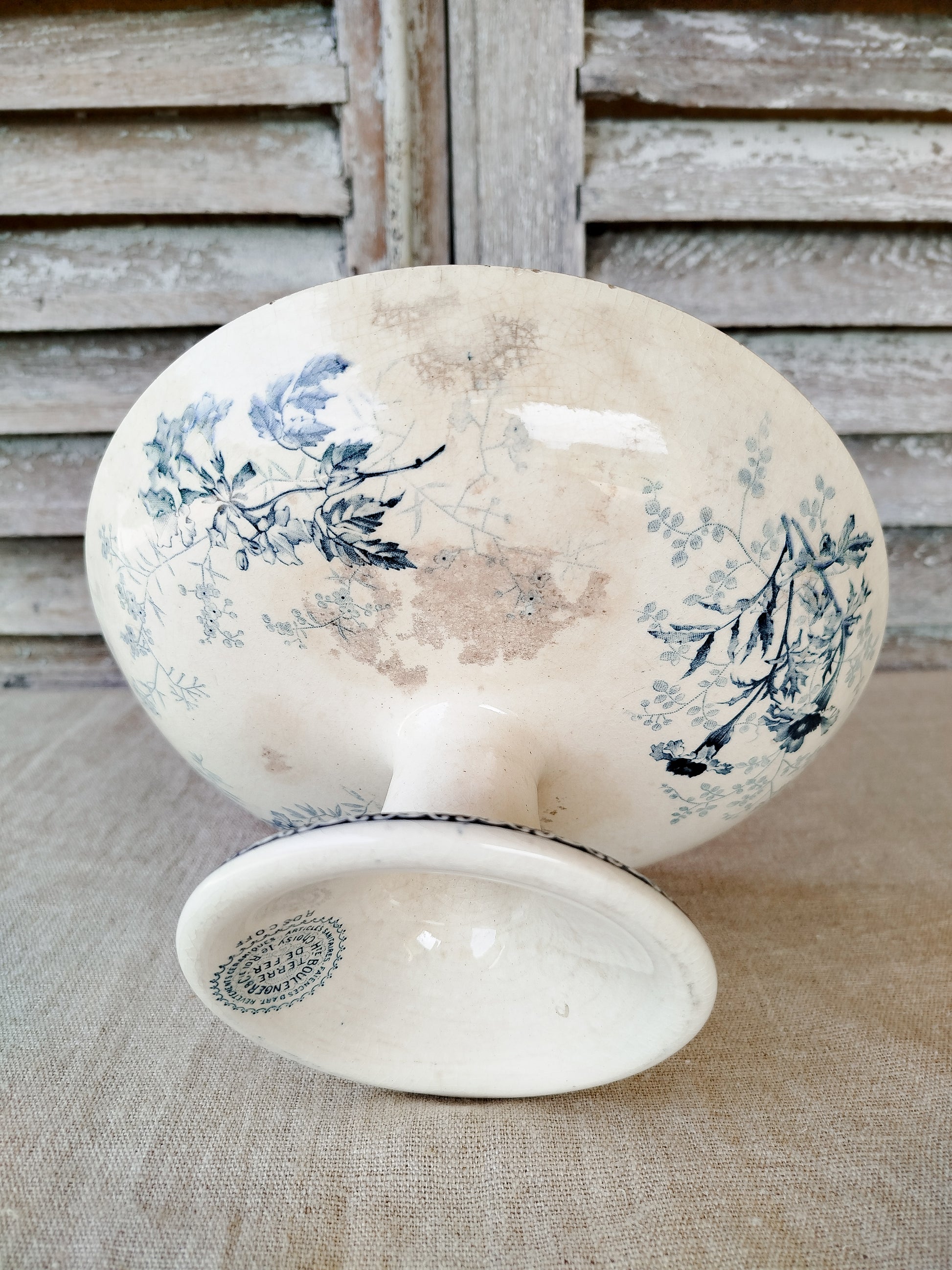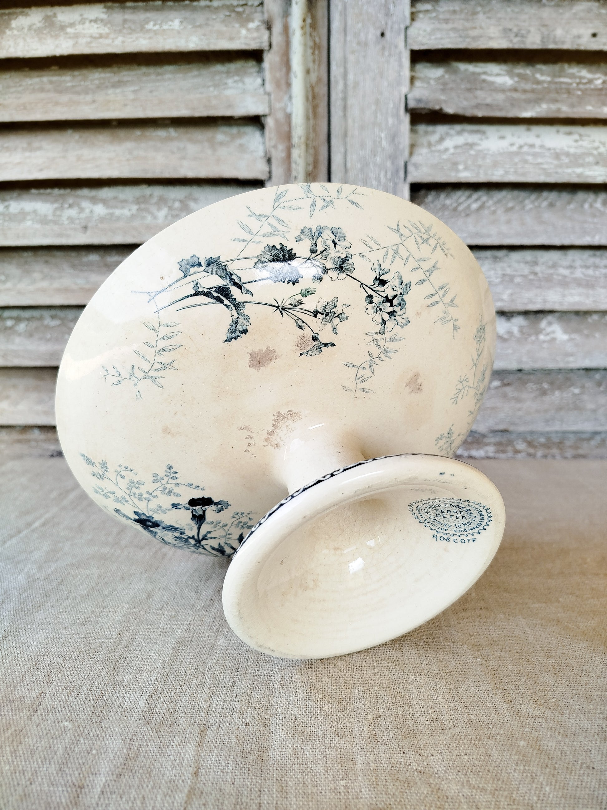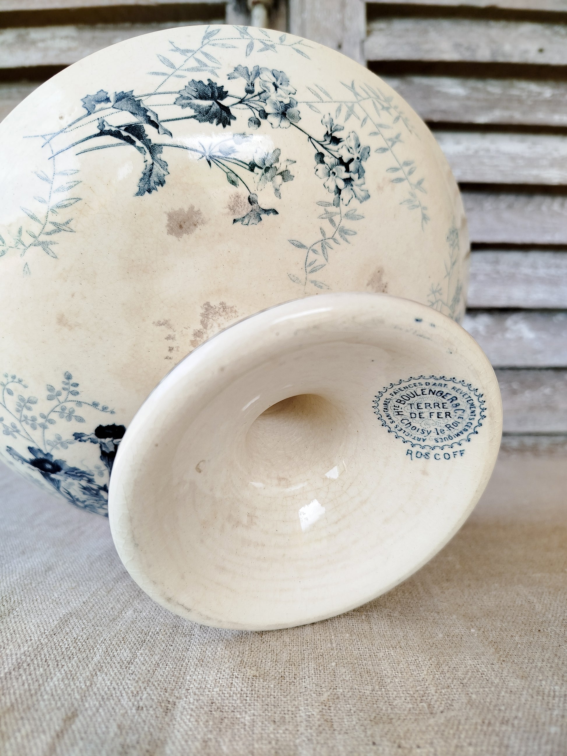 Le compotier est estampillé au dessous avec les mentions : " Faïences d'art revêtements céramiques articles sanitaires Hte Boulenger & Cie Choisy le roi Terre de fer ".