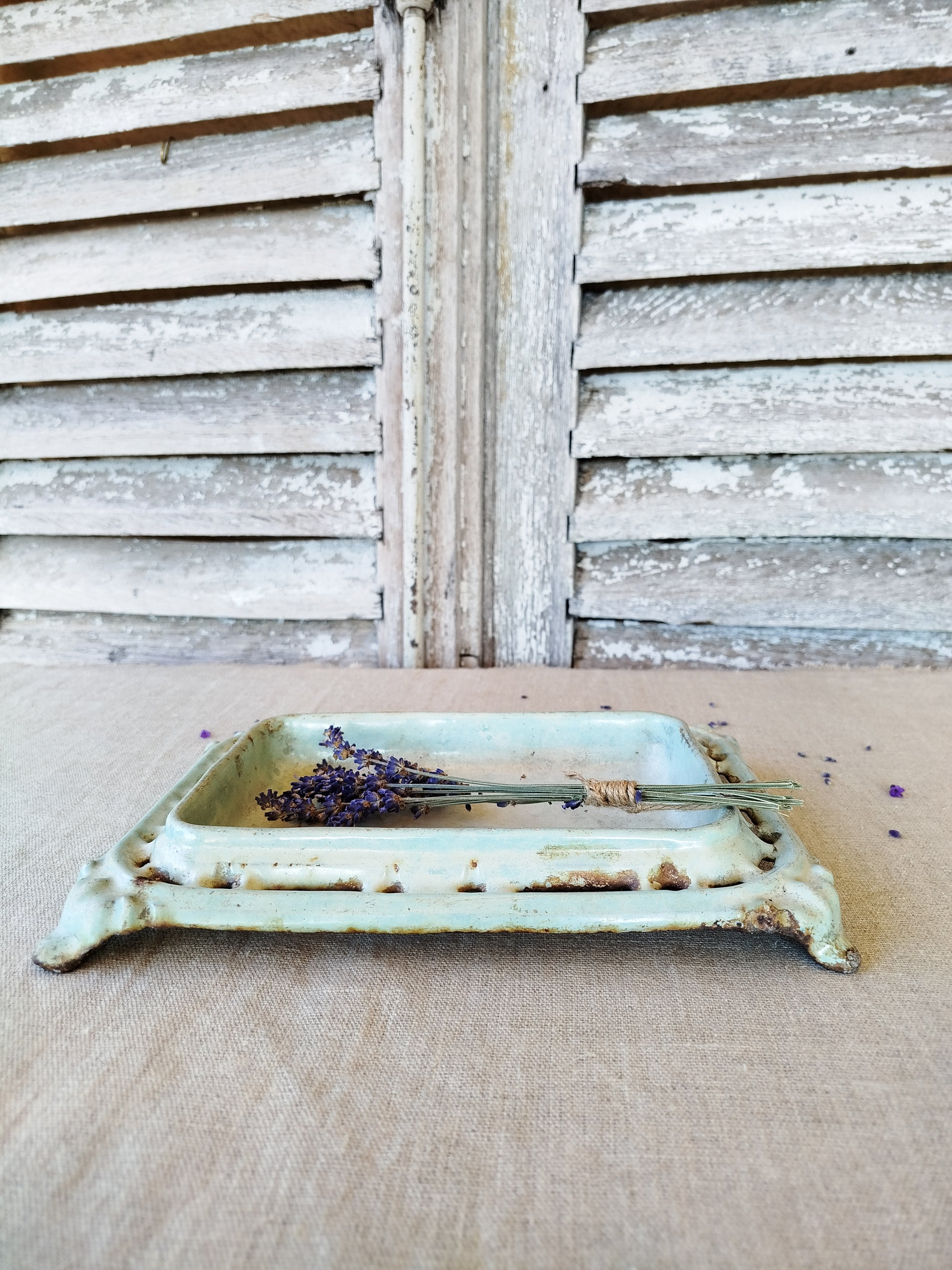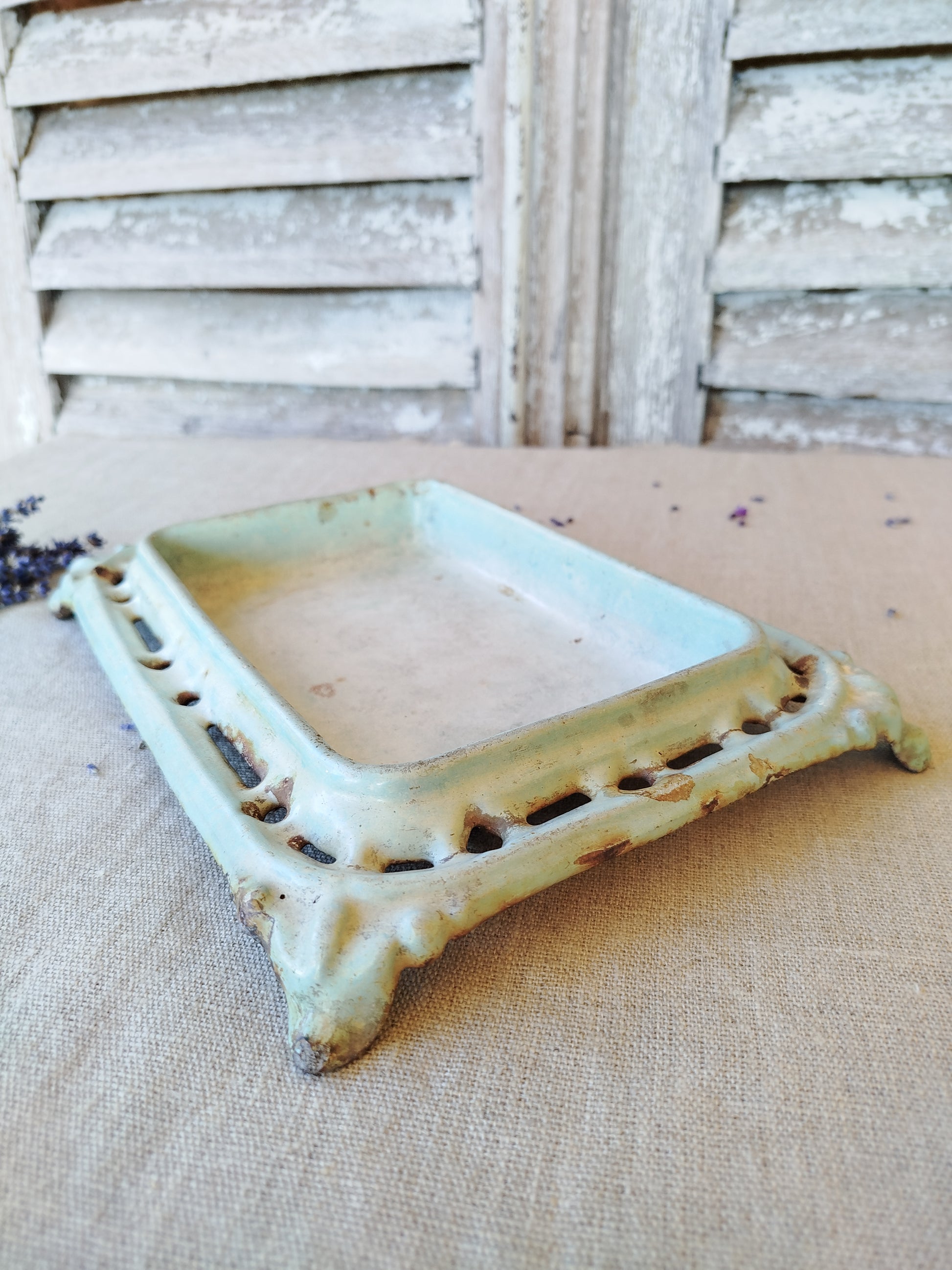 Celui-ci est en fonte émaillée avec une jolie couleur "bleu pervenche".