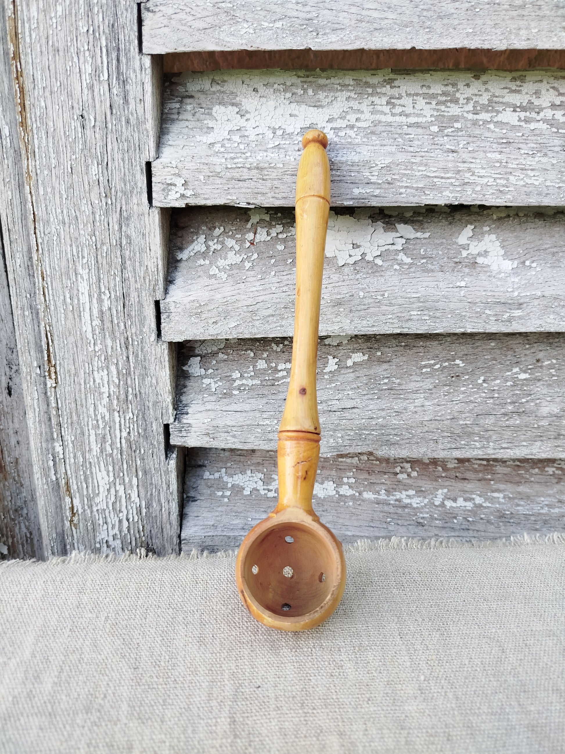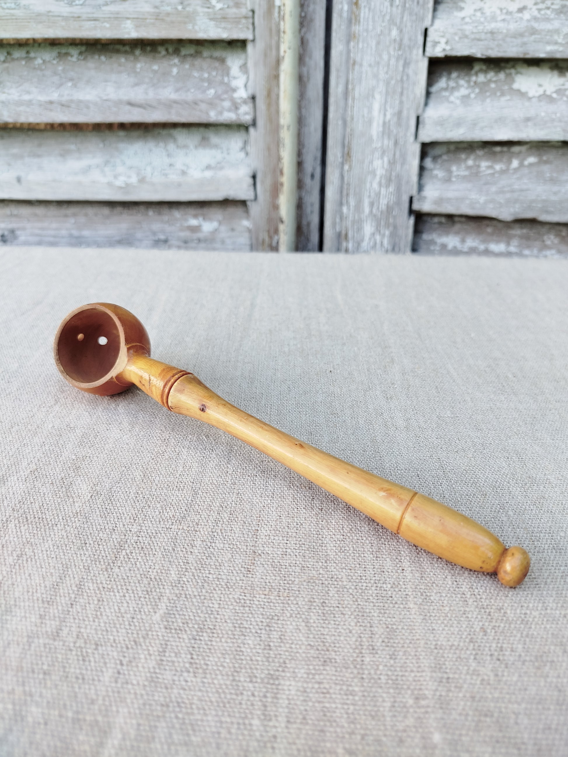 En bon état mais le vernis est écaillé sur la louche de la cuillère. (Voir photos).