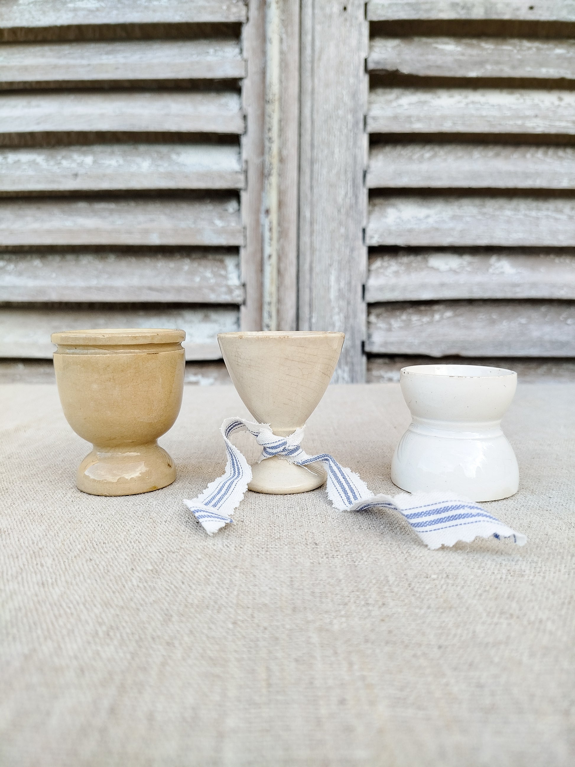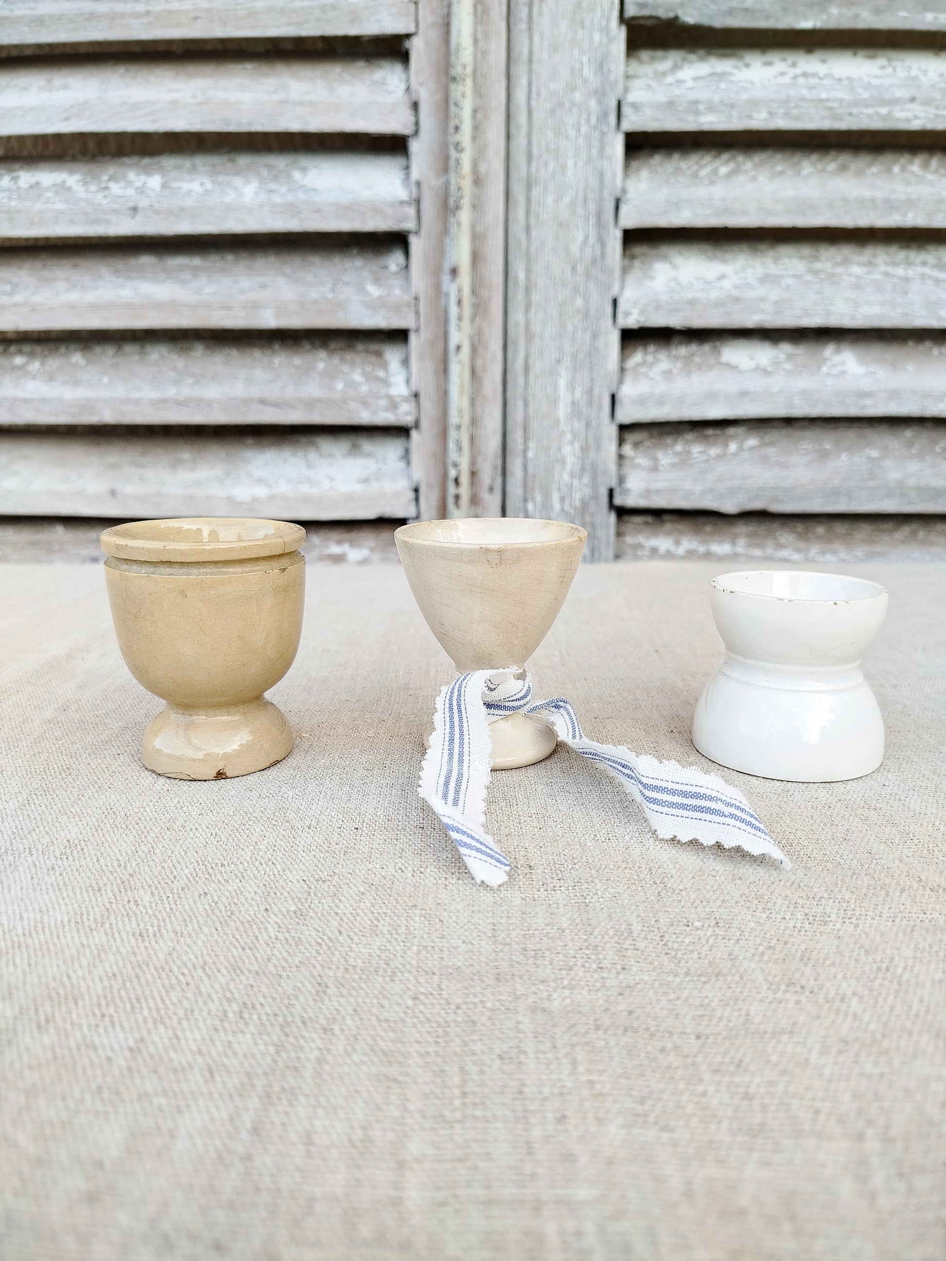 Ensemble de trois coquetiers ancien en faïence.