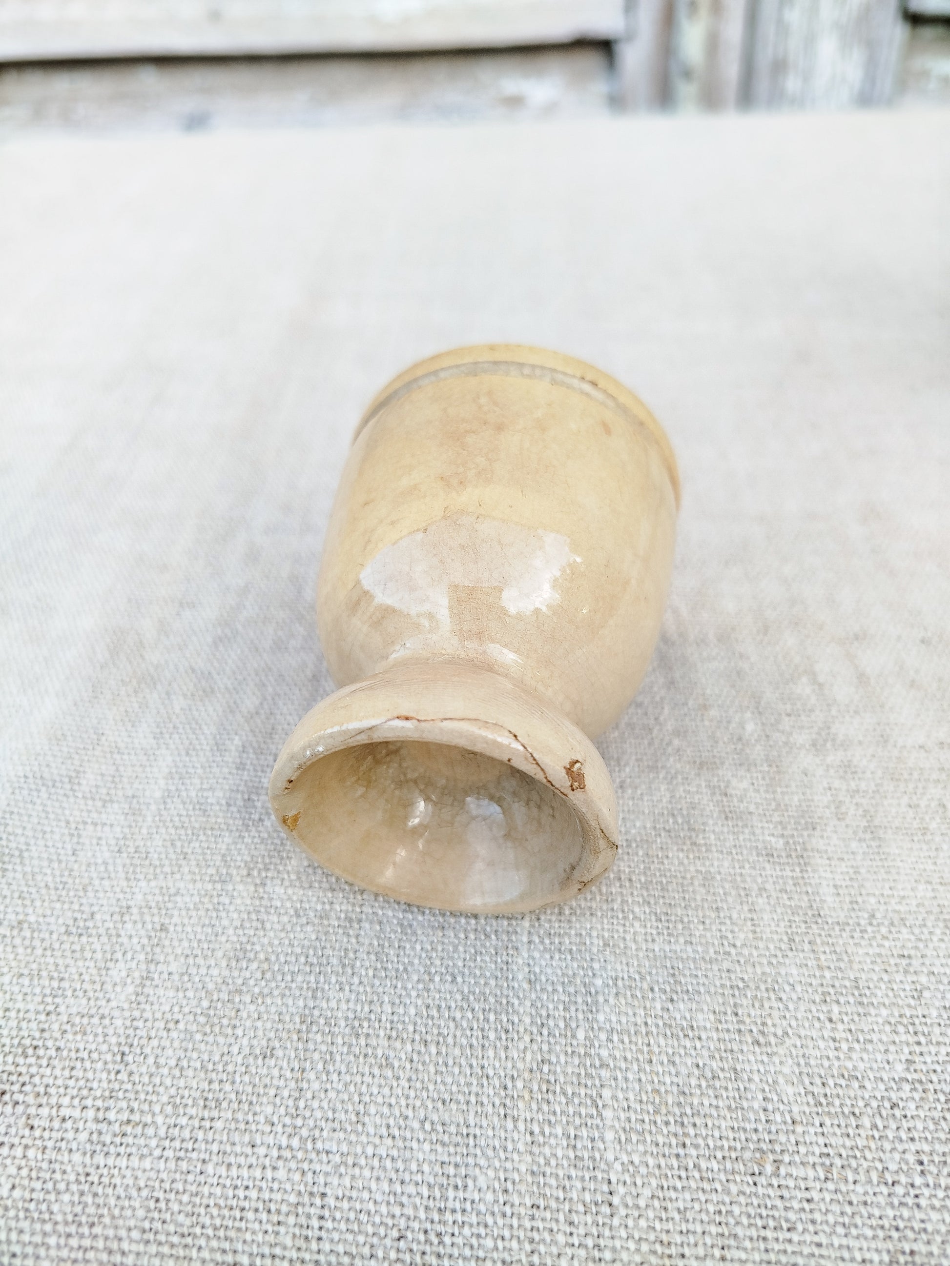 Le premier est patiné par le temps d'une teinte beige, le deuxième présente des craquelures beiges dans sa glaçure et le dernier est en faïence blanche.