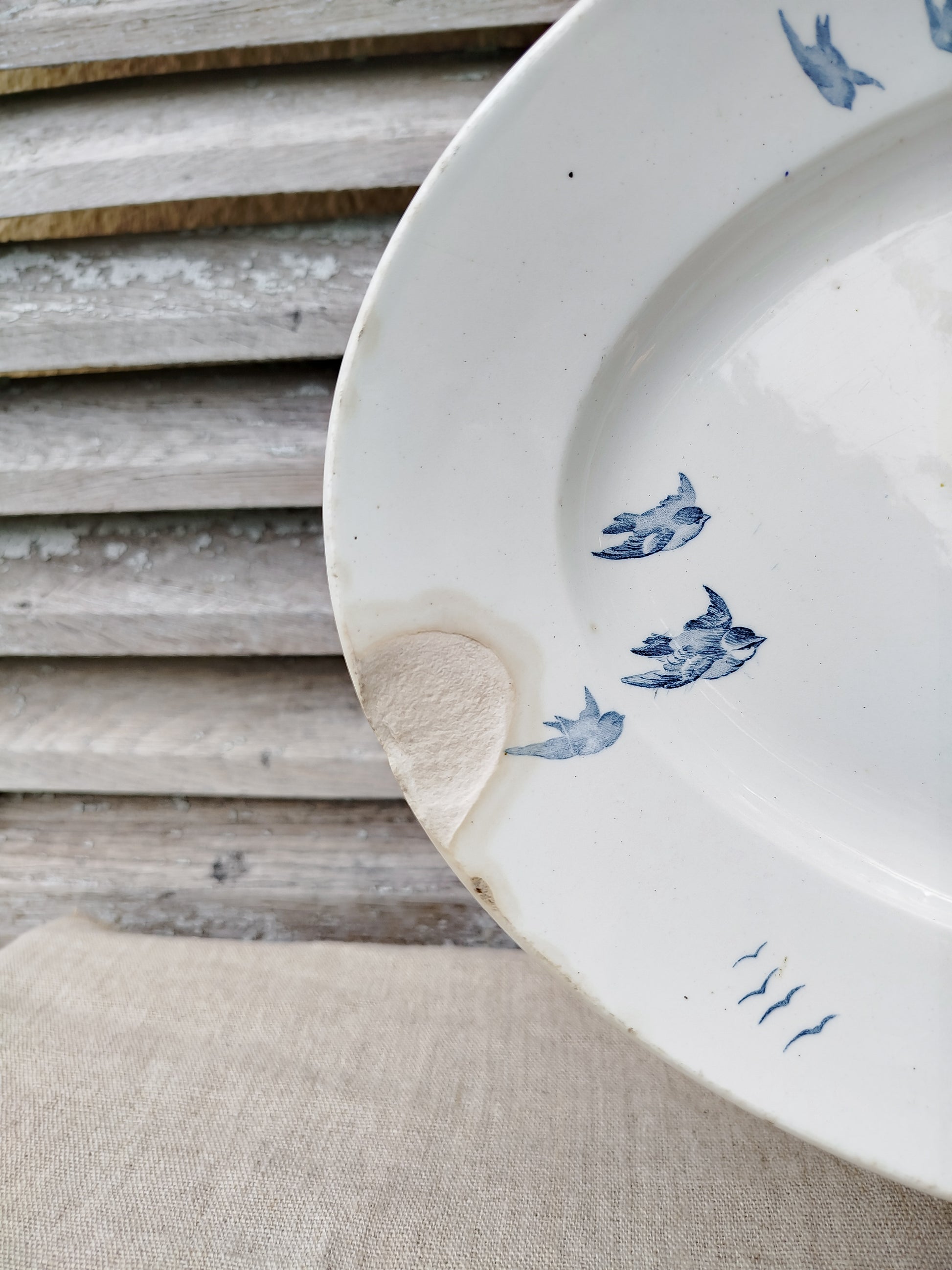 Attention, un gros éclat sur le rebord, situé à l'extrémité du plat. ( Photos).