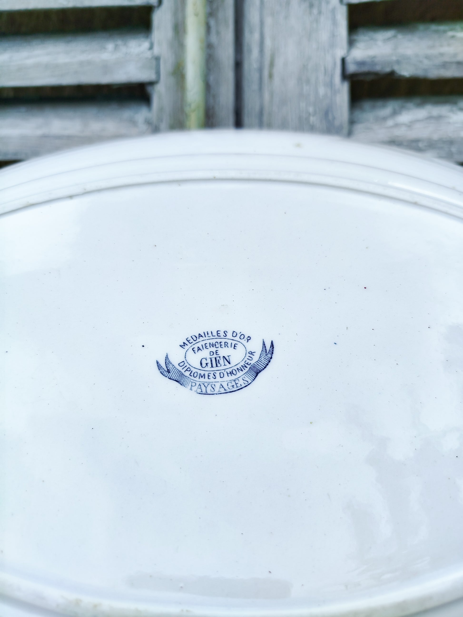 Au dessous, la mention " Médaille d'or Faïencerie de Gien Diplômes d'honneur Paysages ".