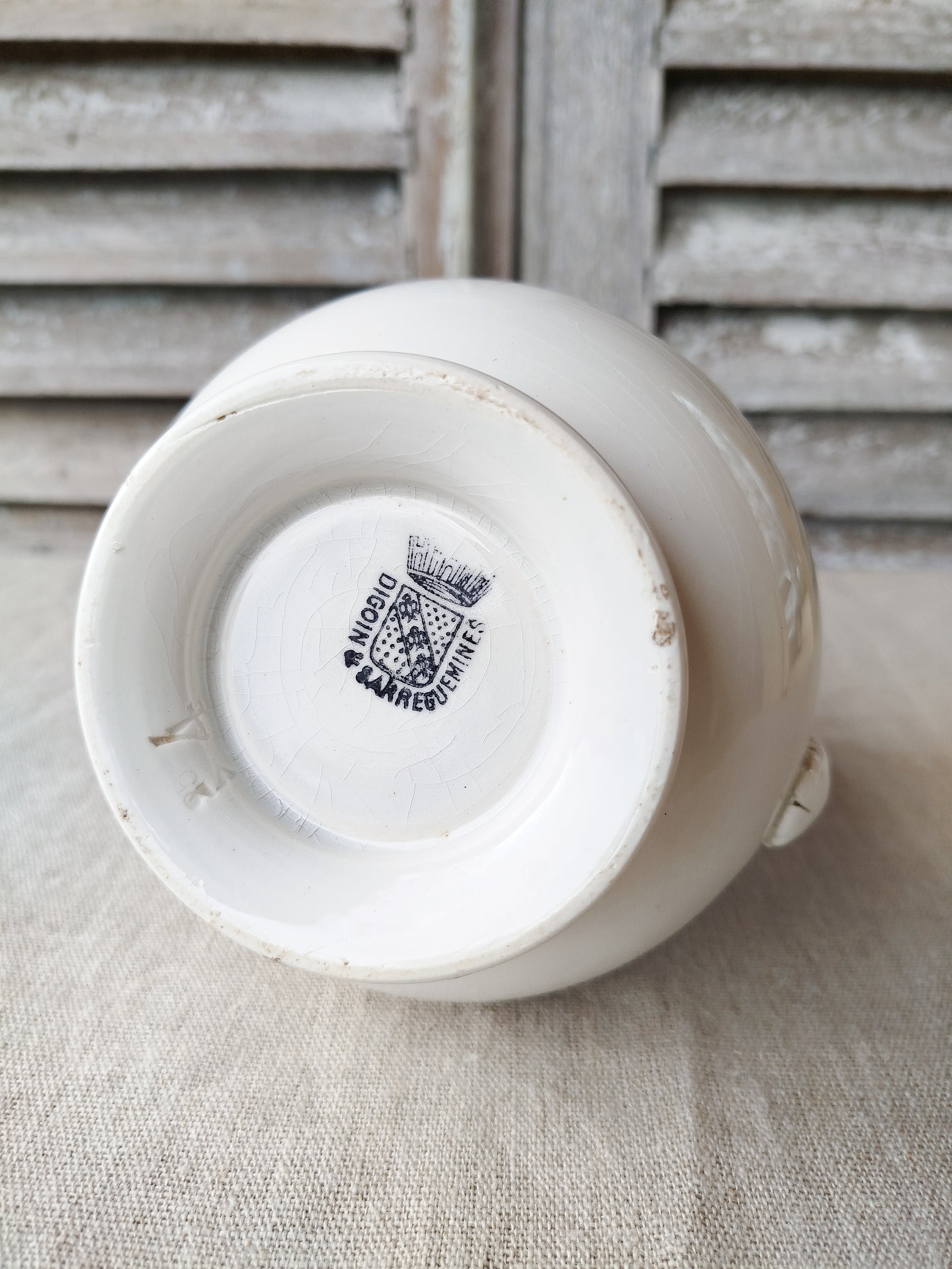 En faïence blanche de Digoin & Sarreguemines, dont il porte la marque au dessous.