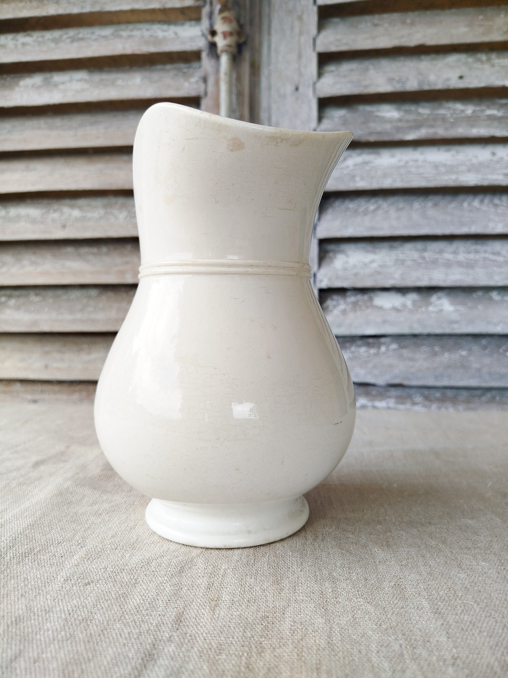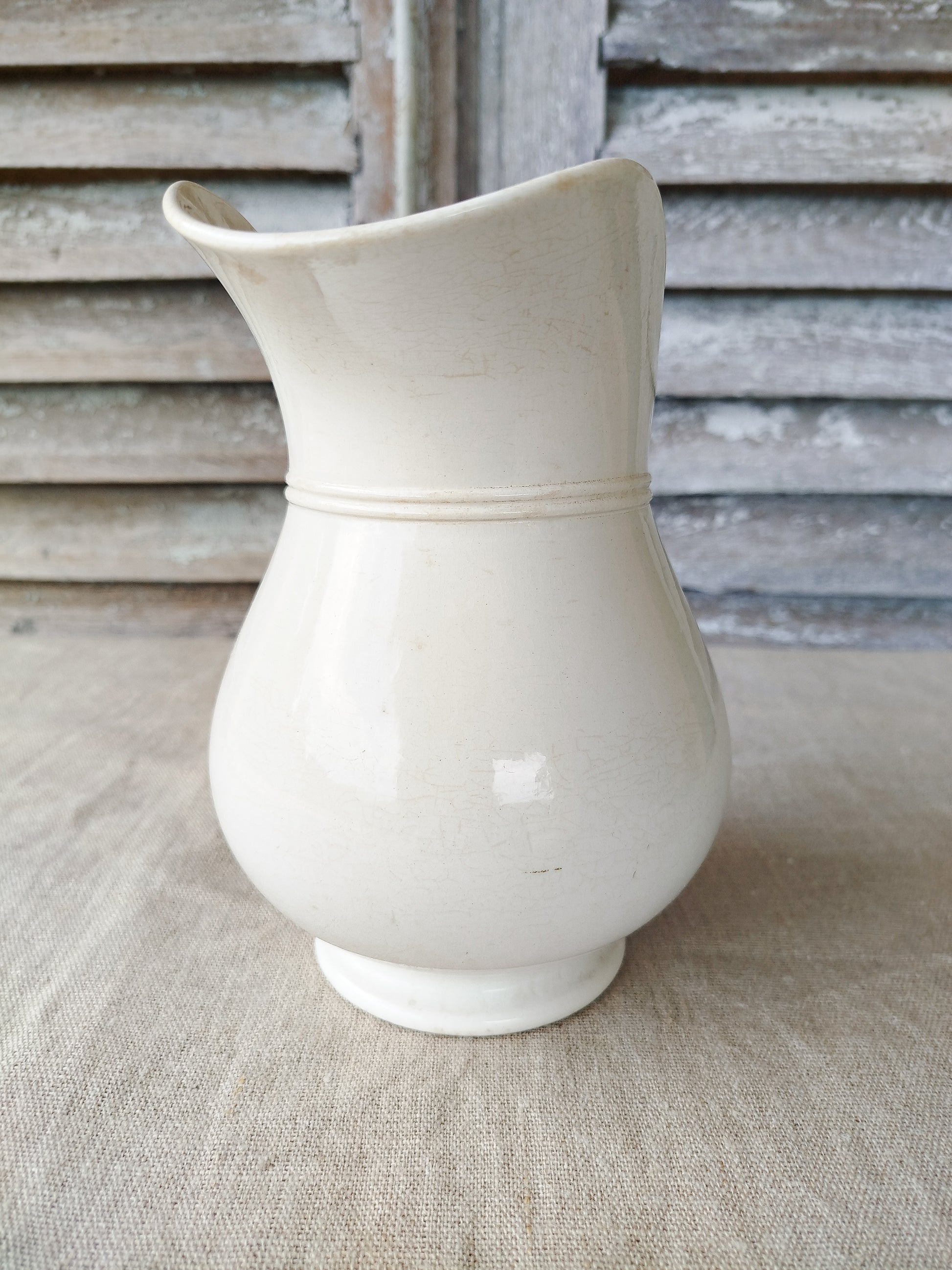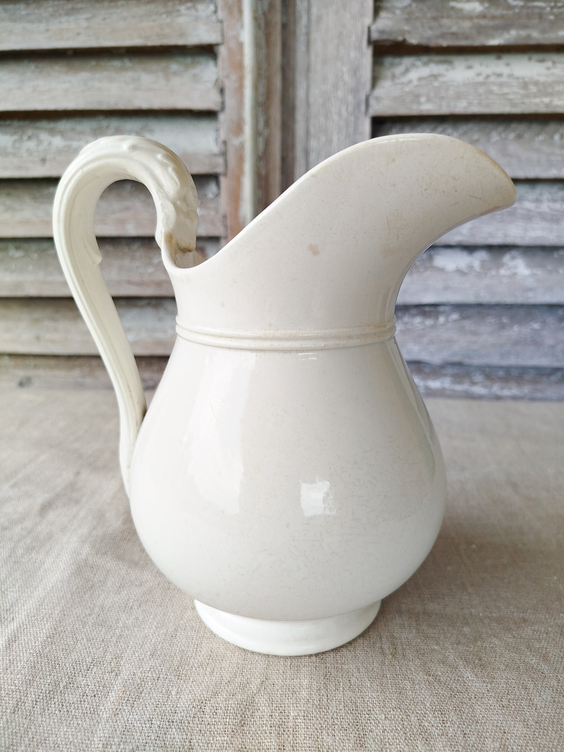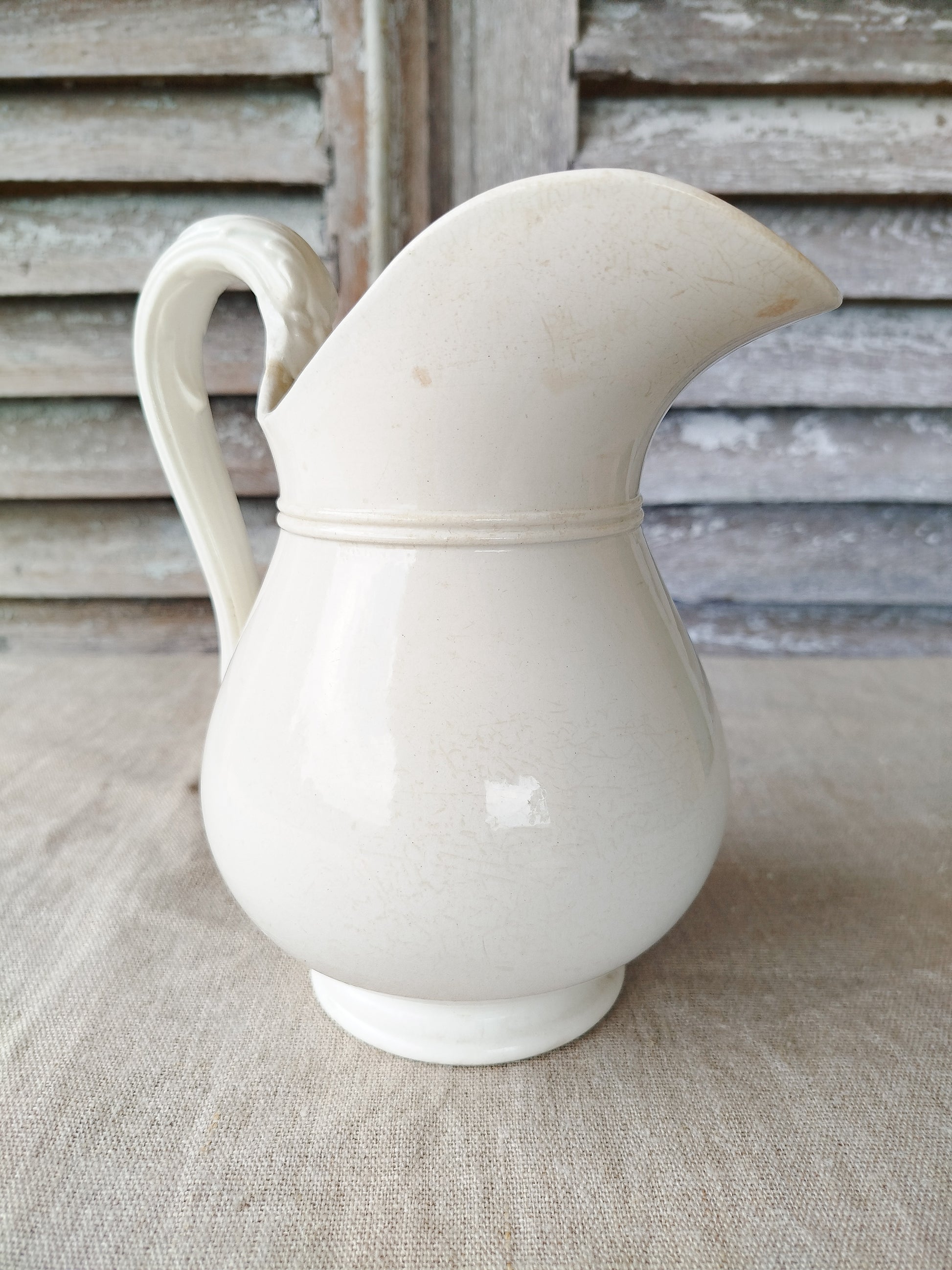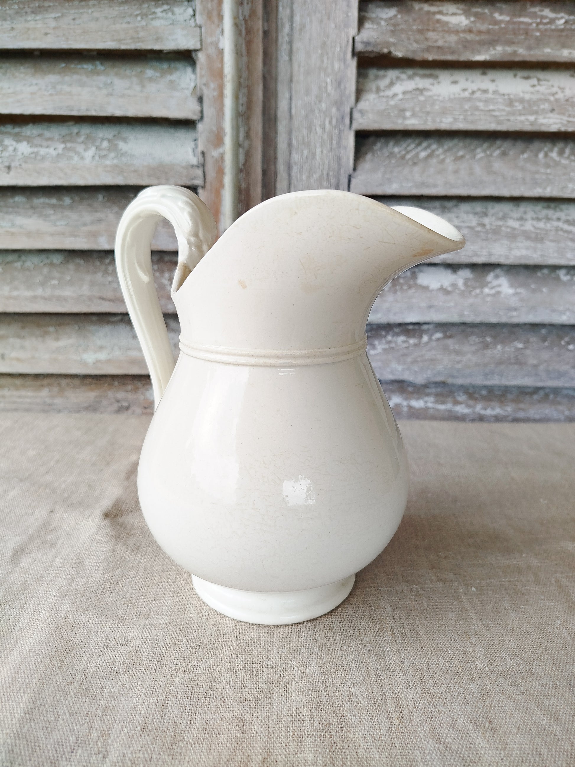 Une legere patine ancienne est présente et de traduit par des lignes et zébrures légèrement brunes sur l'ensemble du pichet... Quelques tâches de patine sont aussi présentes. (Voir photos)