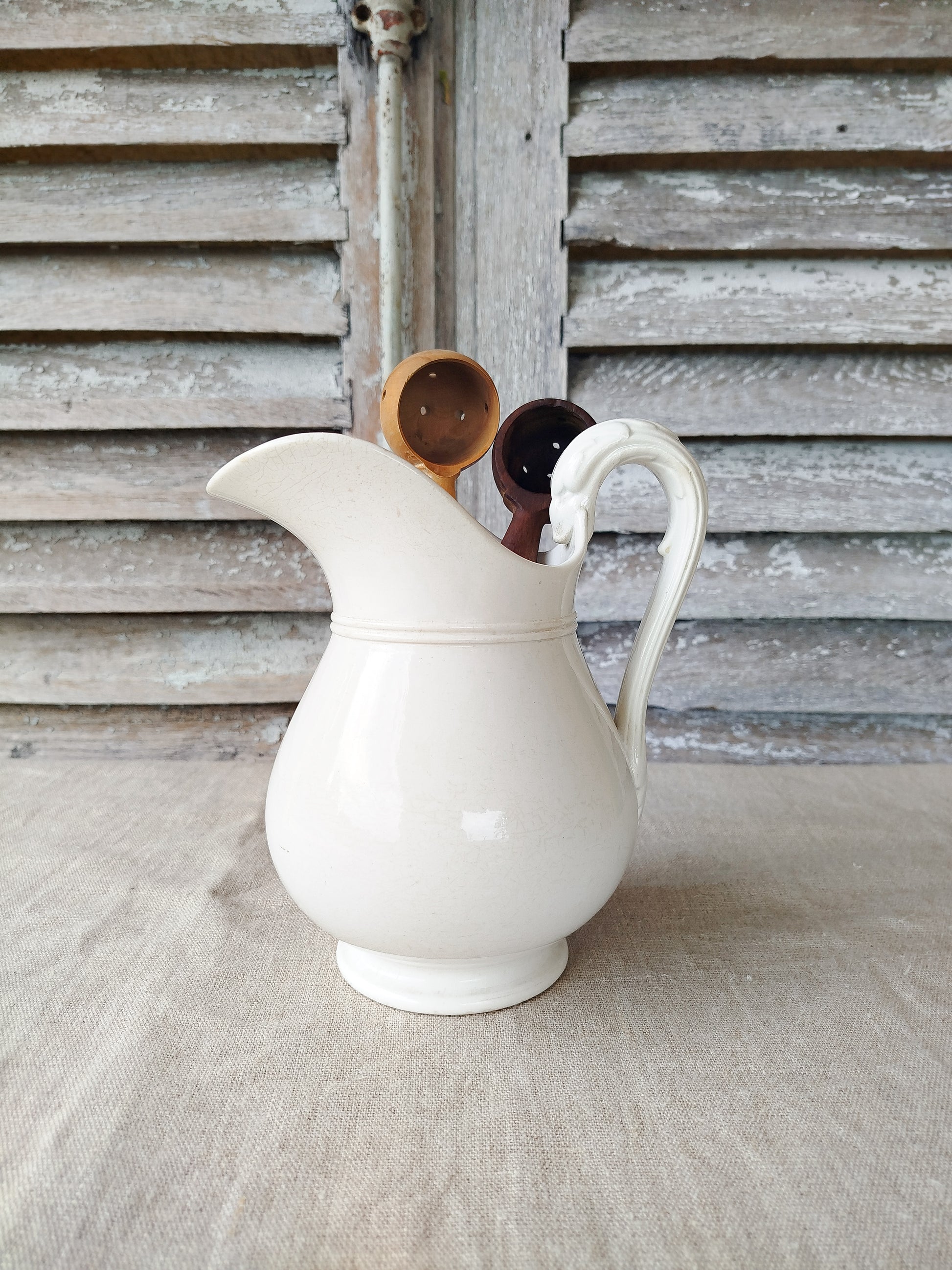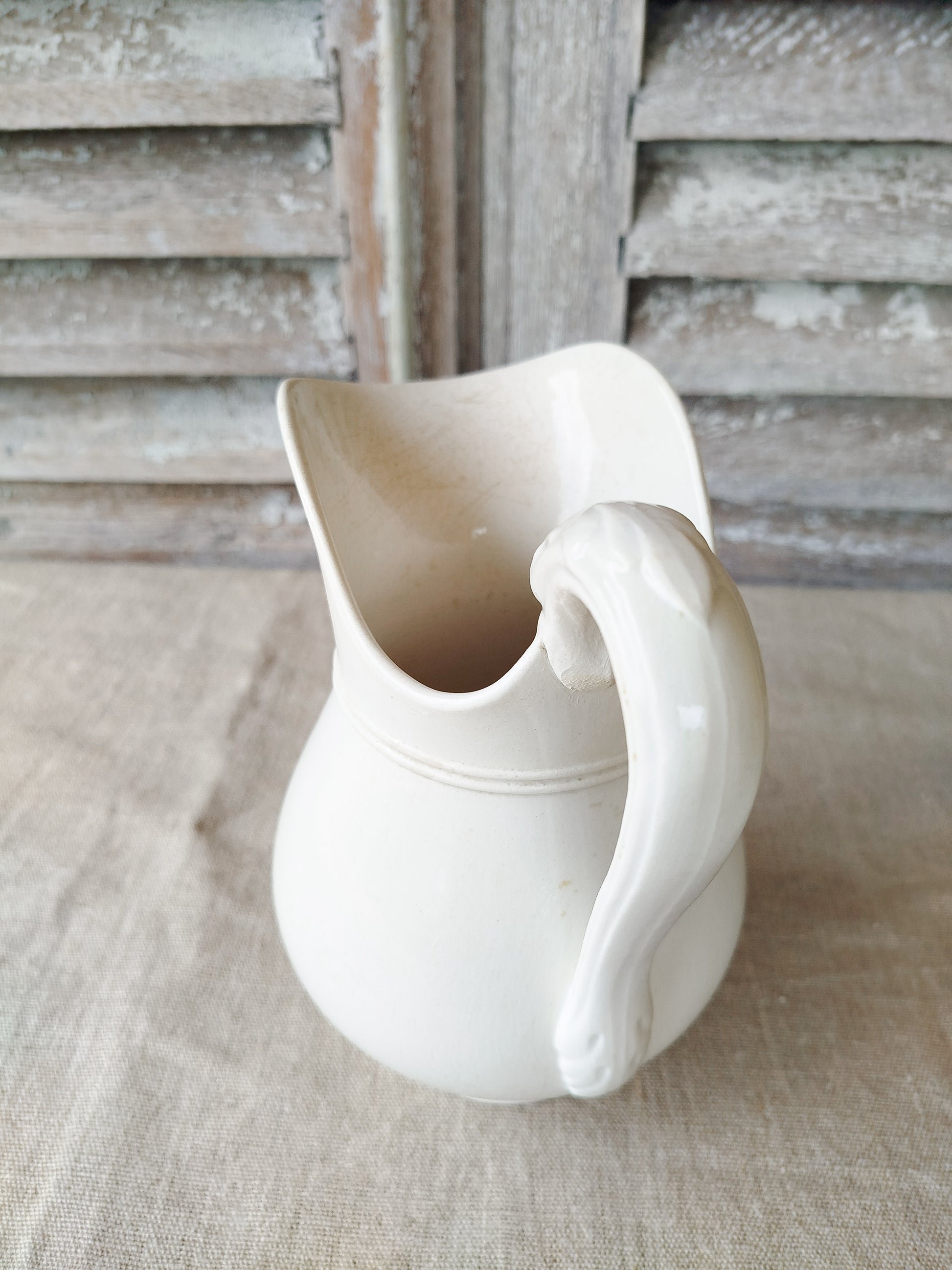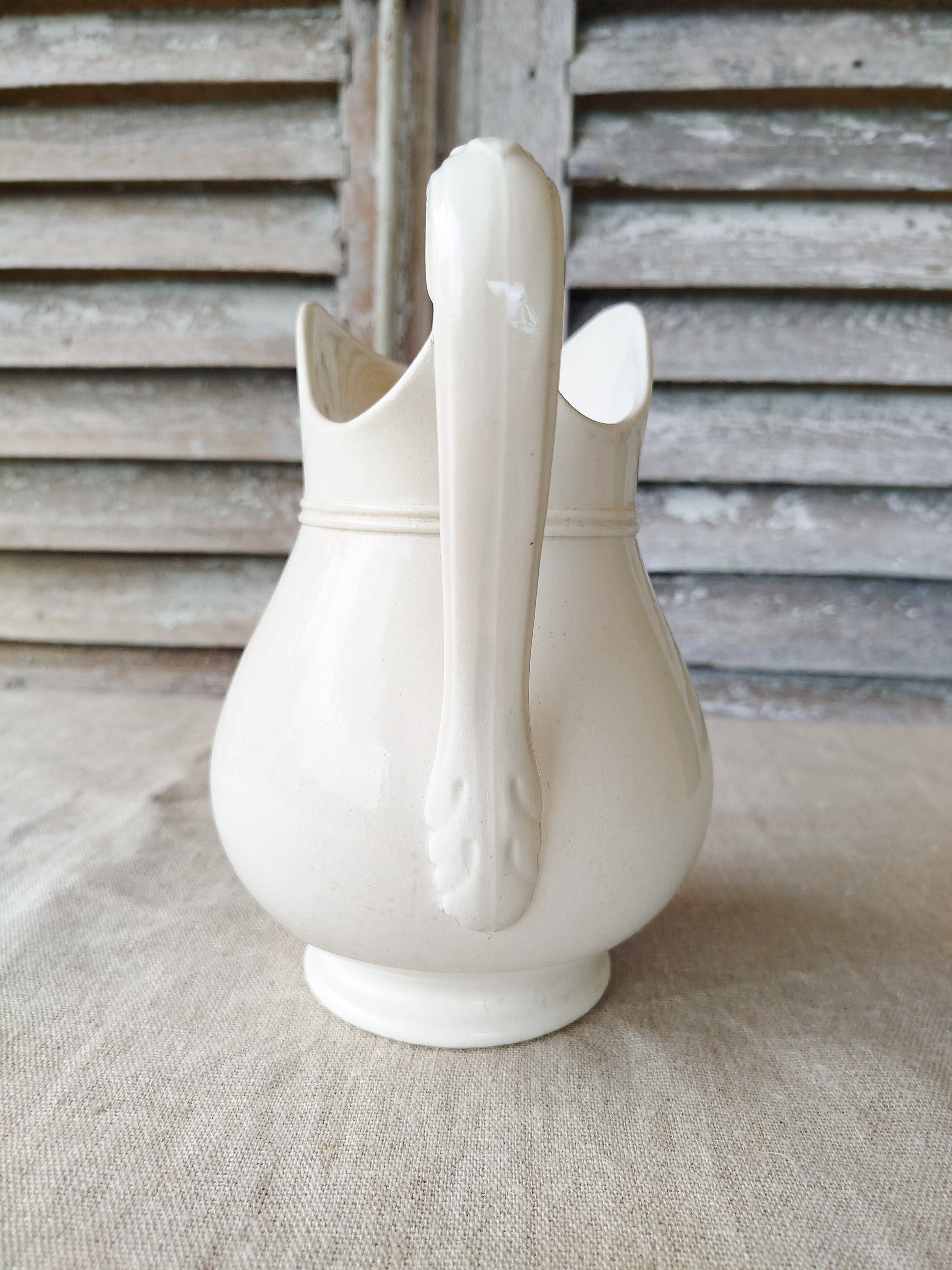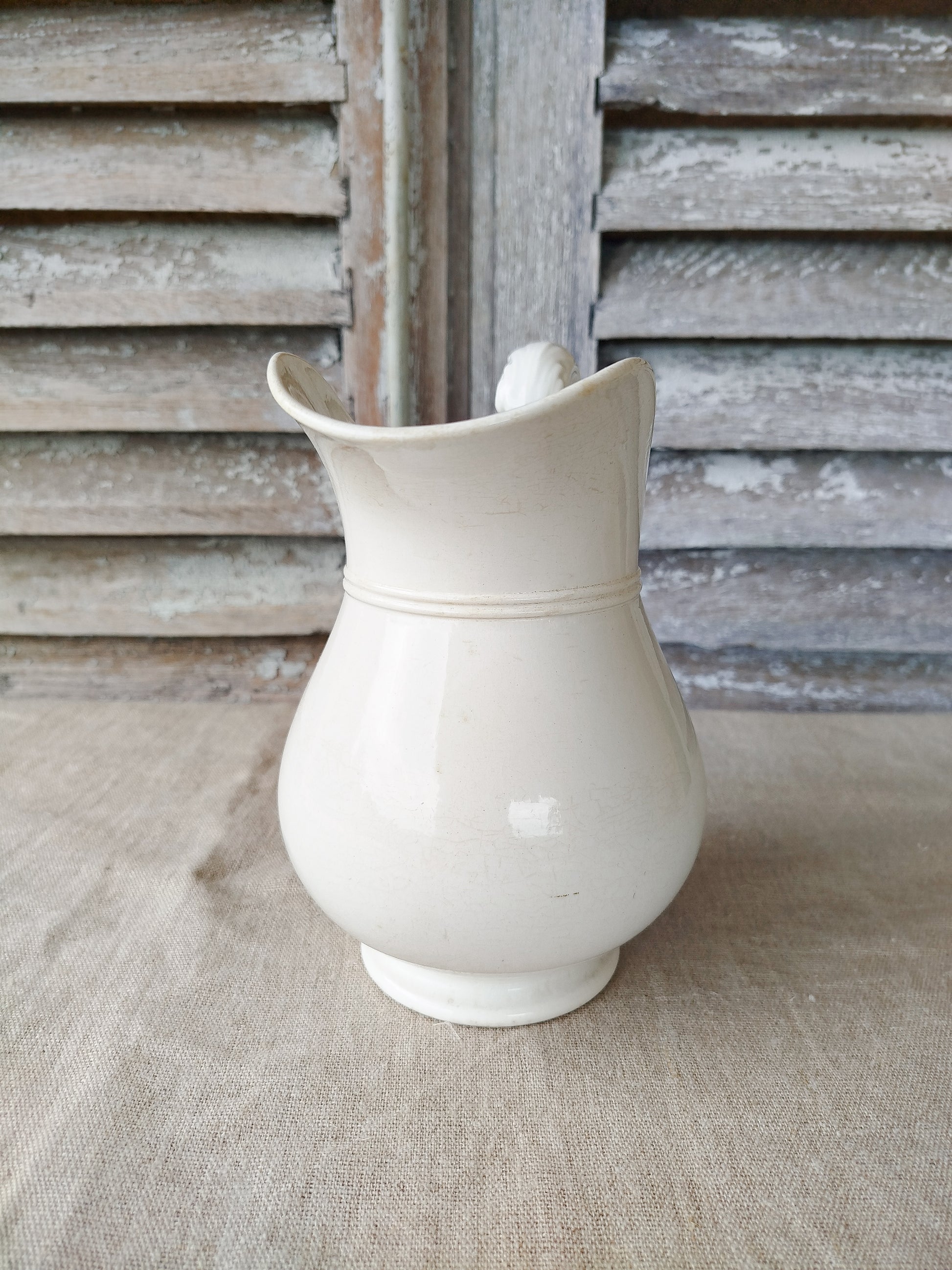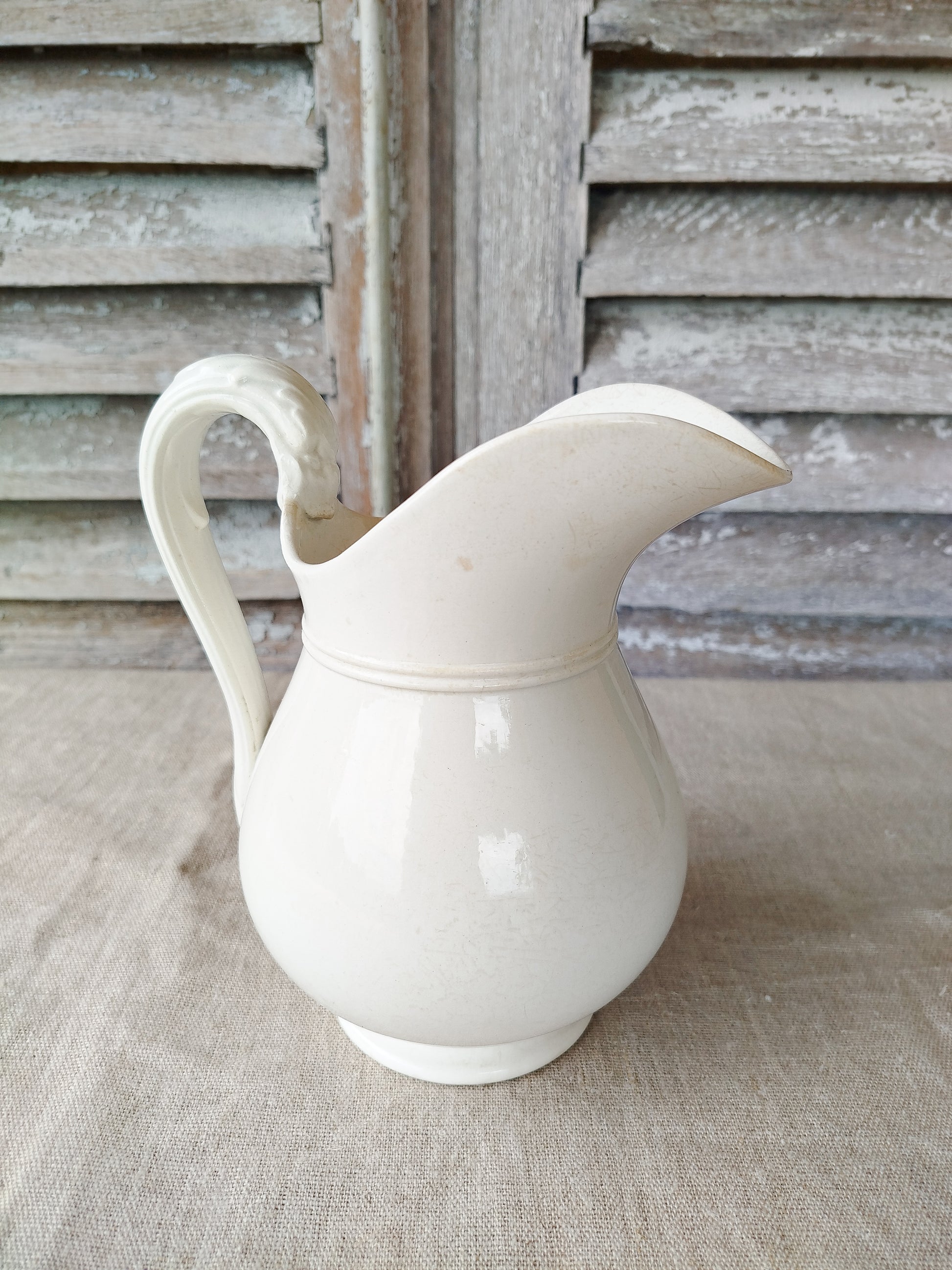 Une legere patine ancienne est présente et de traduit par des lignes et zébrures légèrement brunes sur l'ensemble du pichet... Quelques tâches de patine sont aussi présentes. (Voir photos)