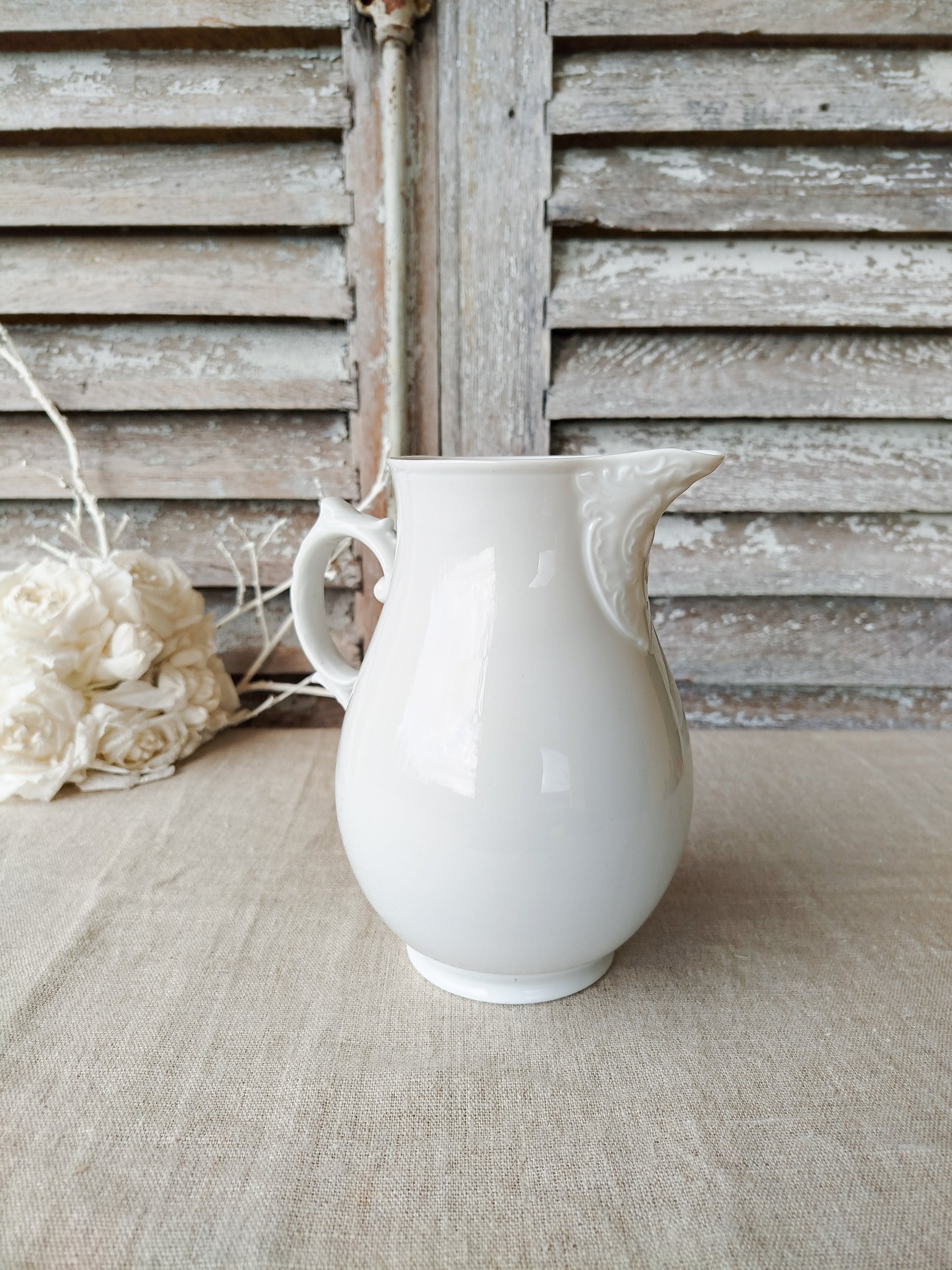 Magnifique pichet vintage en porcelaine blanche allemande de Fürstenberg.