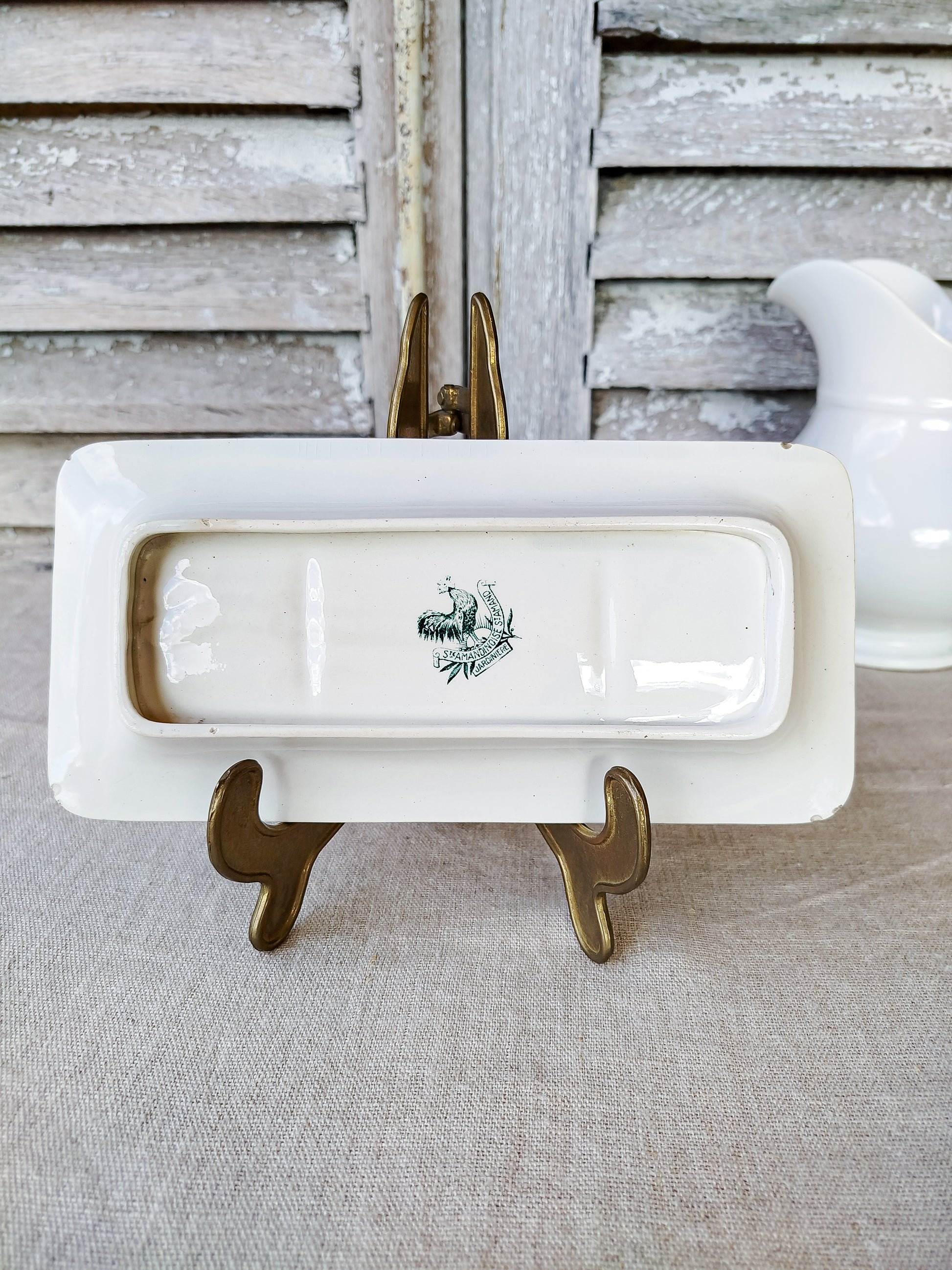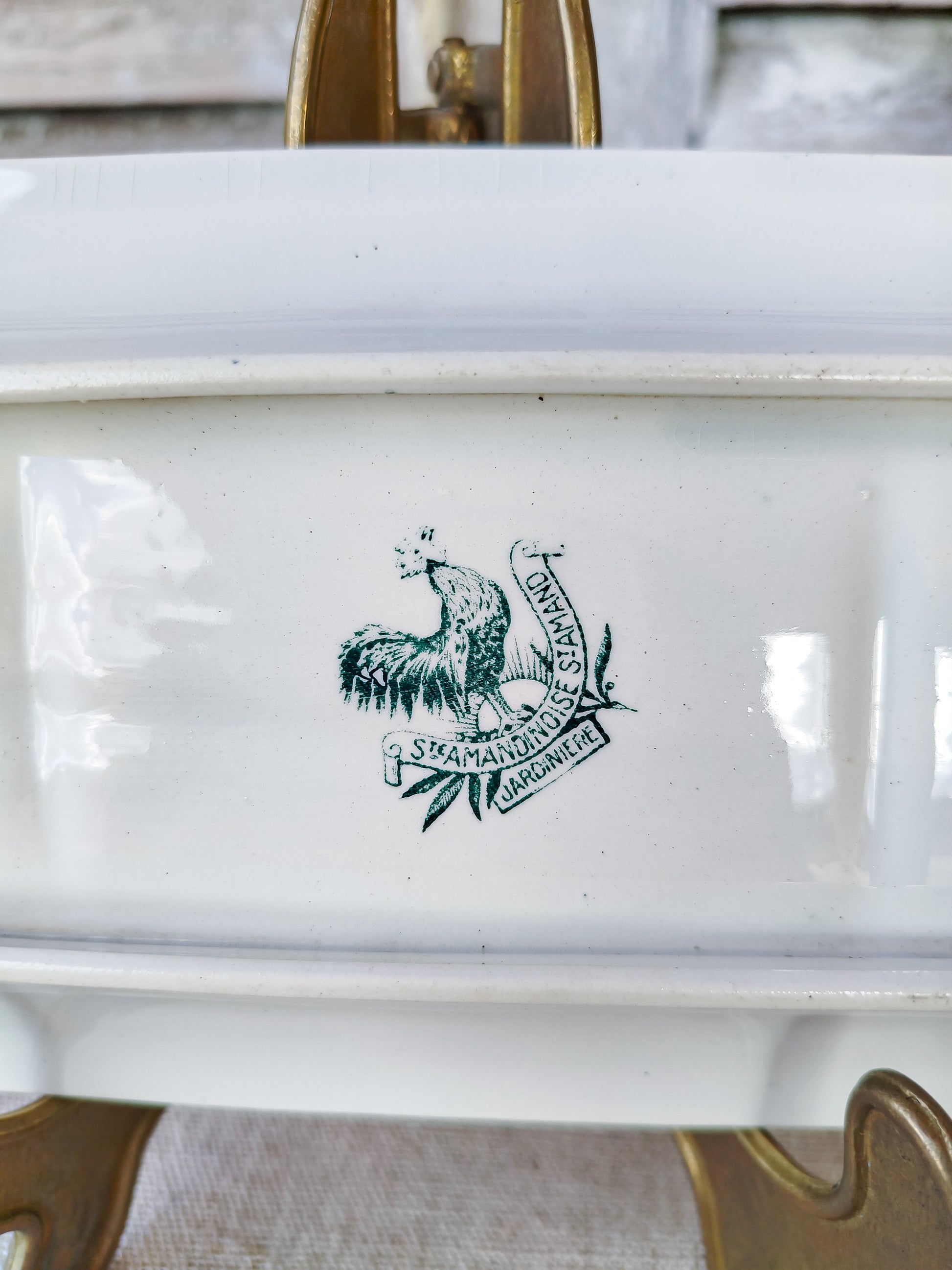 Il est estampillé au dessous avec la marque de manufacture de Saint Amand, avec les mentions suivantes : " Ste Amandinoise St Amand ", modèle " Jardinière".