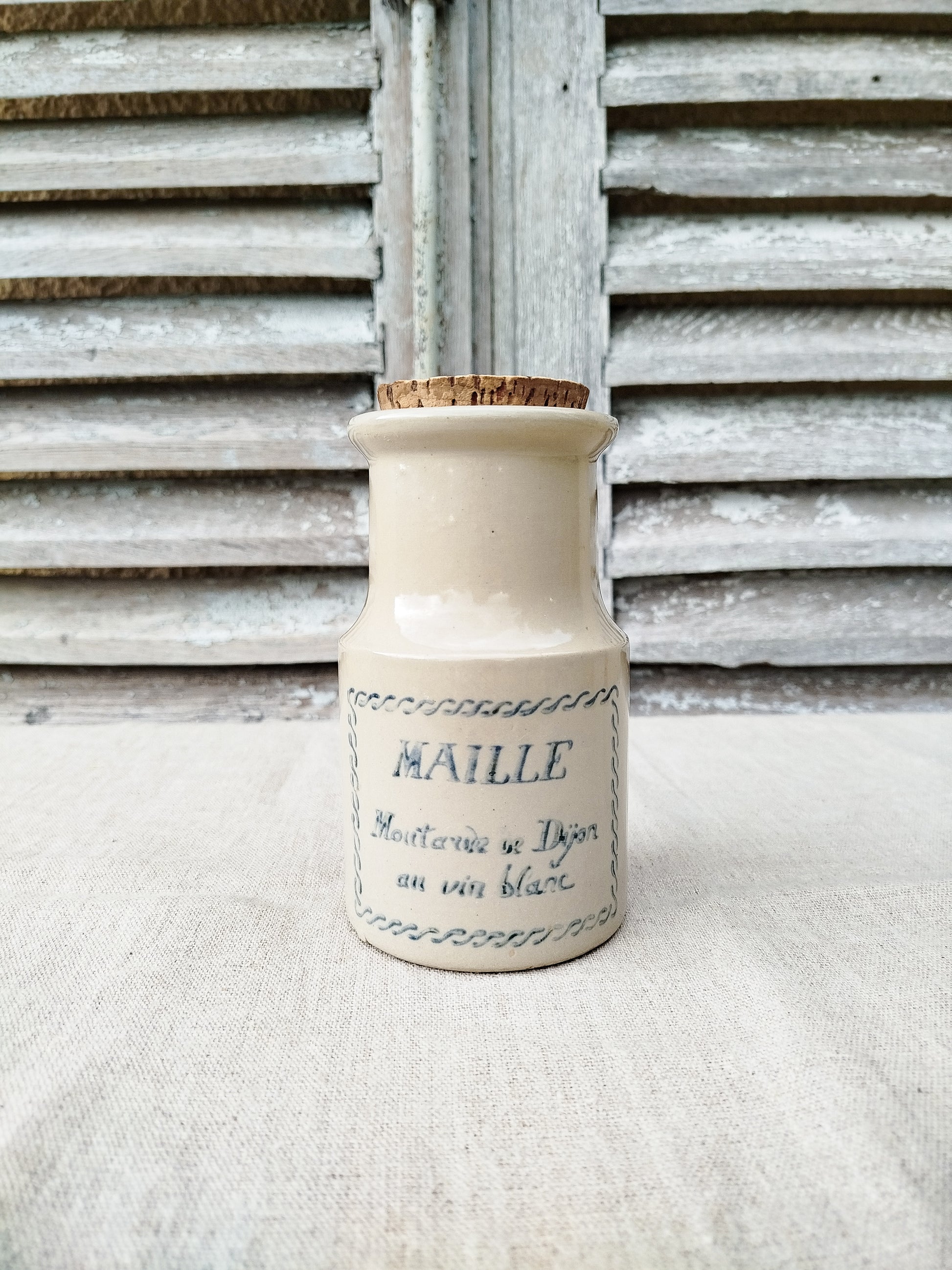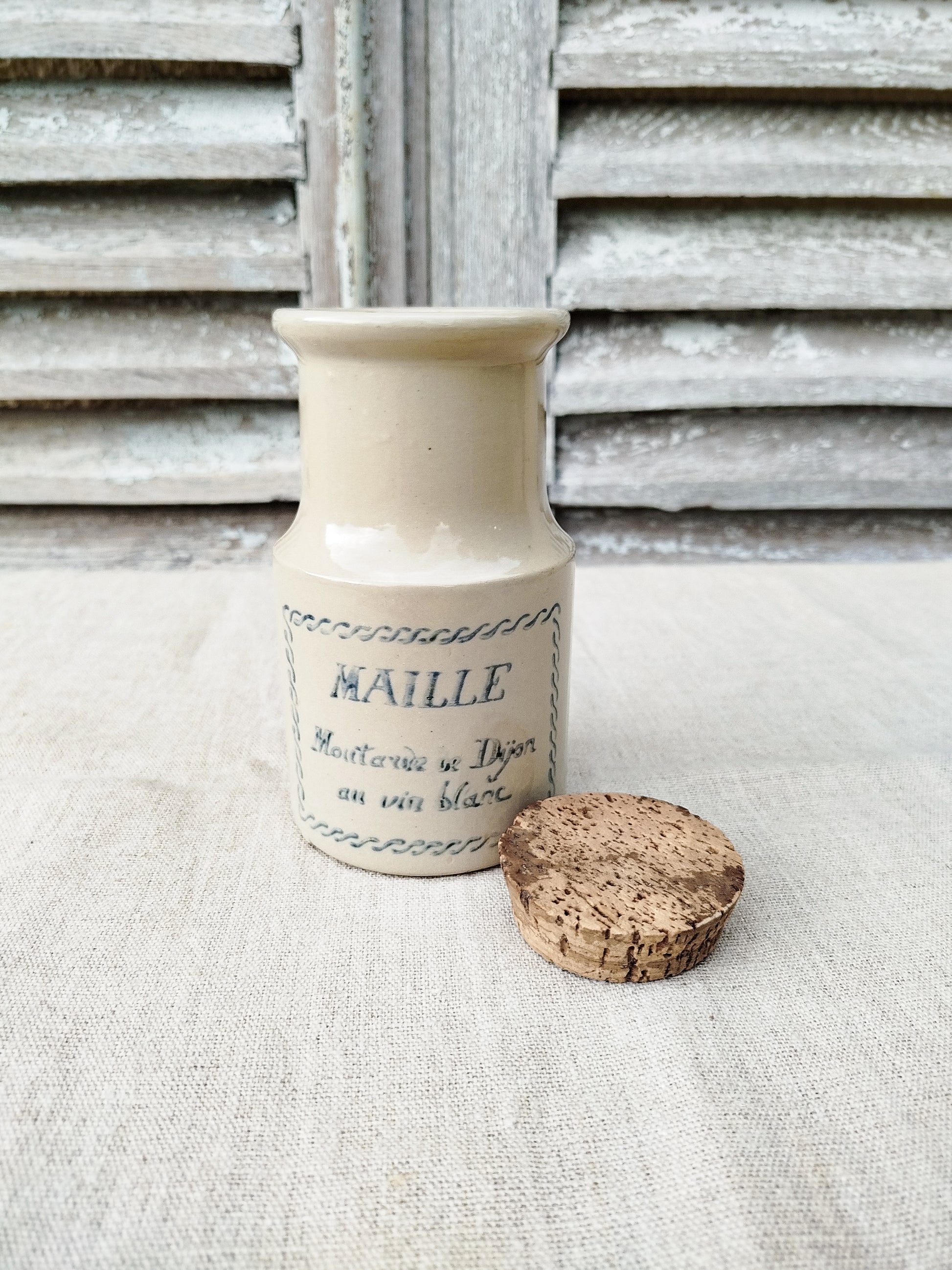 Le premier porte la mention : " MAILLE moutarde de Dijon au vin blanc " en écritures bleues.