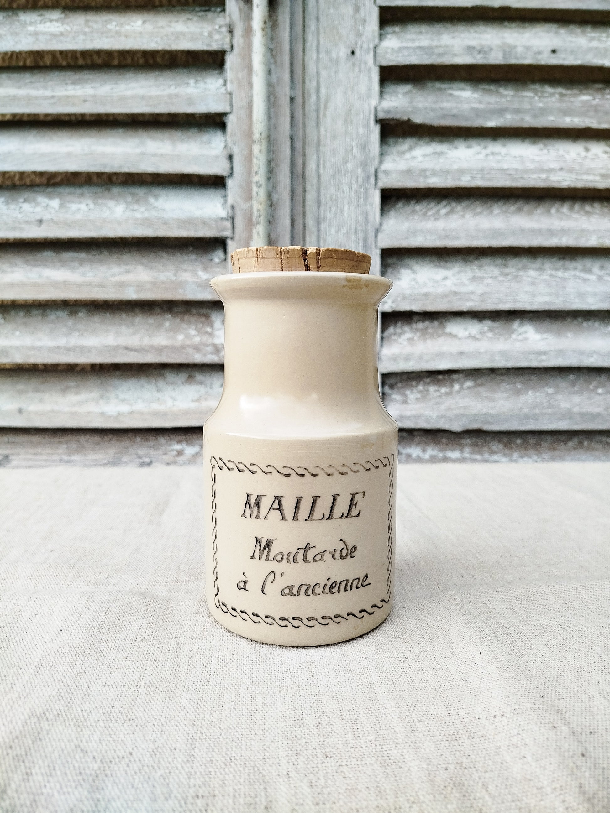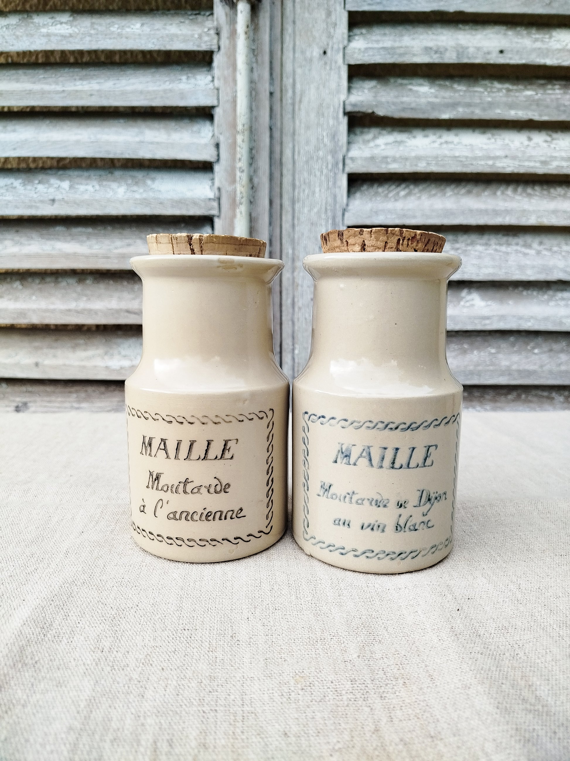 Le deuxième porte la mention : " MAILLE Moutarde à l'ancienne " en écritures noires.