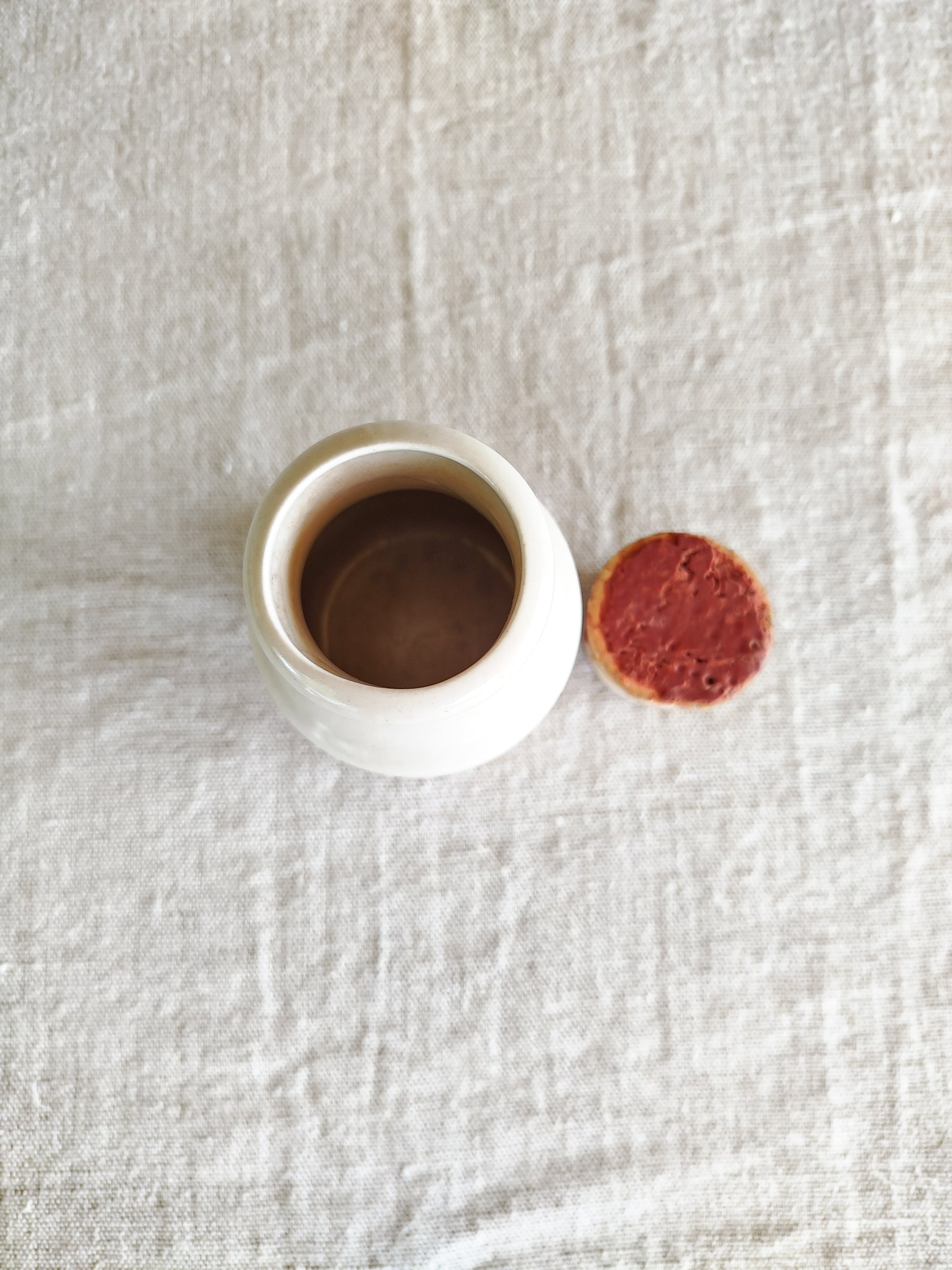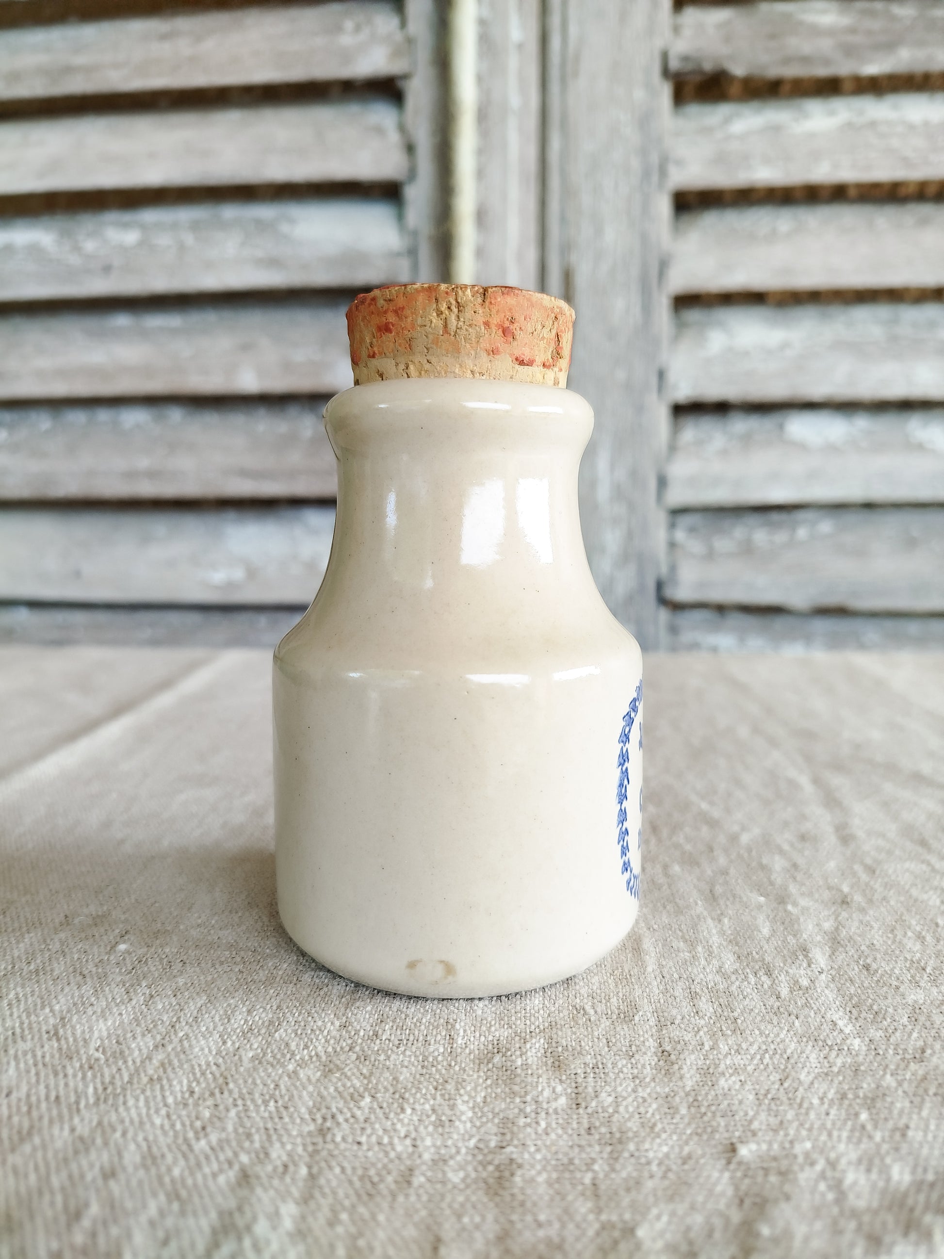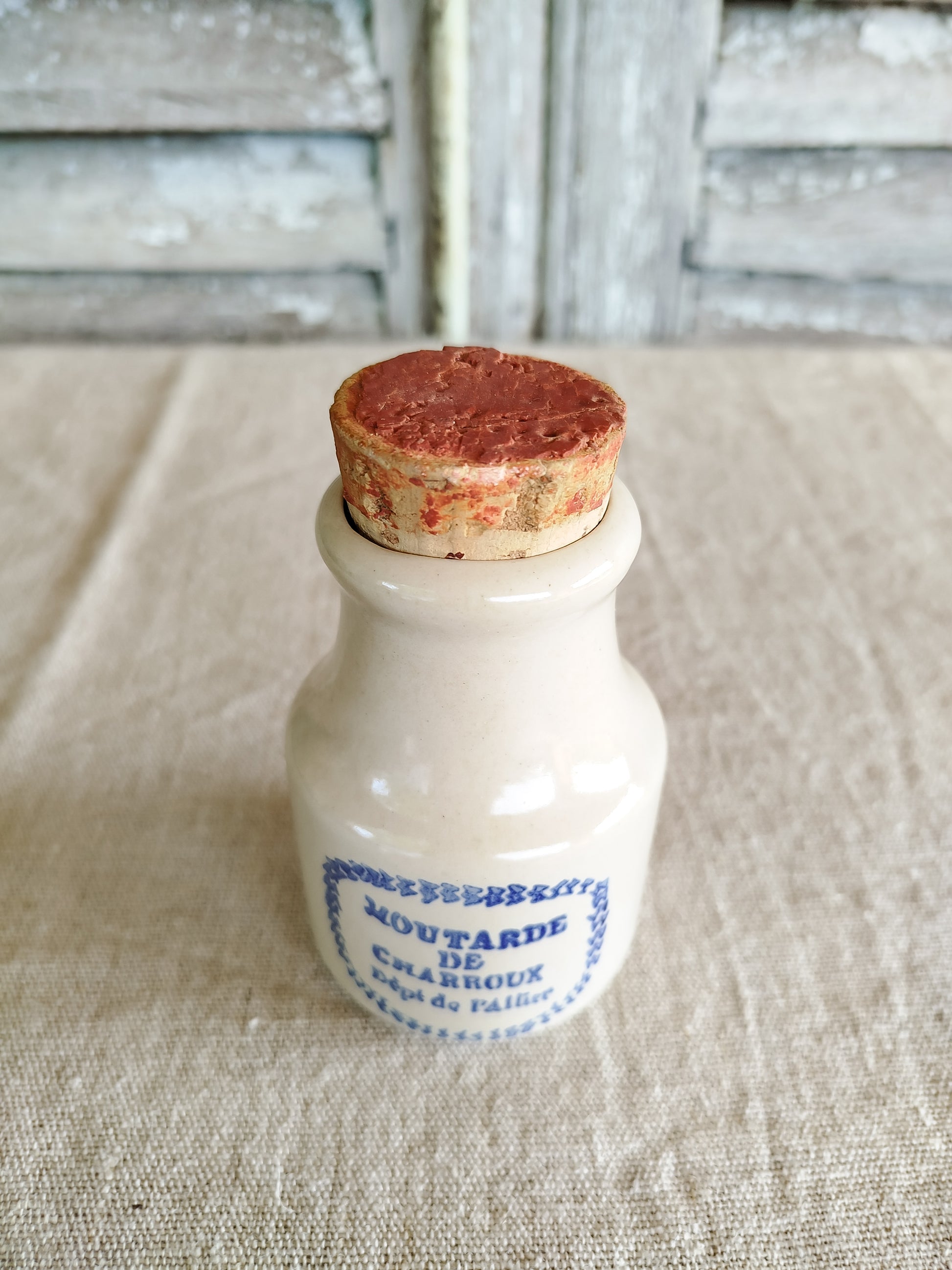 Écritures bleues sur le devant, avec les mentions : " Moutarde de Charroux Dèpt de l'Allier ".