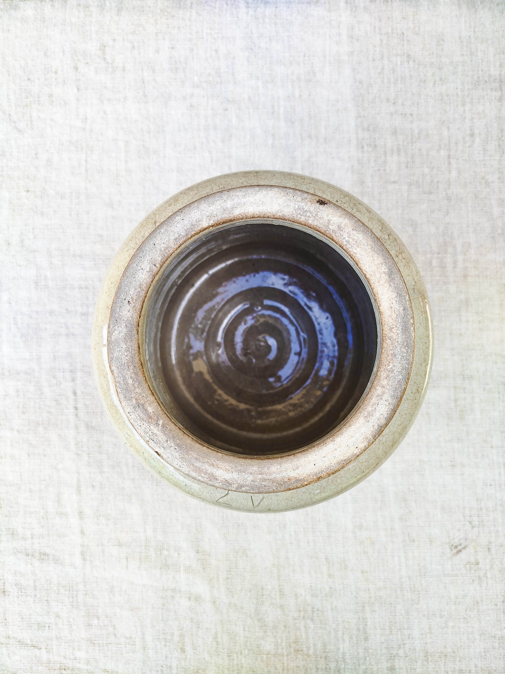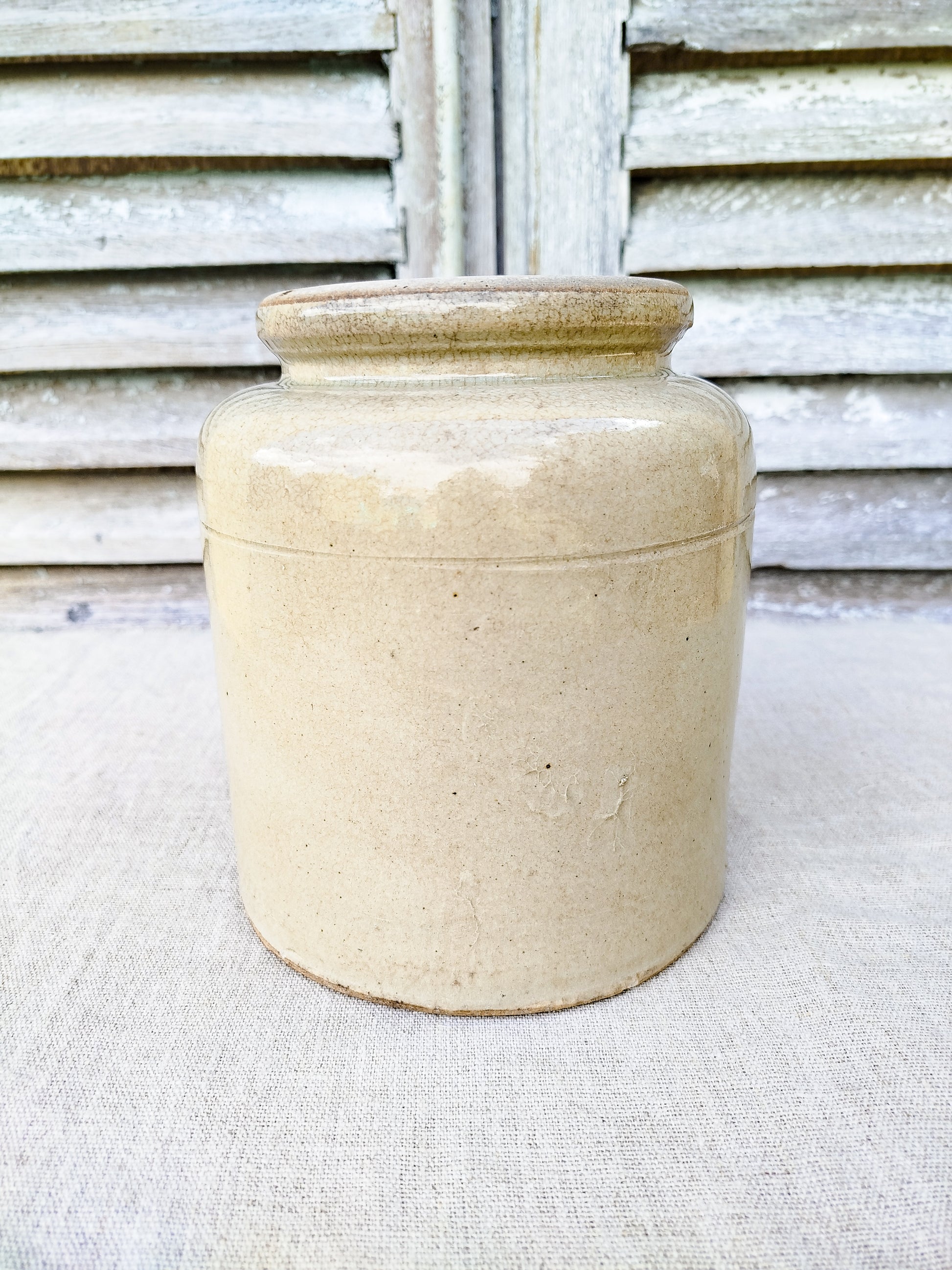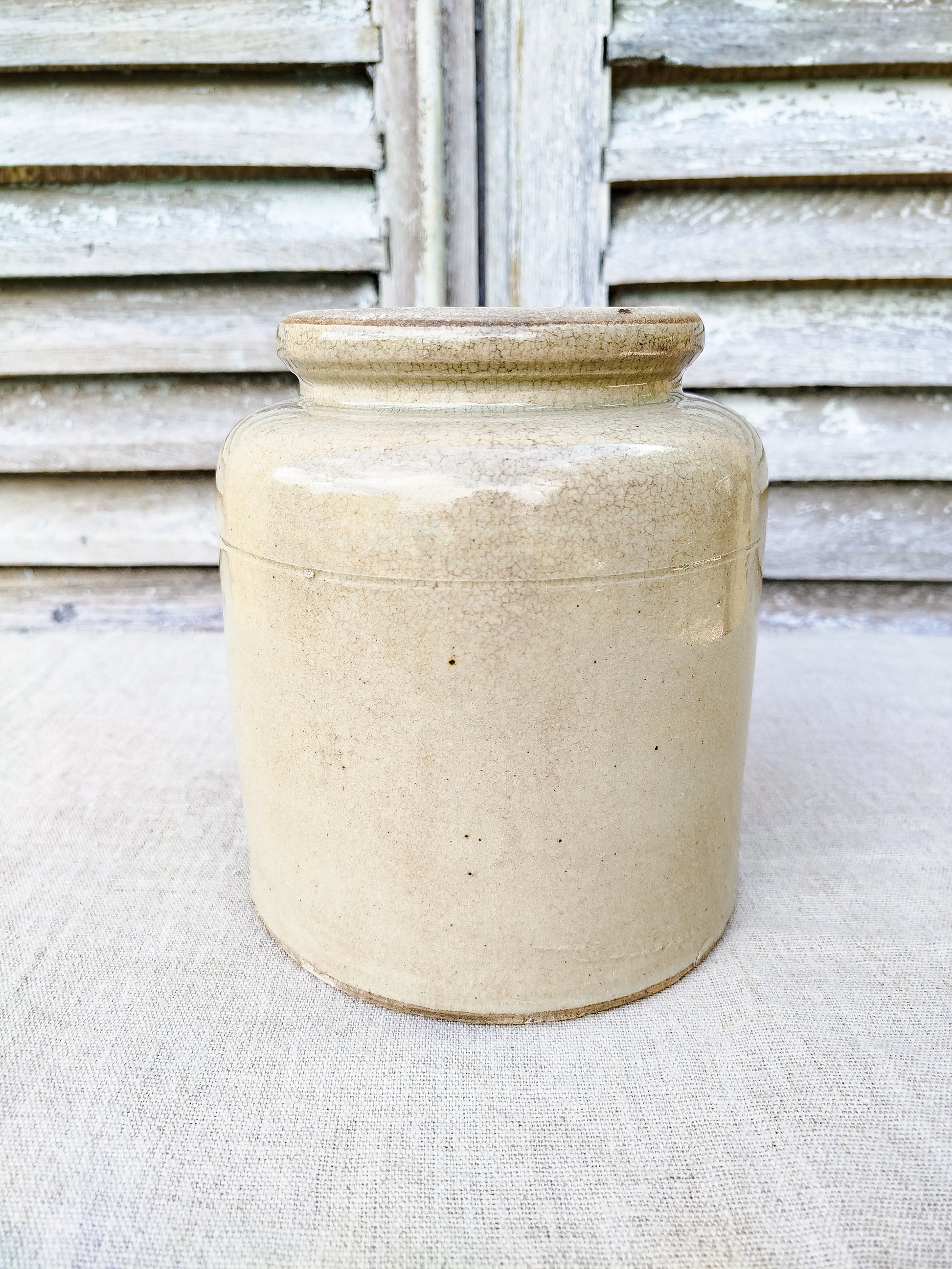 Pot en grès de couleur beige.