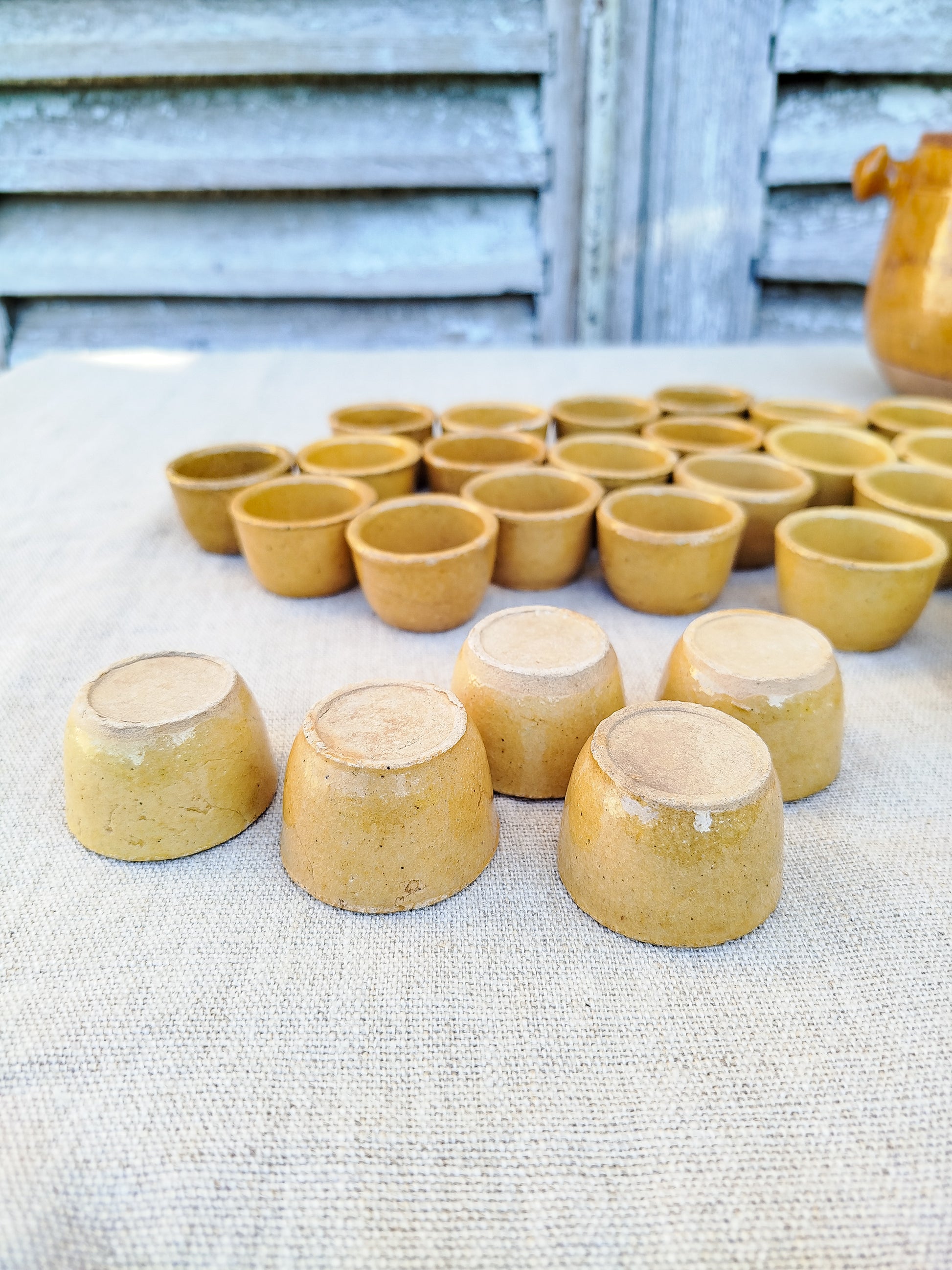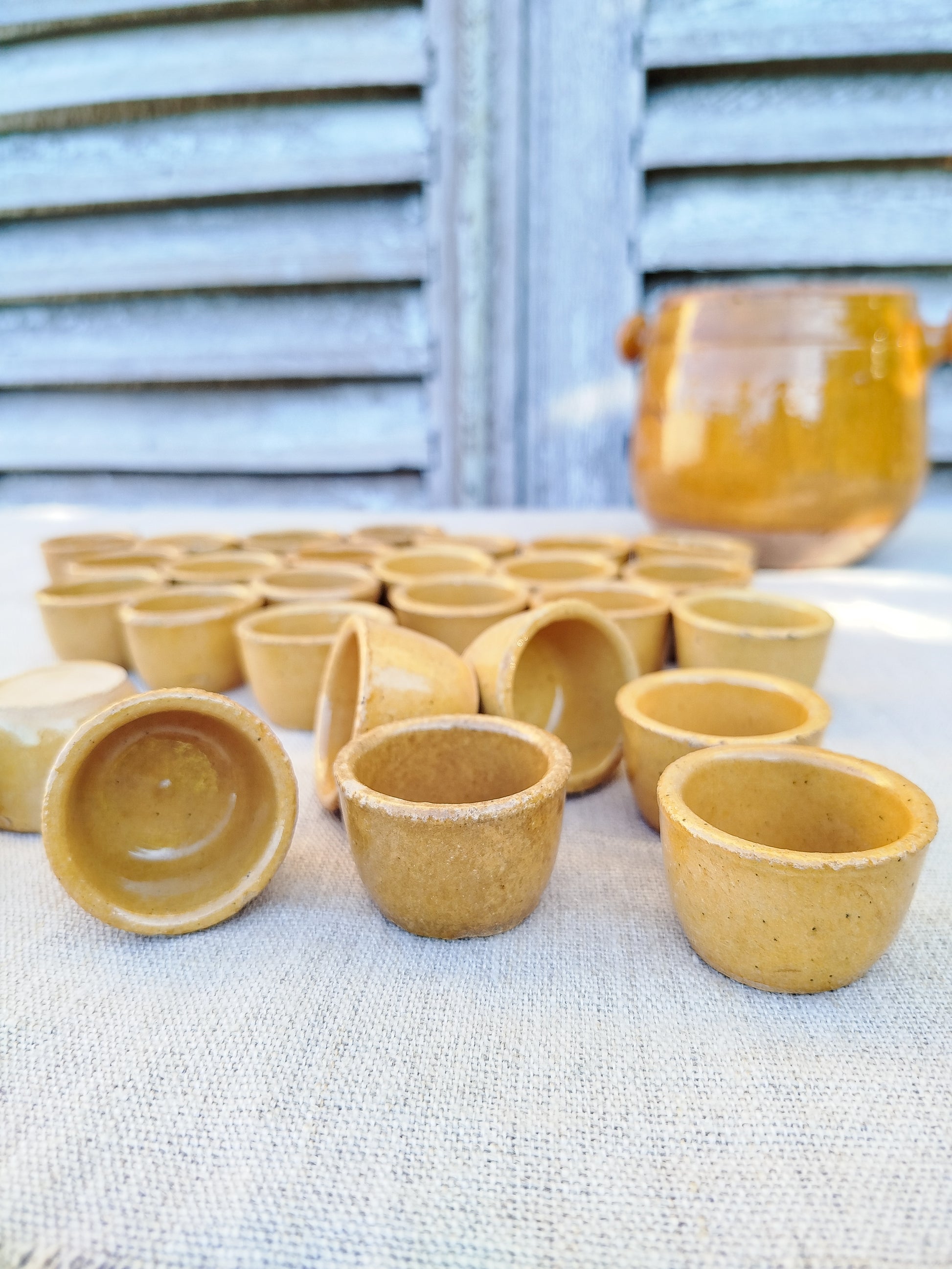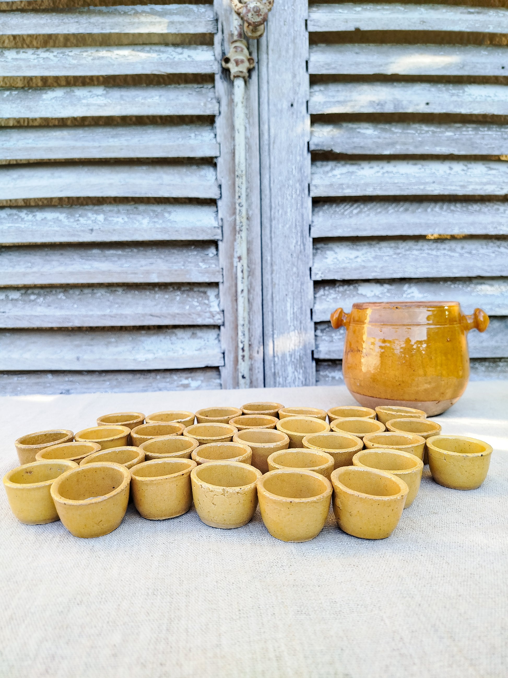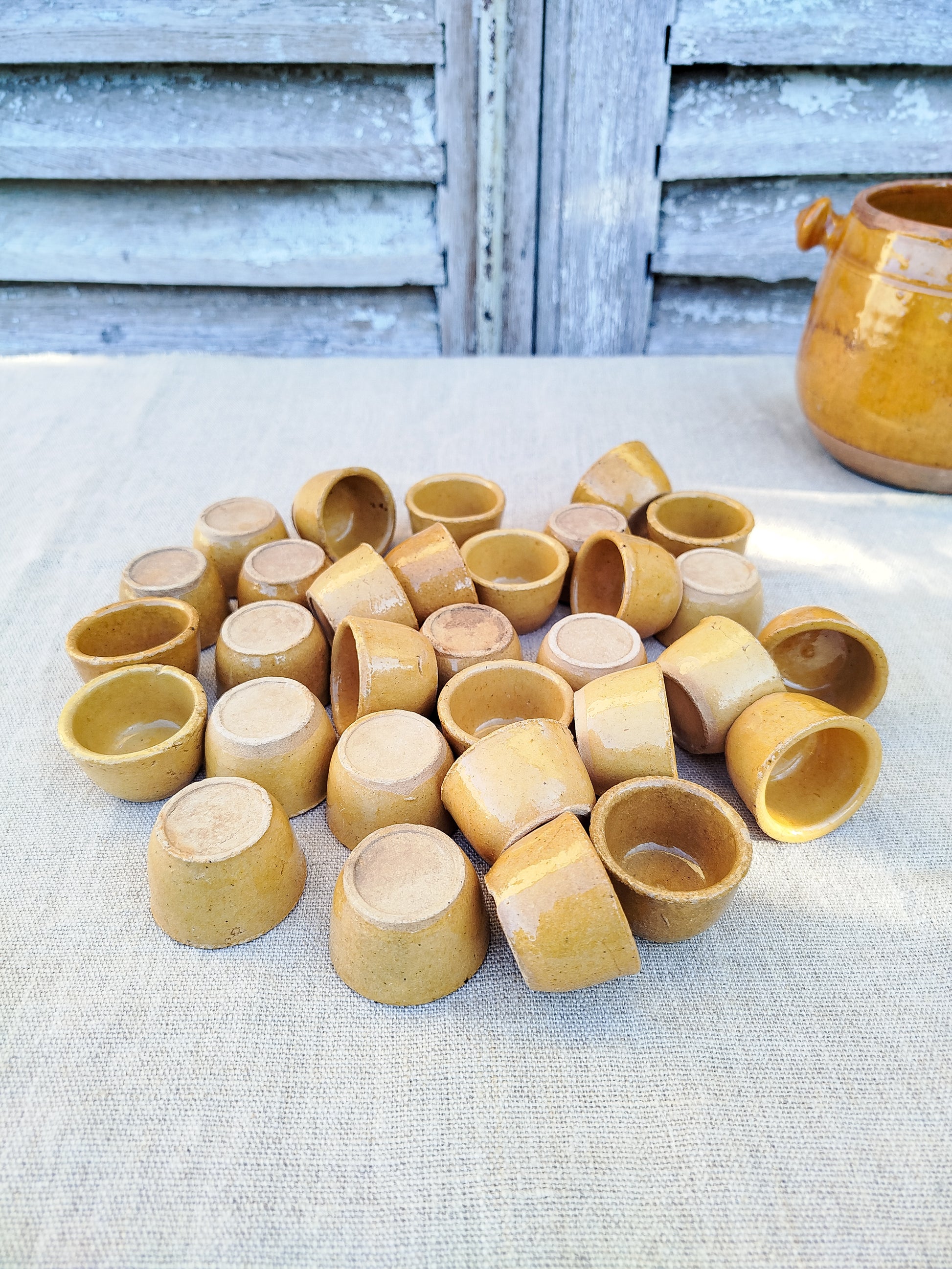 Pot à escargots en terre cuite émaillée couleur jaune ocre.