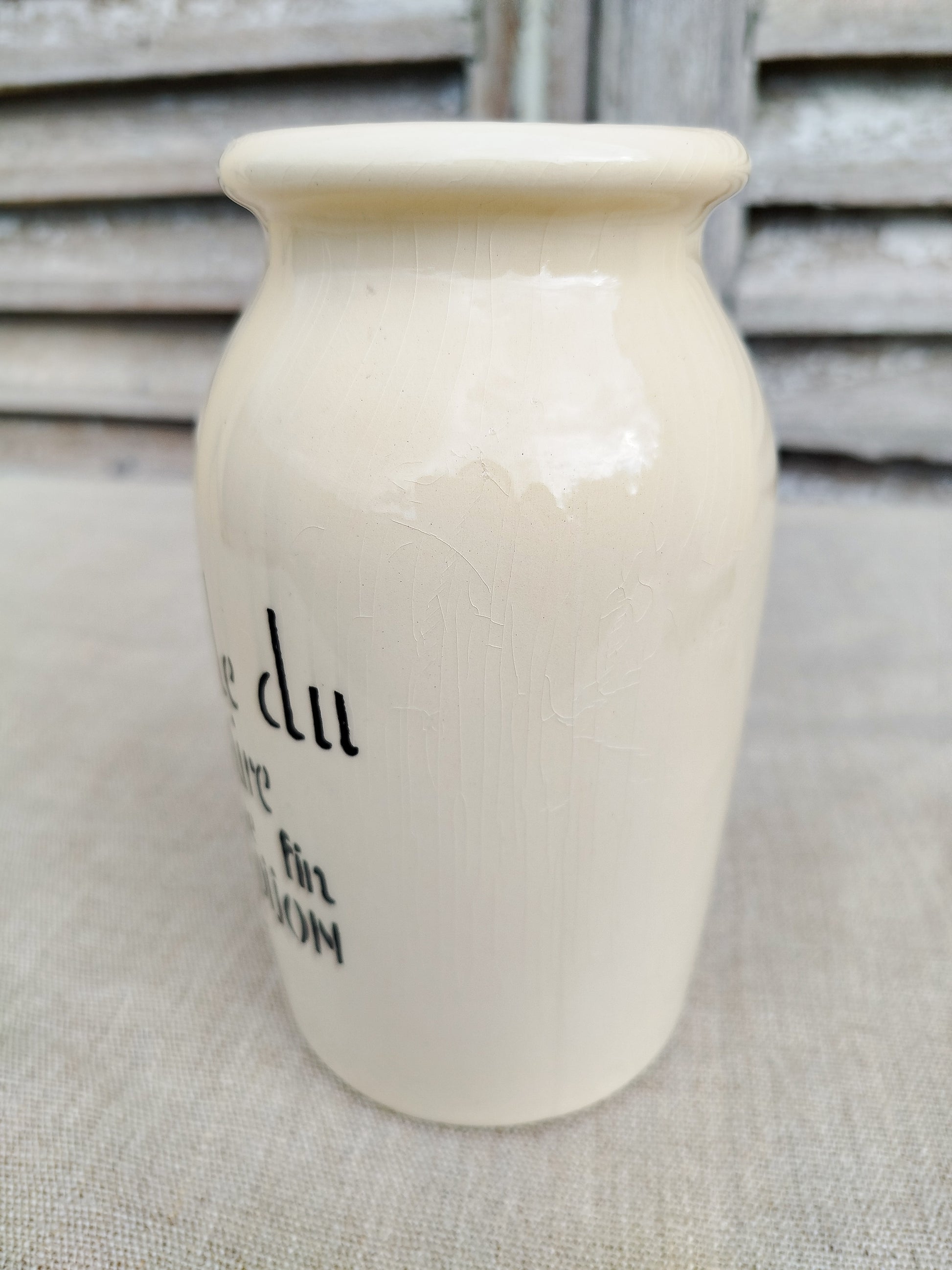 Le mention " Moutarde du Téméraire au vinaigre fin Bornier Dijon" est écrite en noir sur le devant du pot.