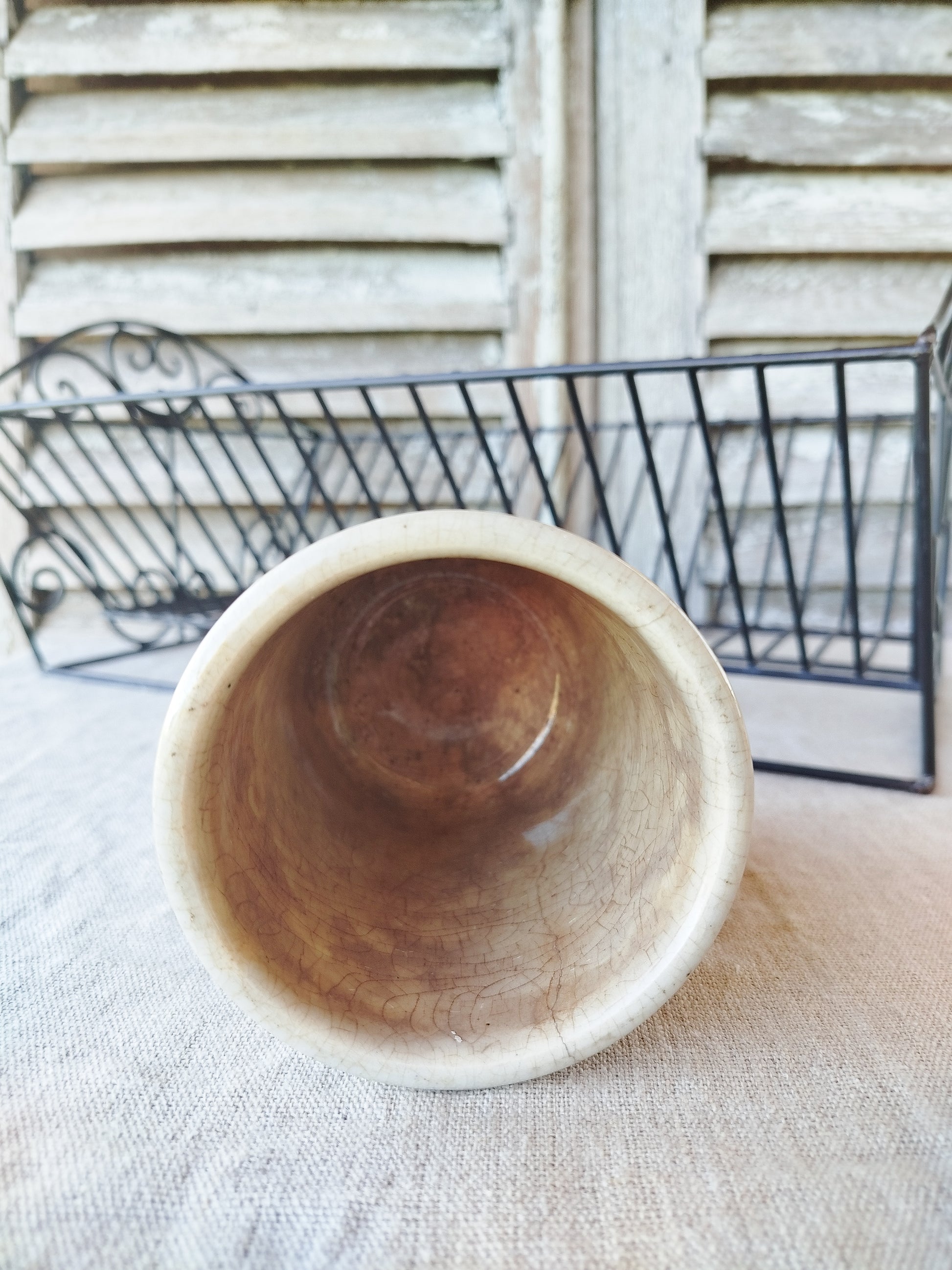 Le pot est encore en bon état pour son âge, un fêle a noter sur le devant du pot, mais reste solide.( Photos).