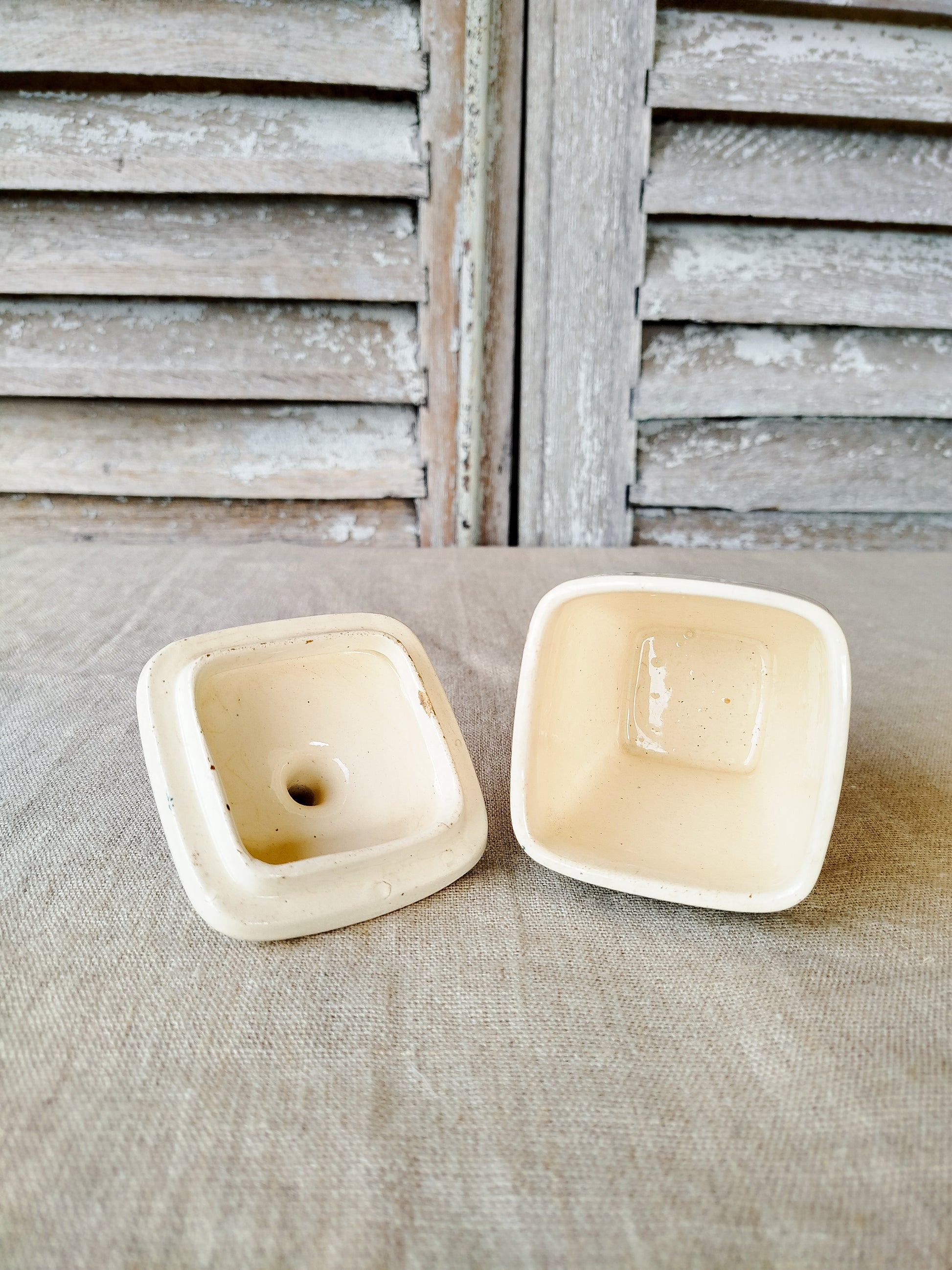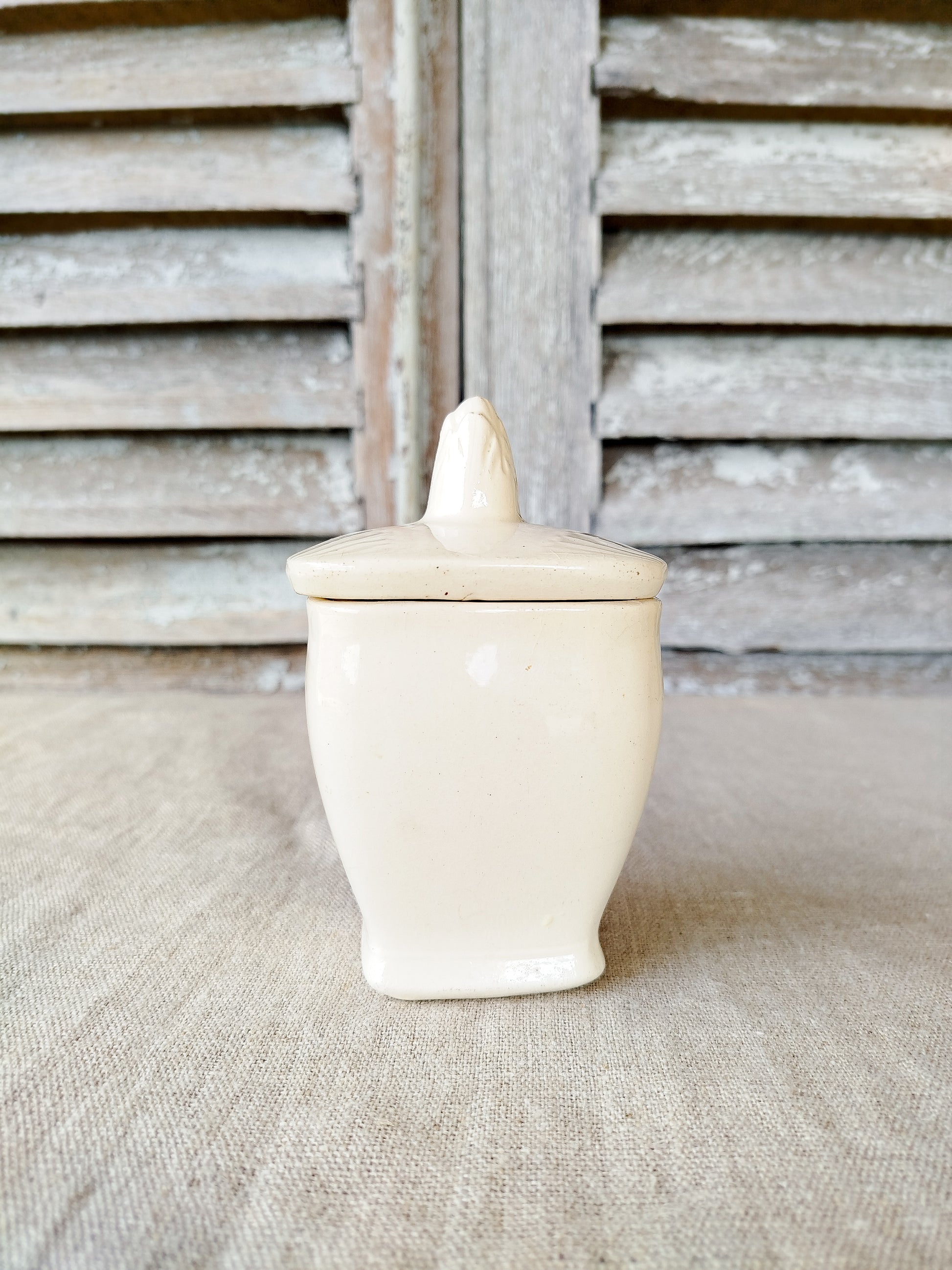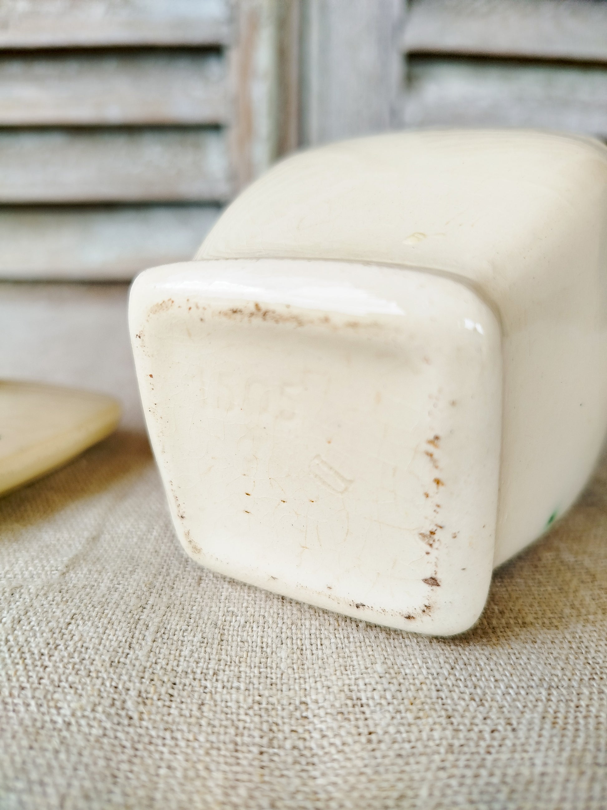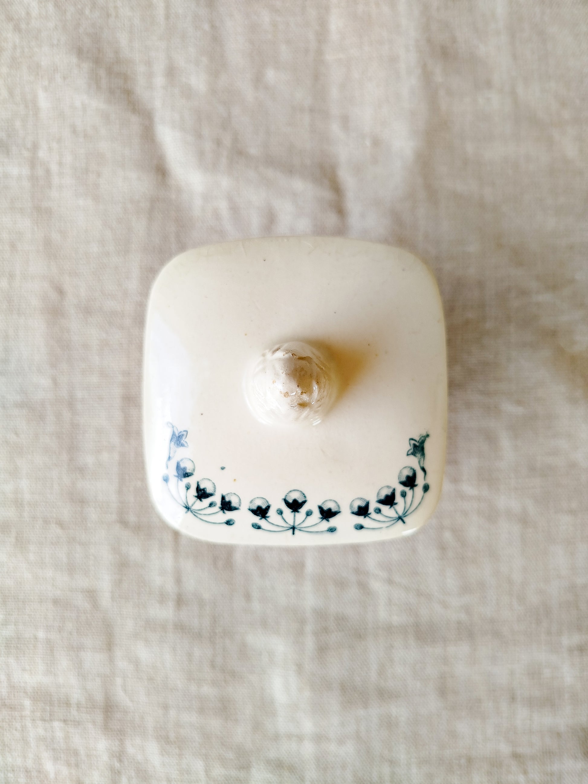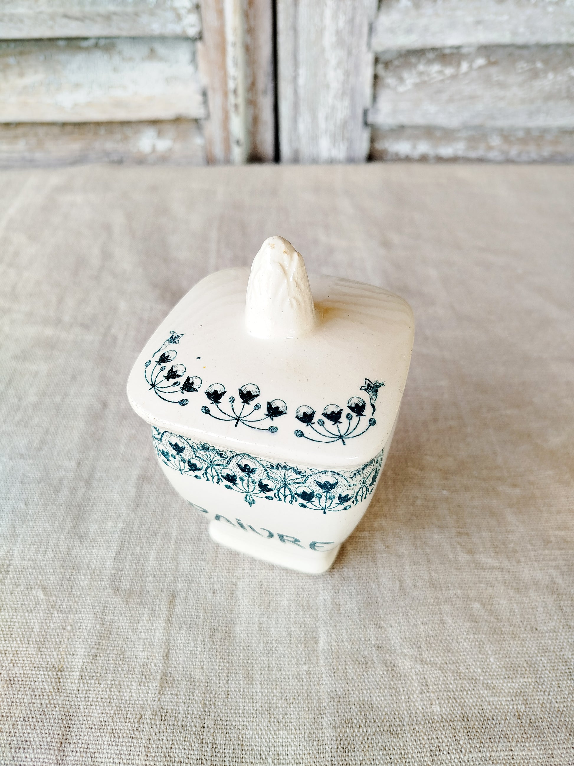Sur le devant du pot et sur le couvercle, il est orné d'une frises aux motifs art déco.