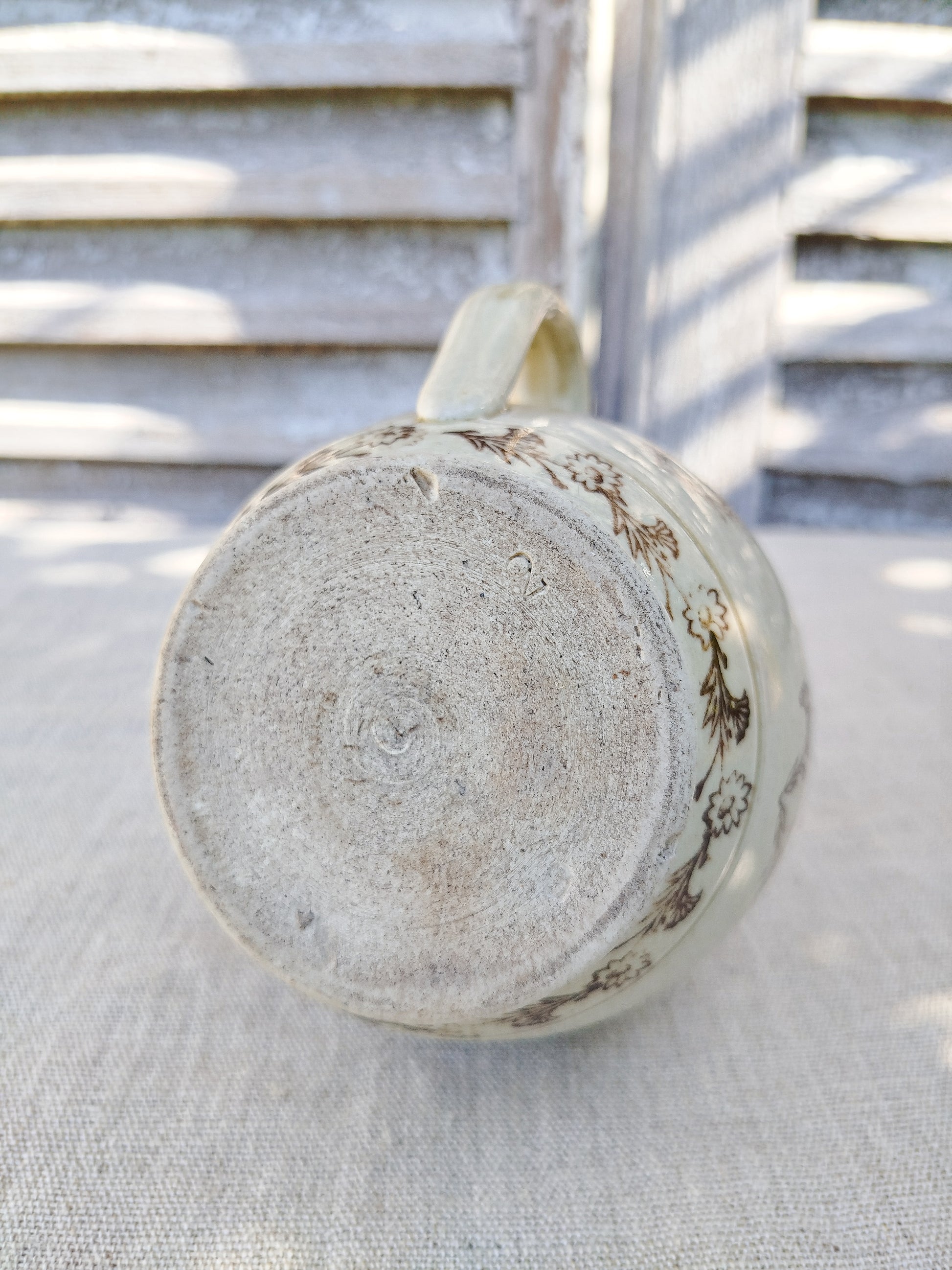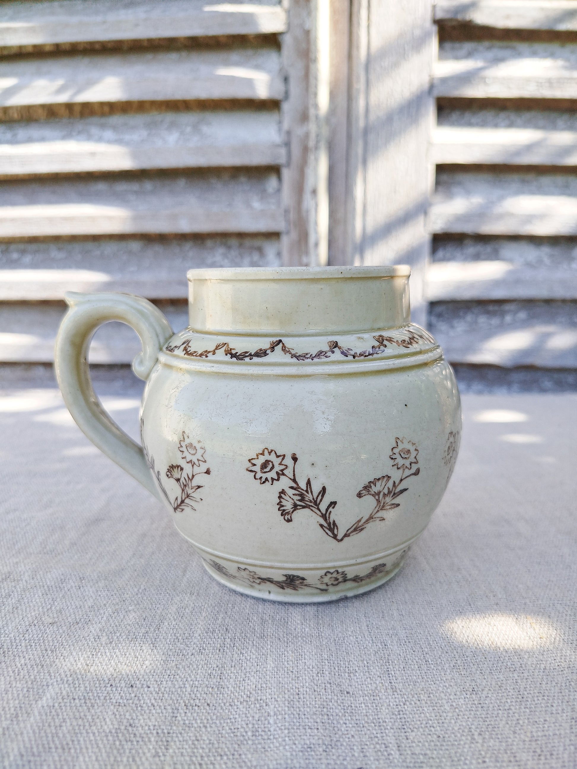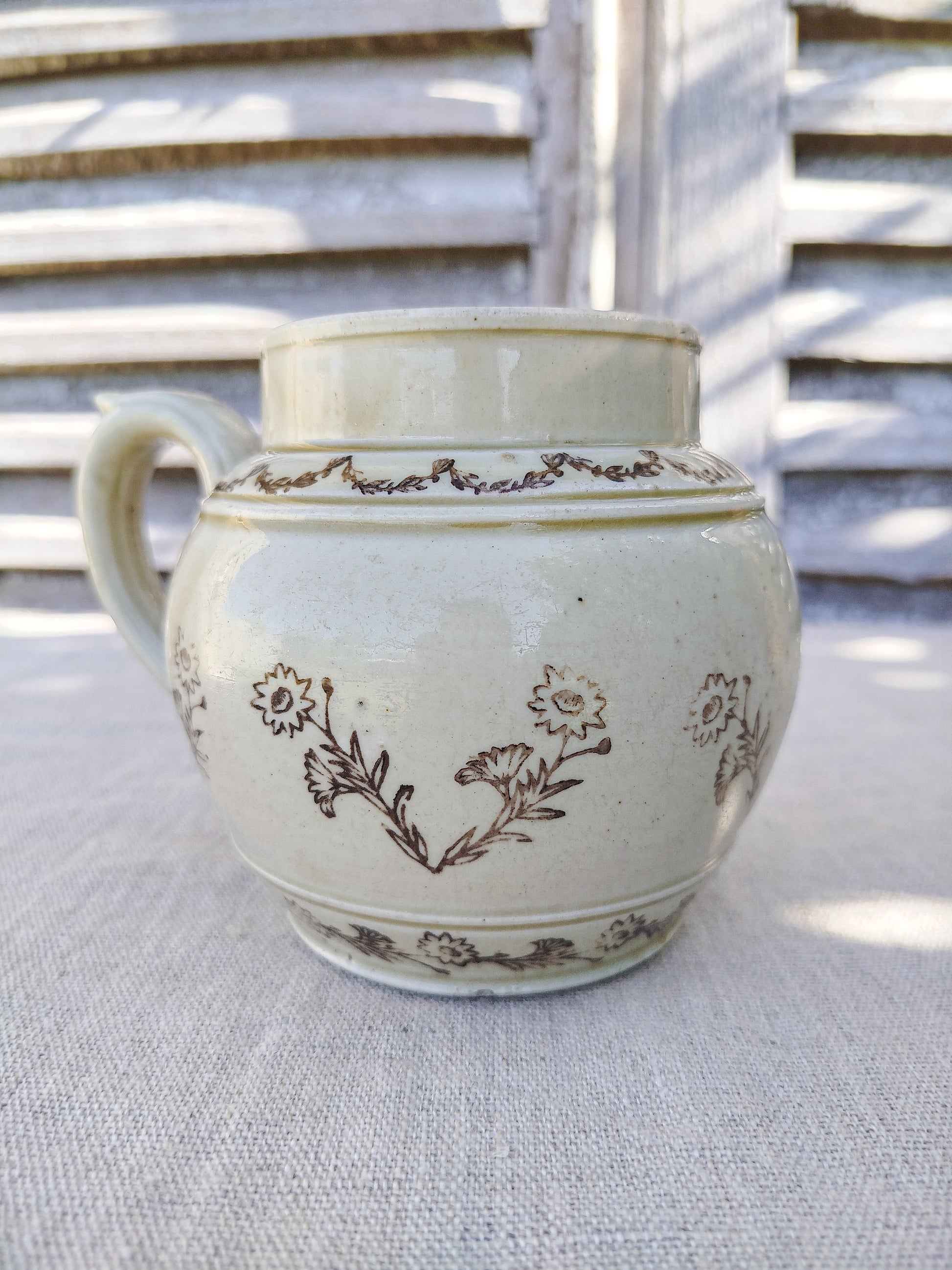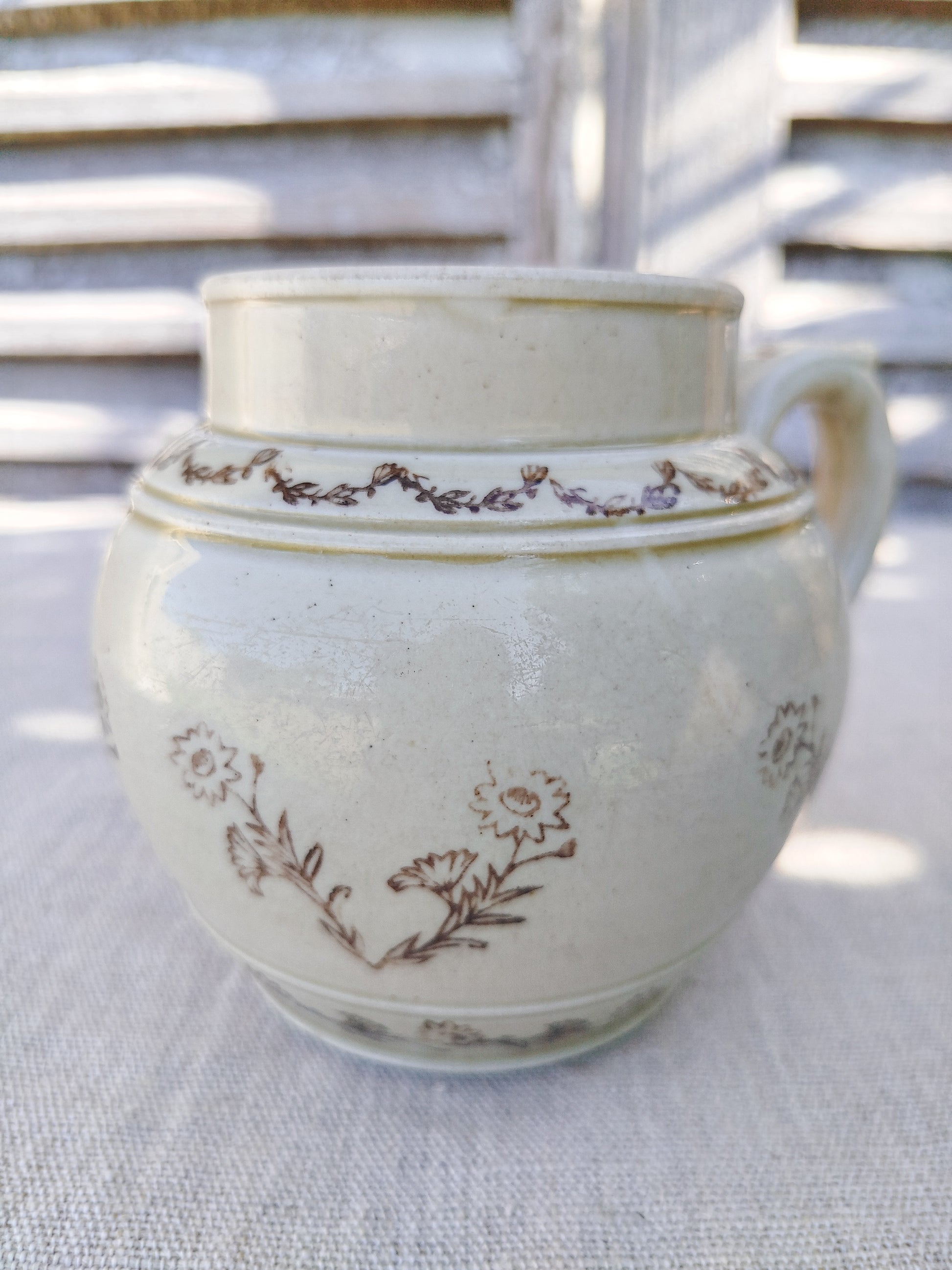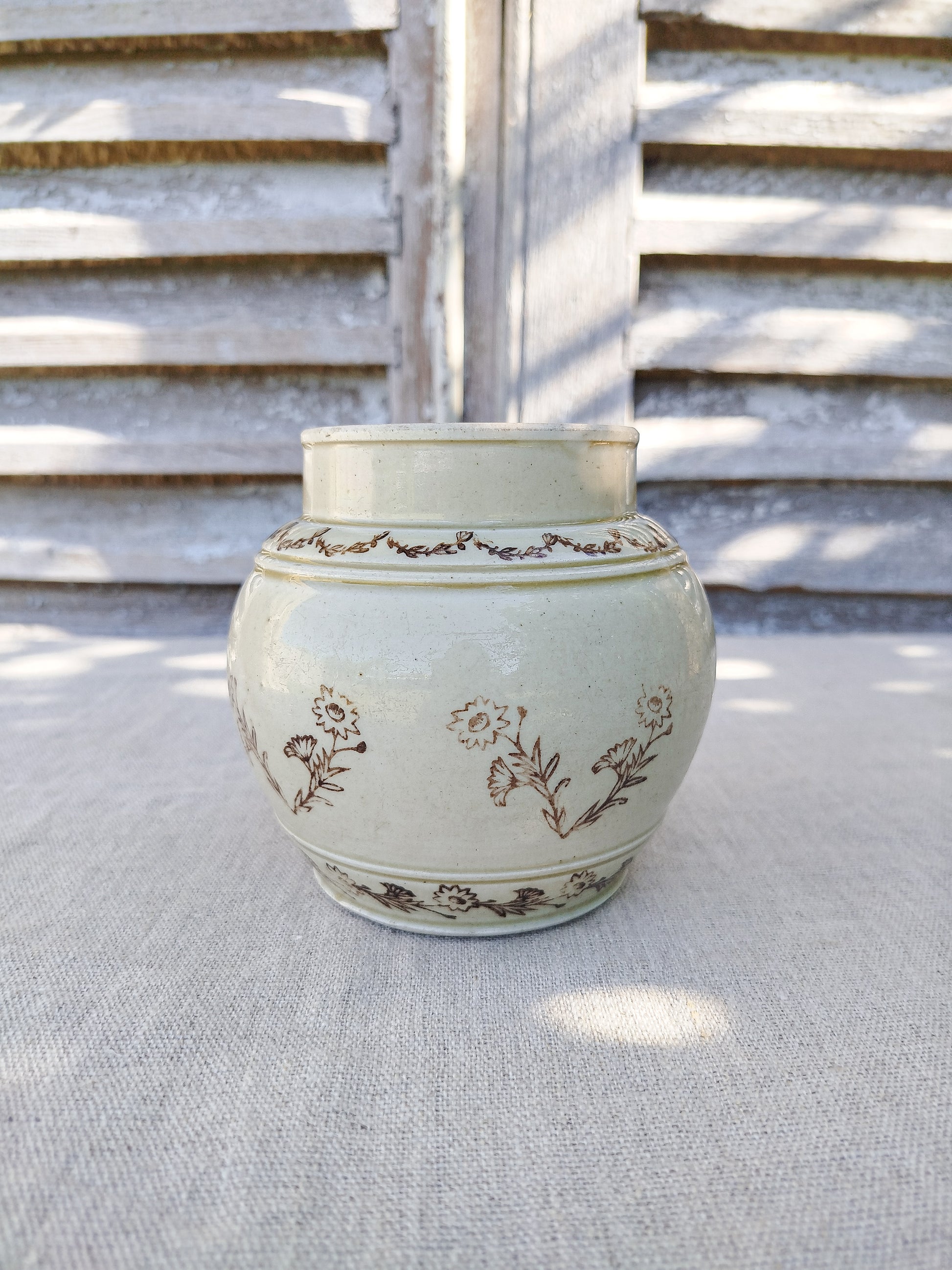 Il est orné d'un décor floral en marron, ce qui est plutôt rare.