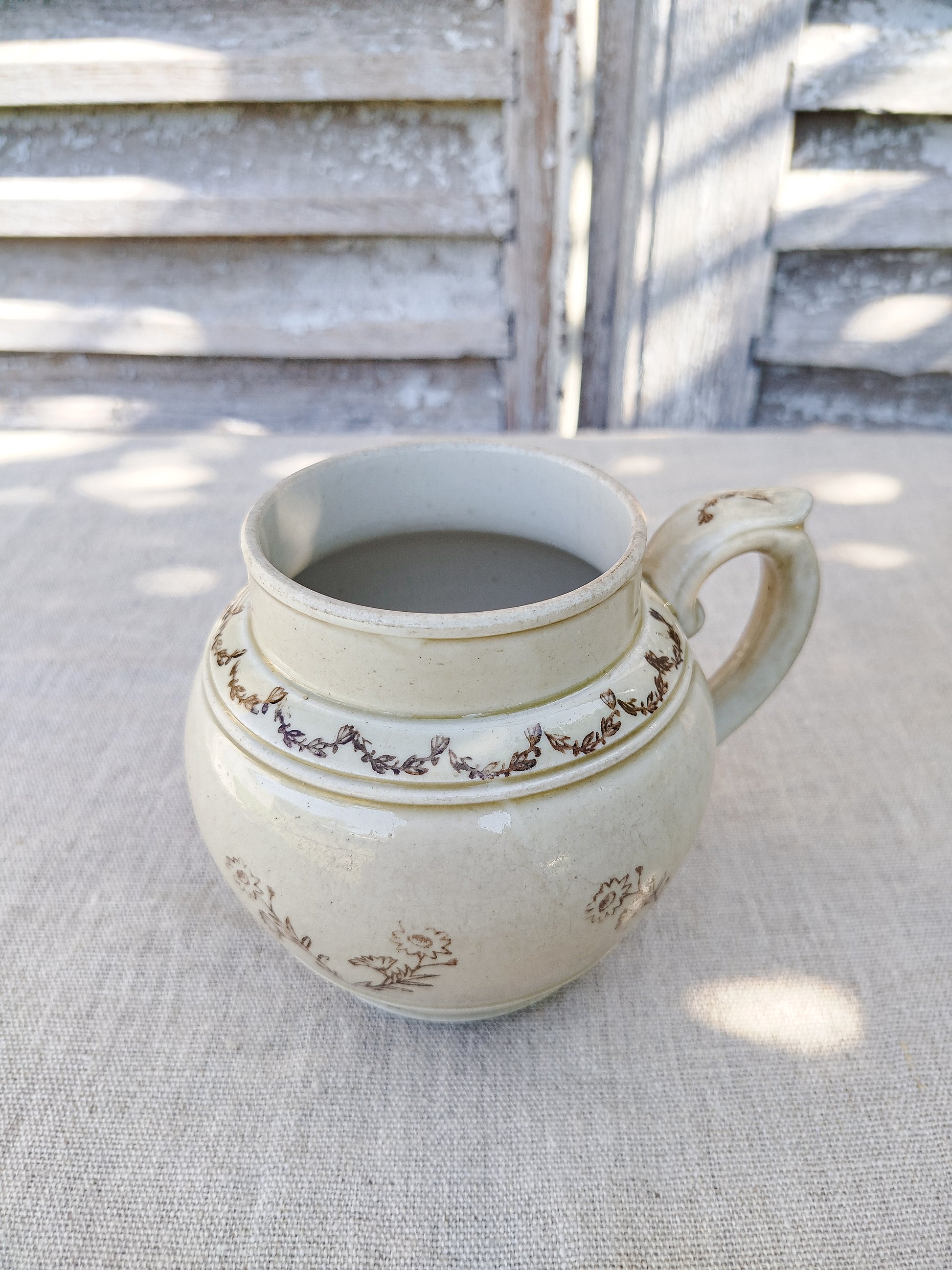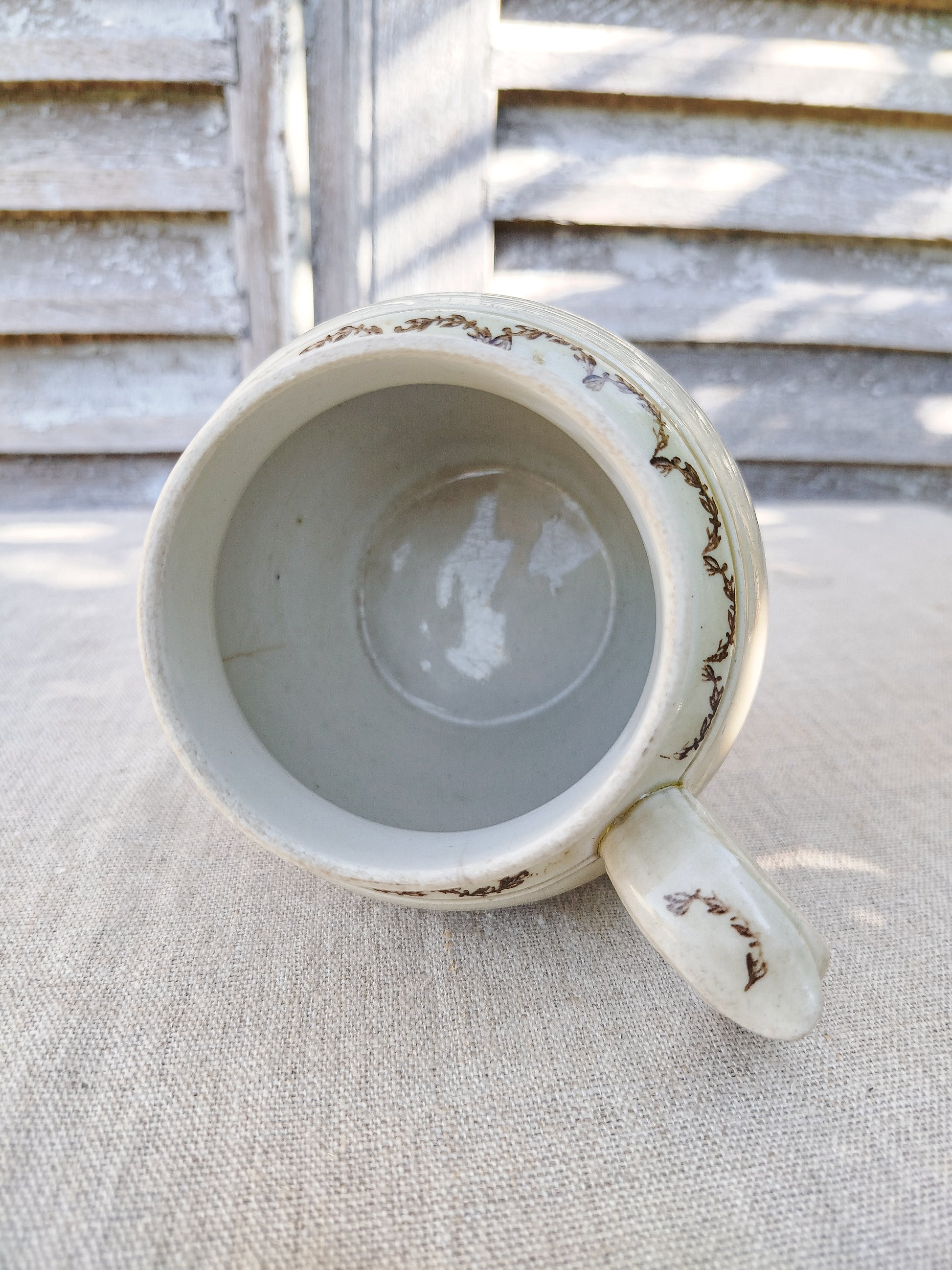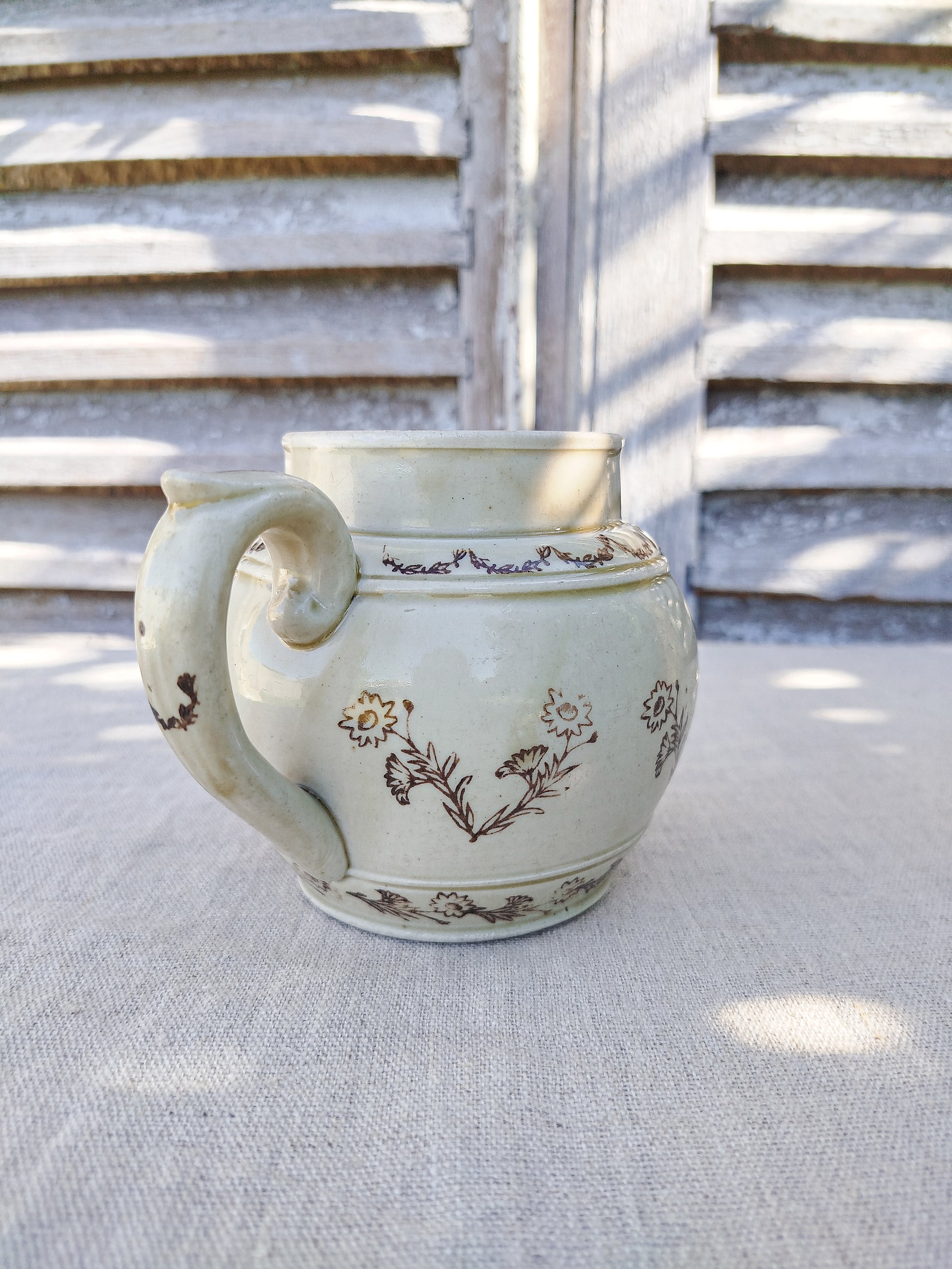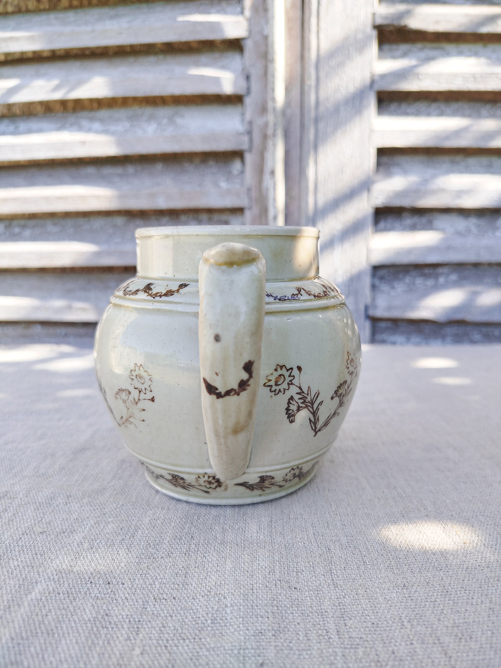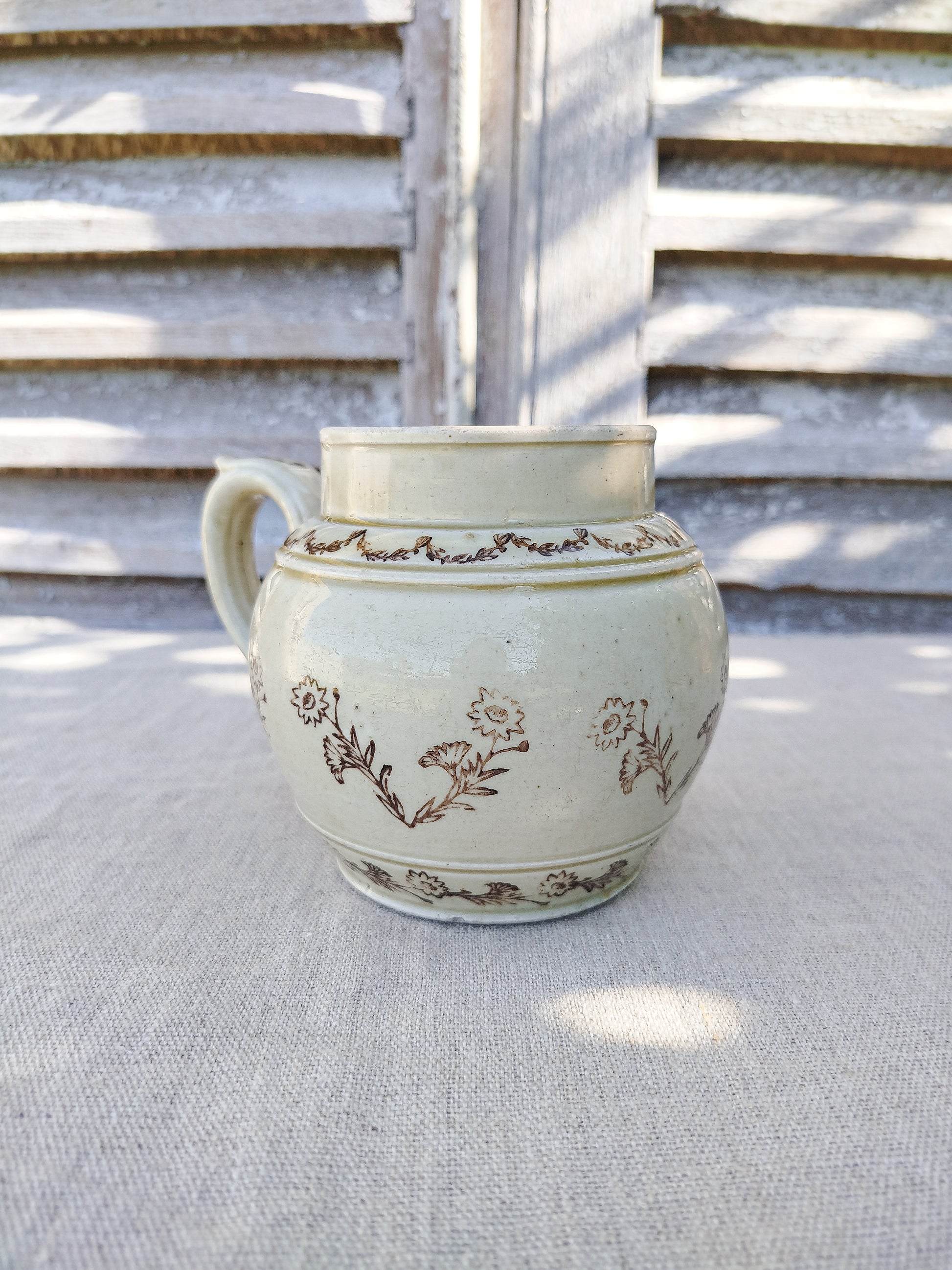 Il est orné d'un décor floral en marron, ce qui est plutôt rare.