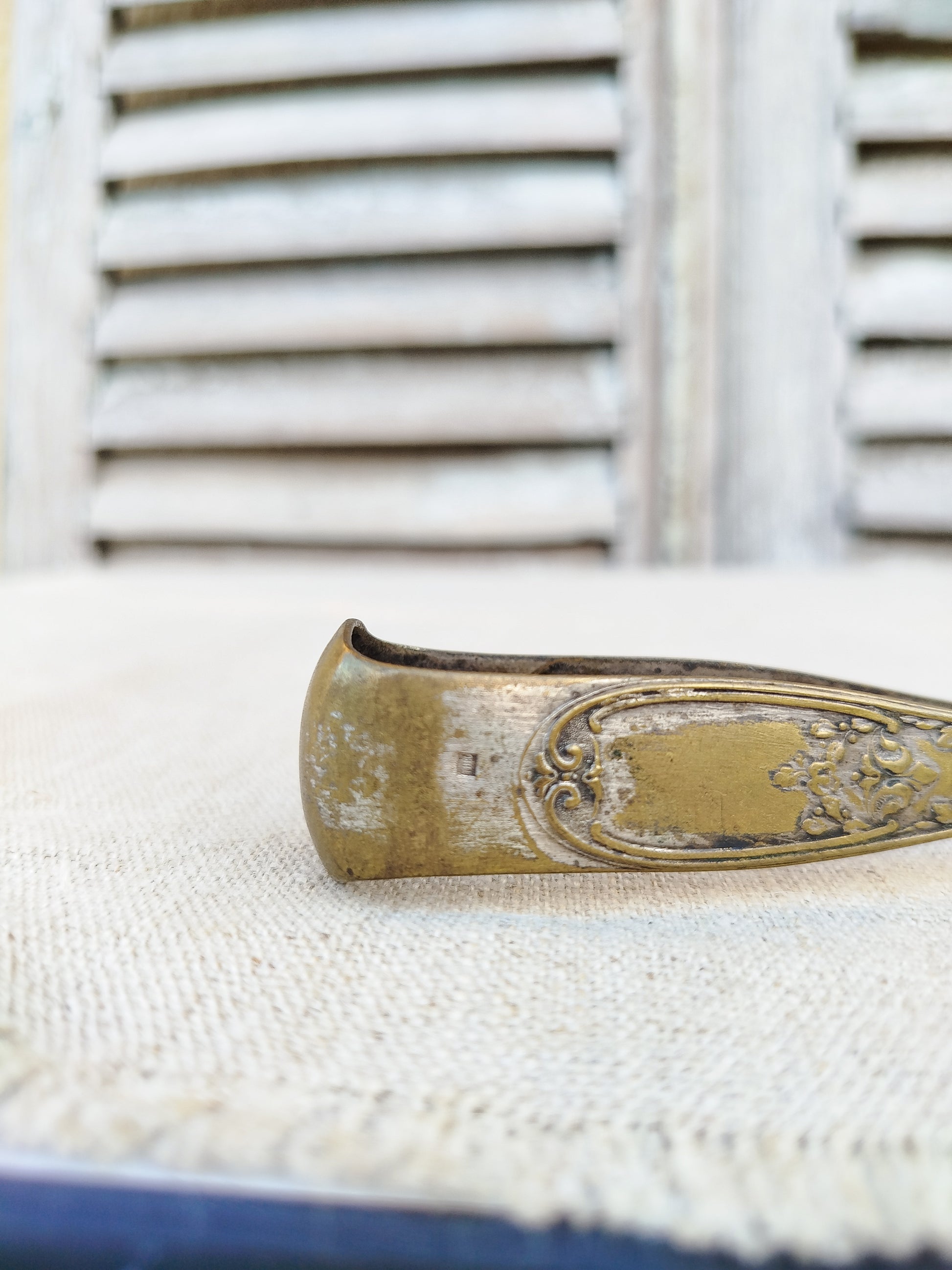 De nombreuses parties dorées sont manquantes ce qui laisse voir le métal brut apparent.