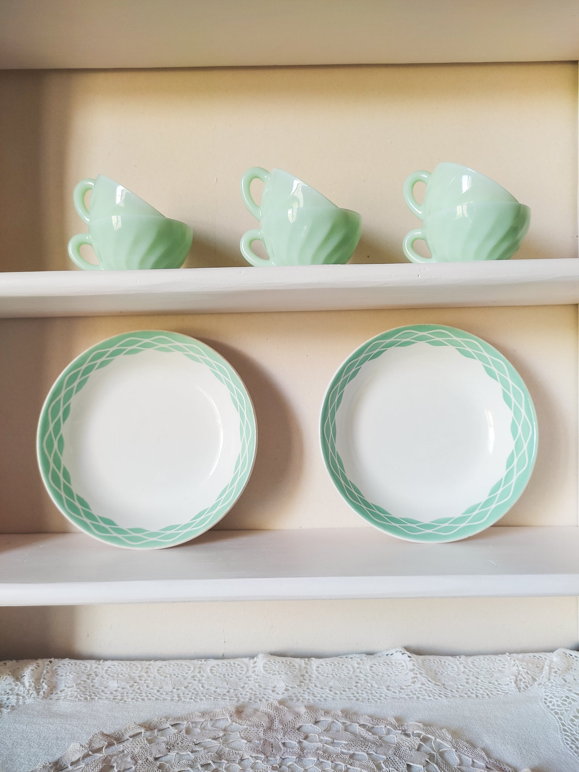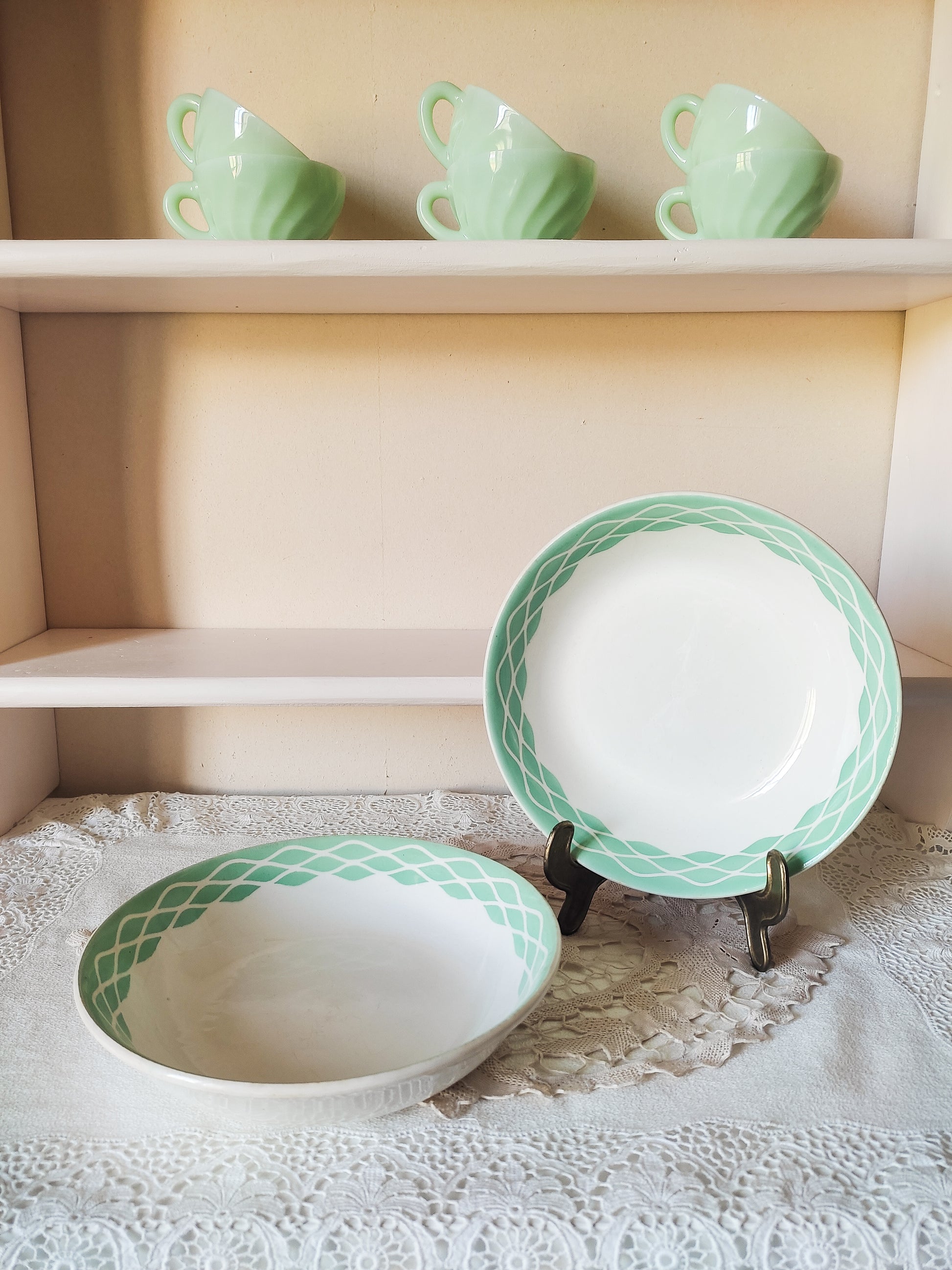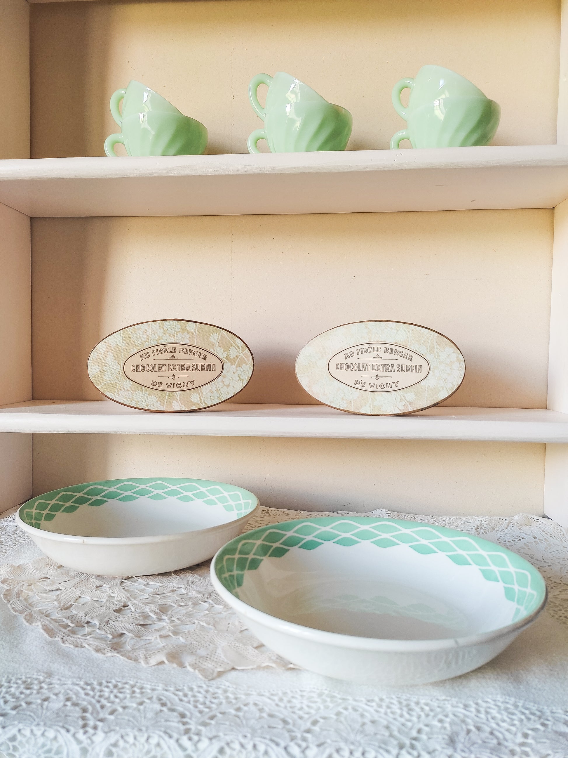 Il s'agit du modèle " Lola " avec une frise vintage couleur vert pastel / vert menthe.