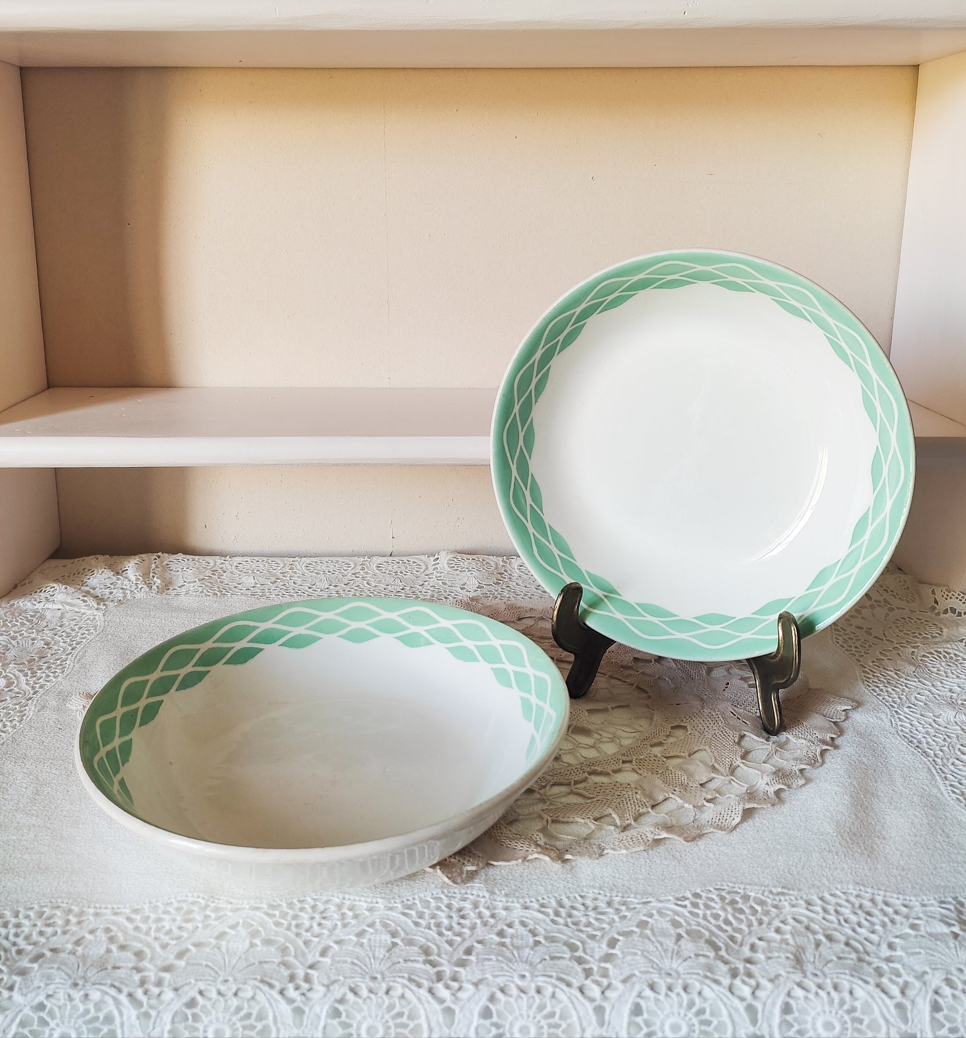 Ensemble de deux assiettes creuses vintage en faïence de Digoin et Sarreguemines.
