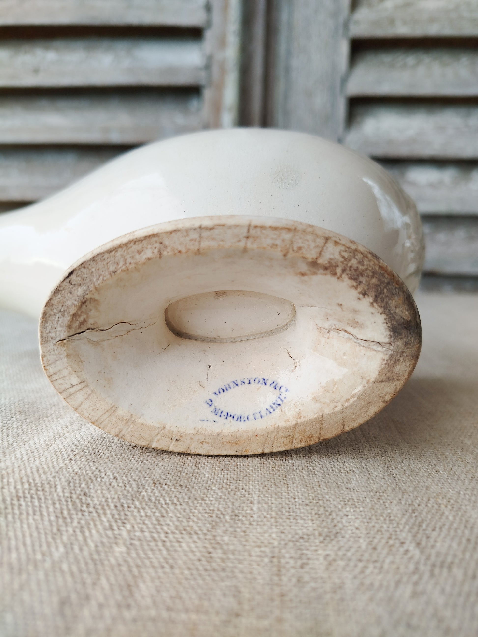 Elle est estampillée au dessous " D Johnston & cie Mi porcelaine". En écritures bleues.