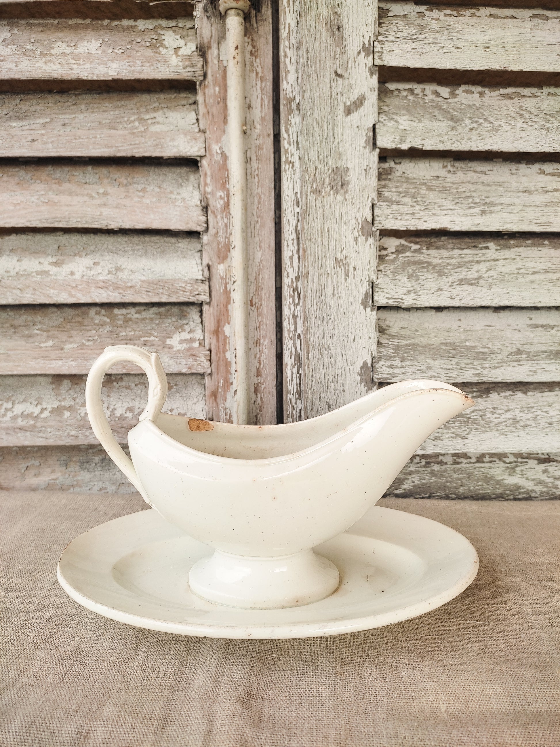 Une petite fente (8 mm) est présente sur le plateau ainsi qu'une autre (3cm) entre la saucière et le plateau (voir photos).