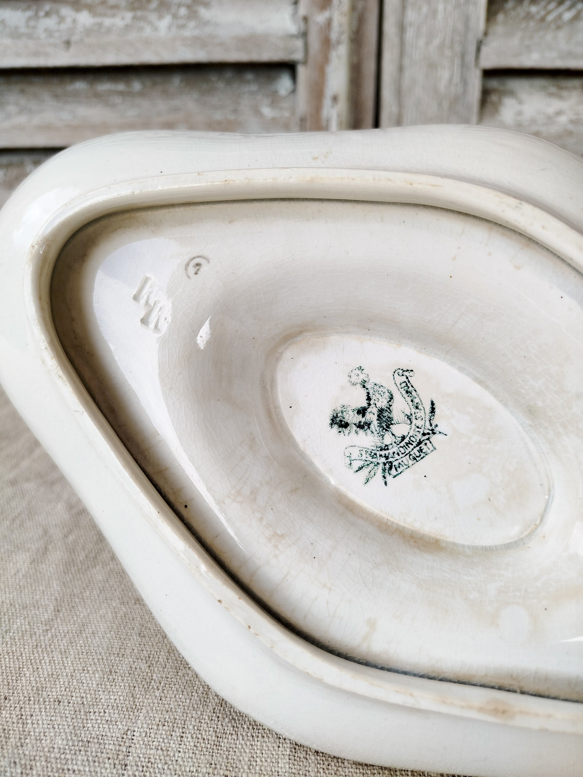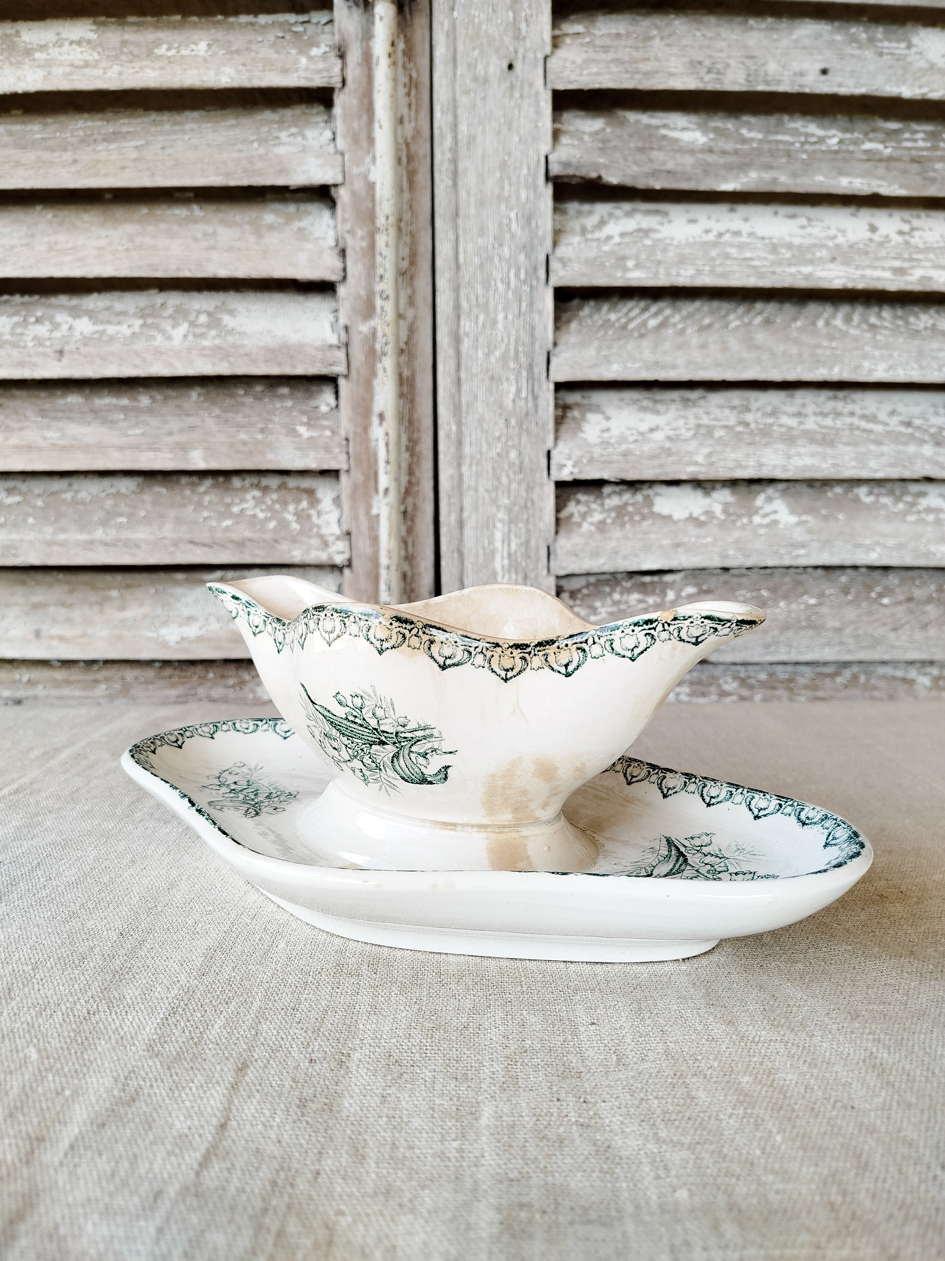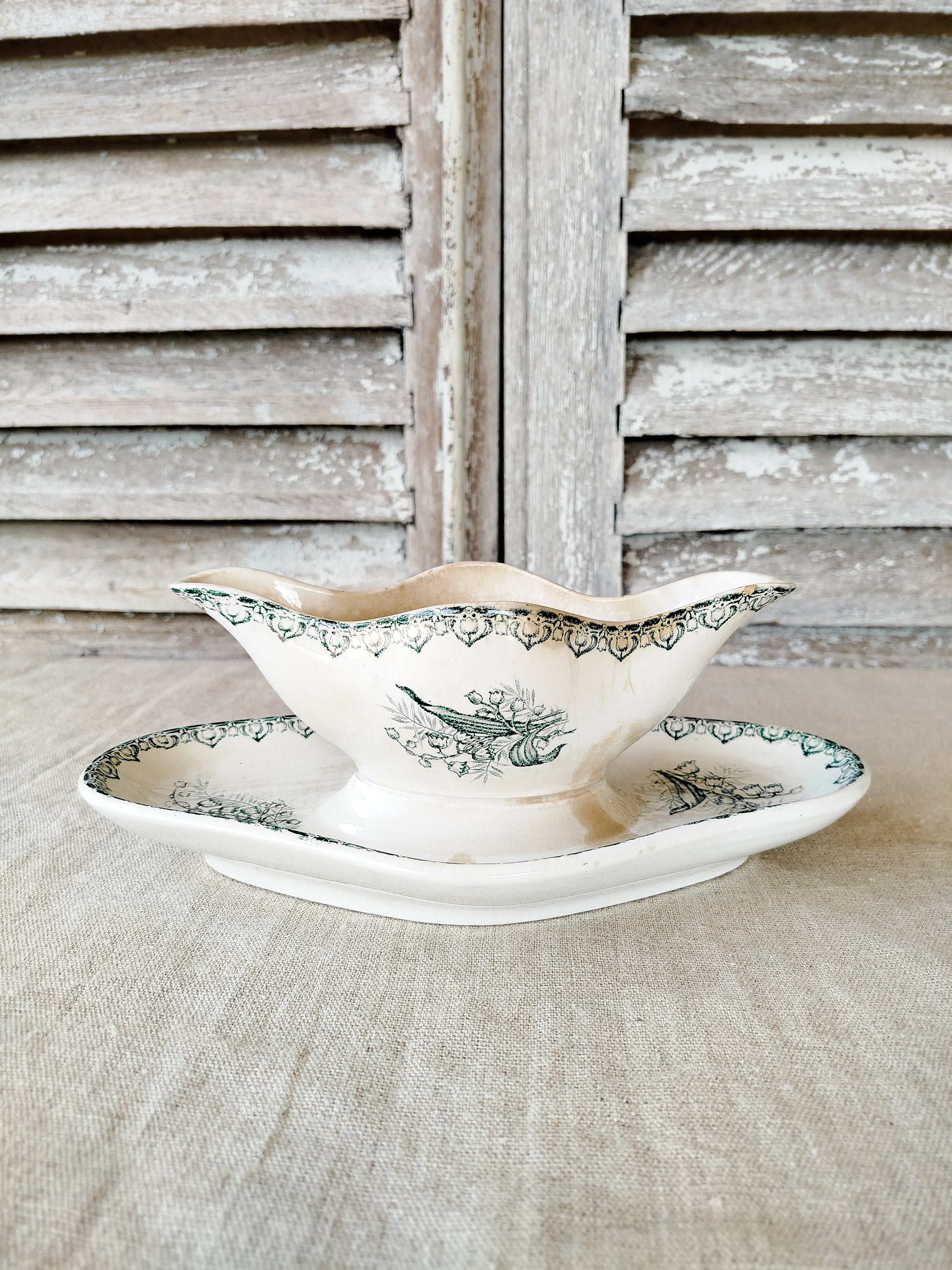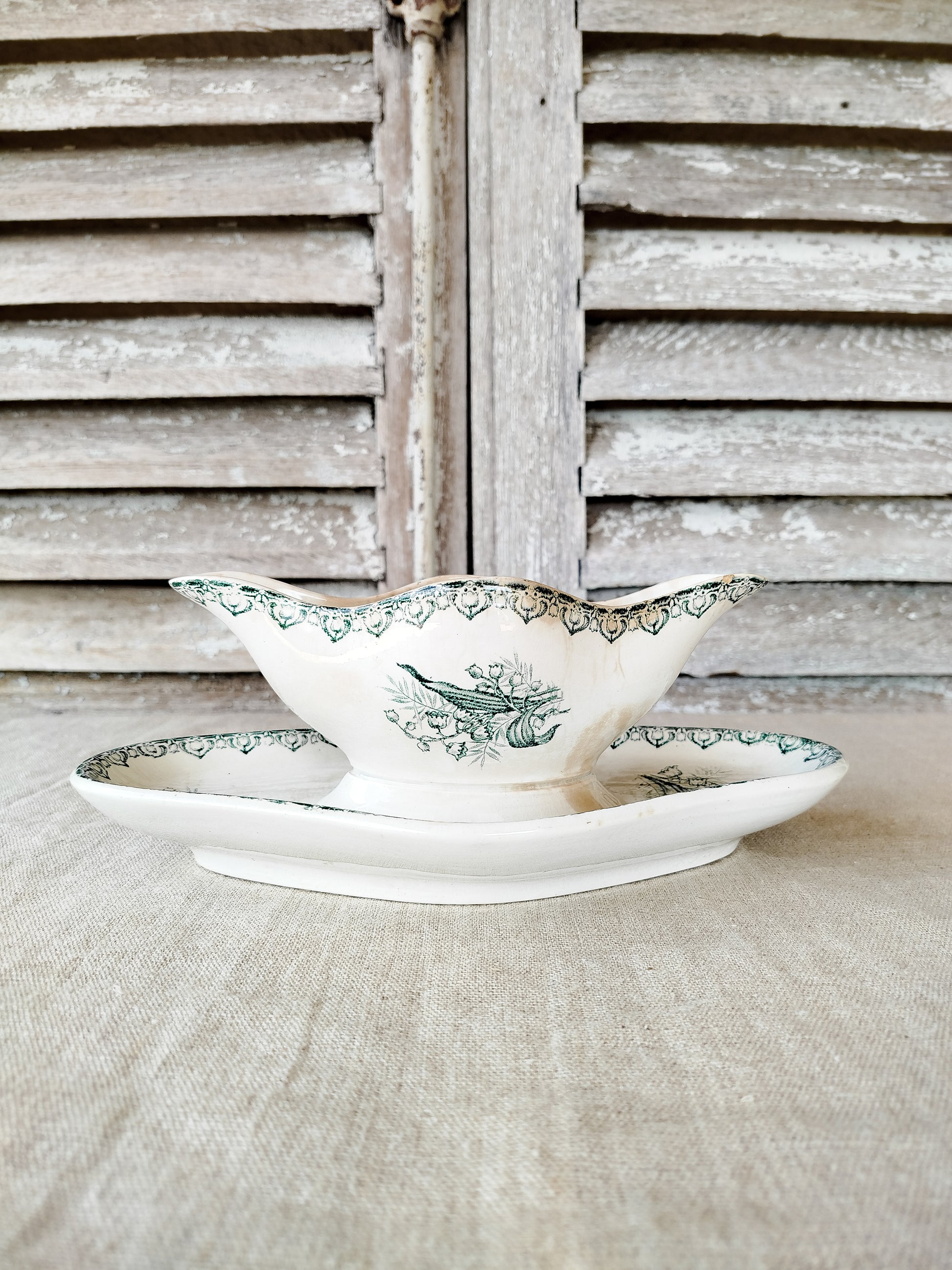 La saucière présente un petit éclat sur le rebord du haut, et un cheveux sur une extrémité. (Photos).