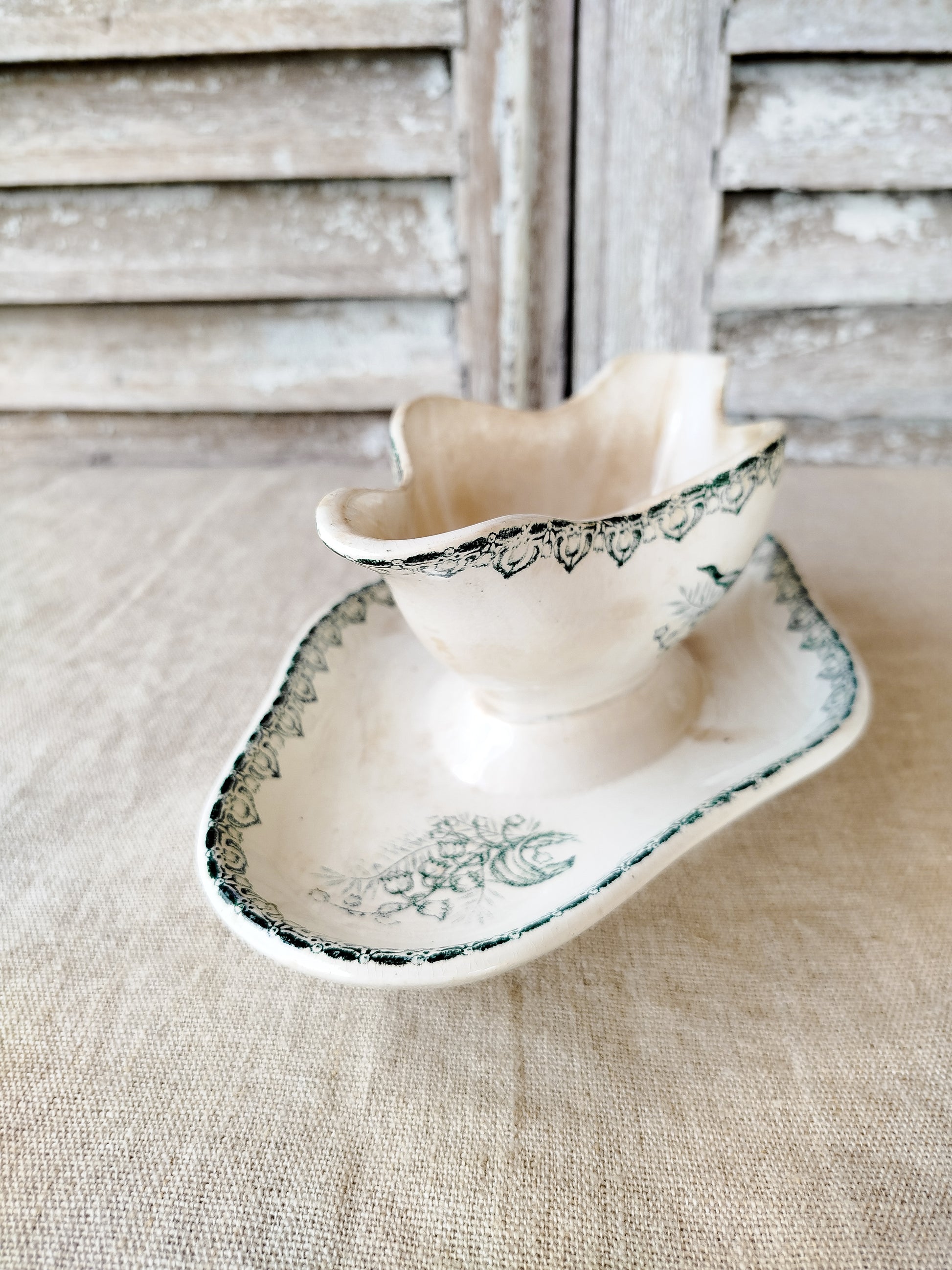 Jolie saucière ancienne en terre de fer de St Amand (Nord de la France).