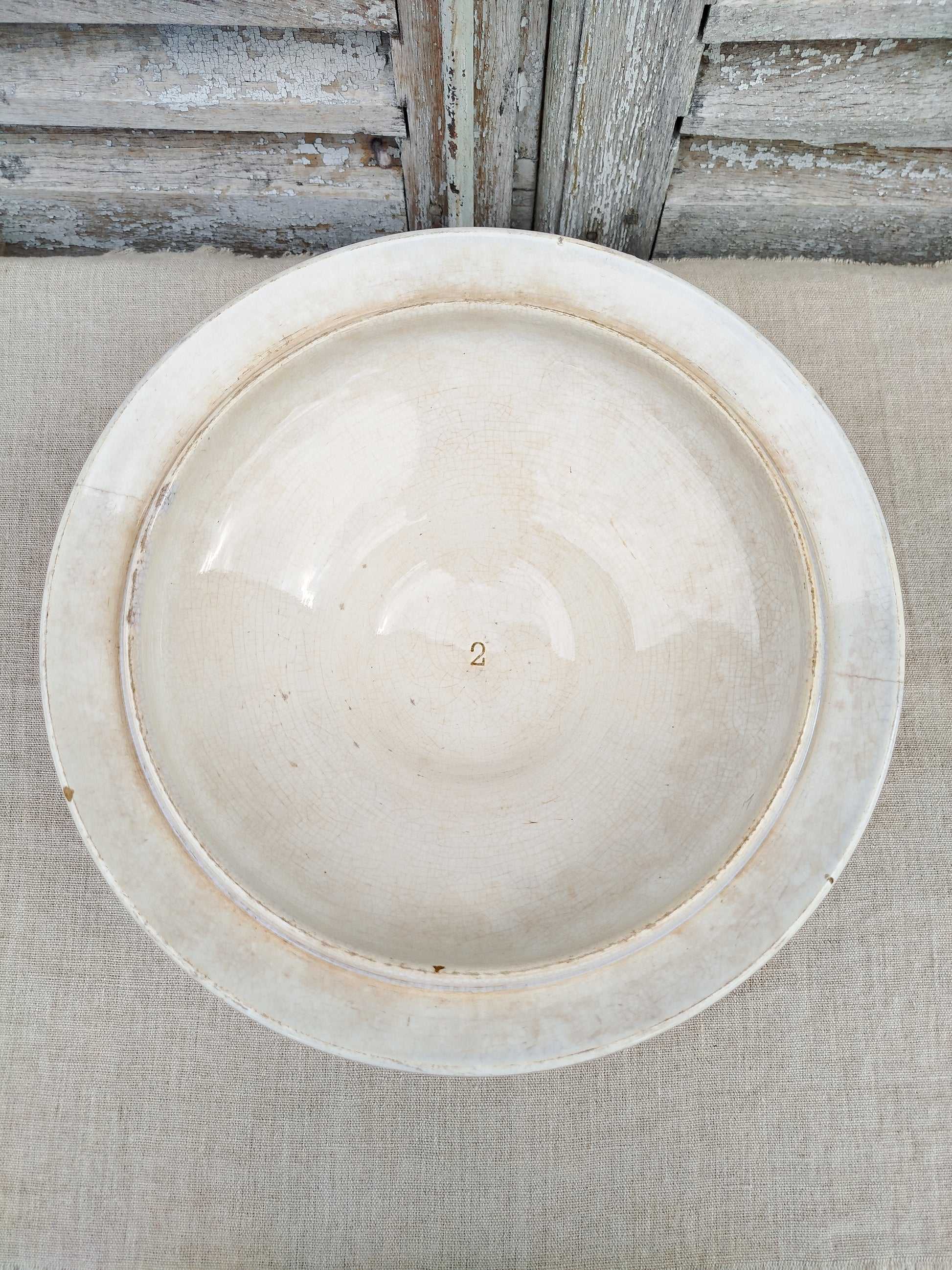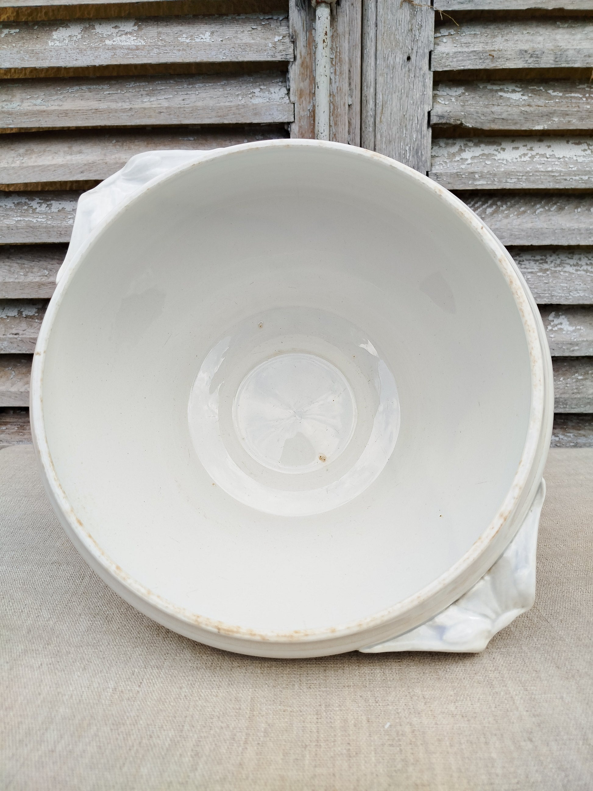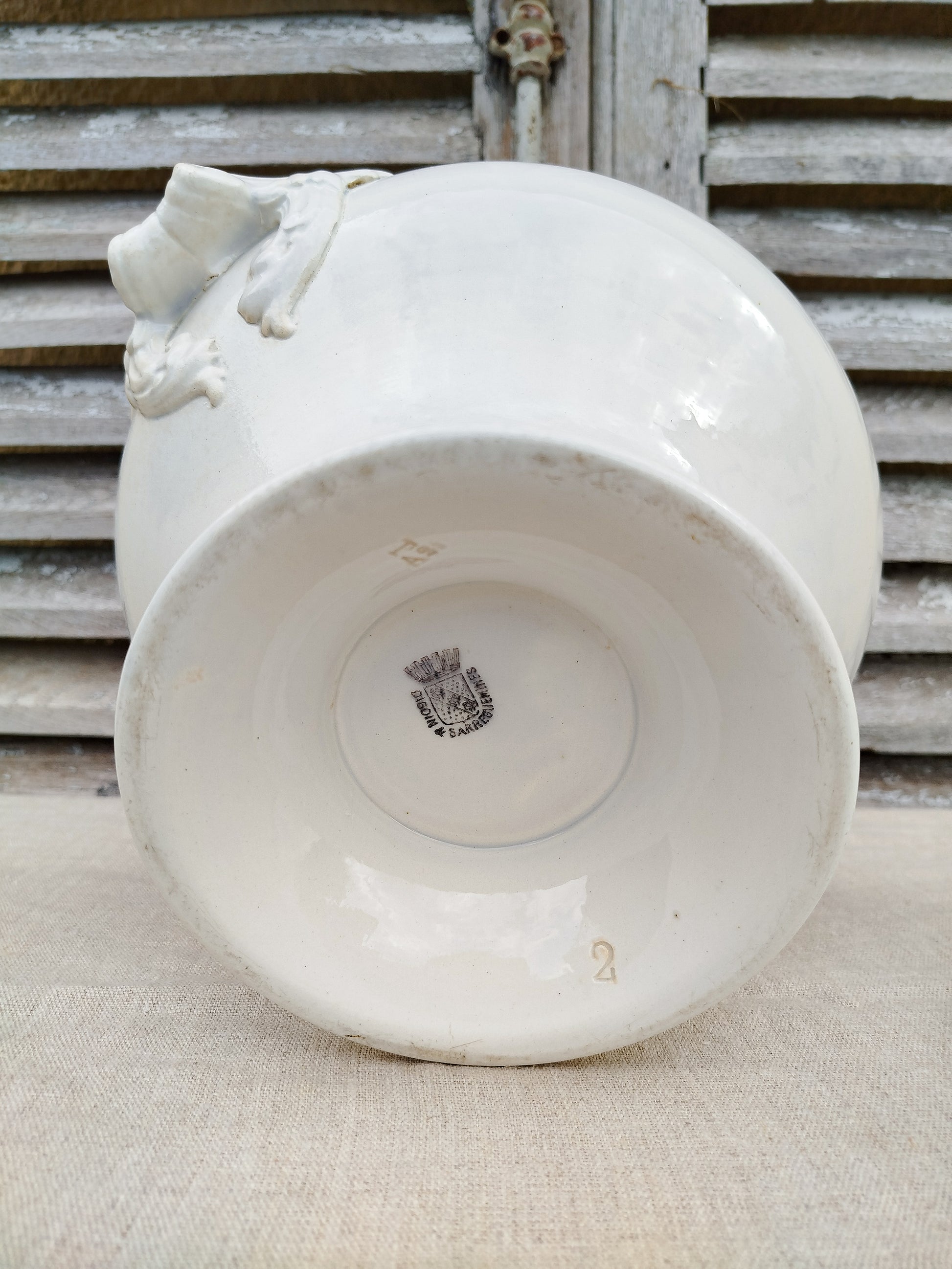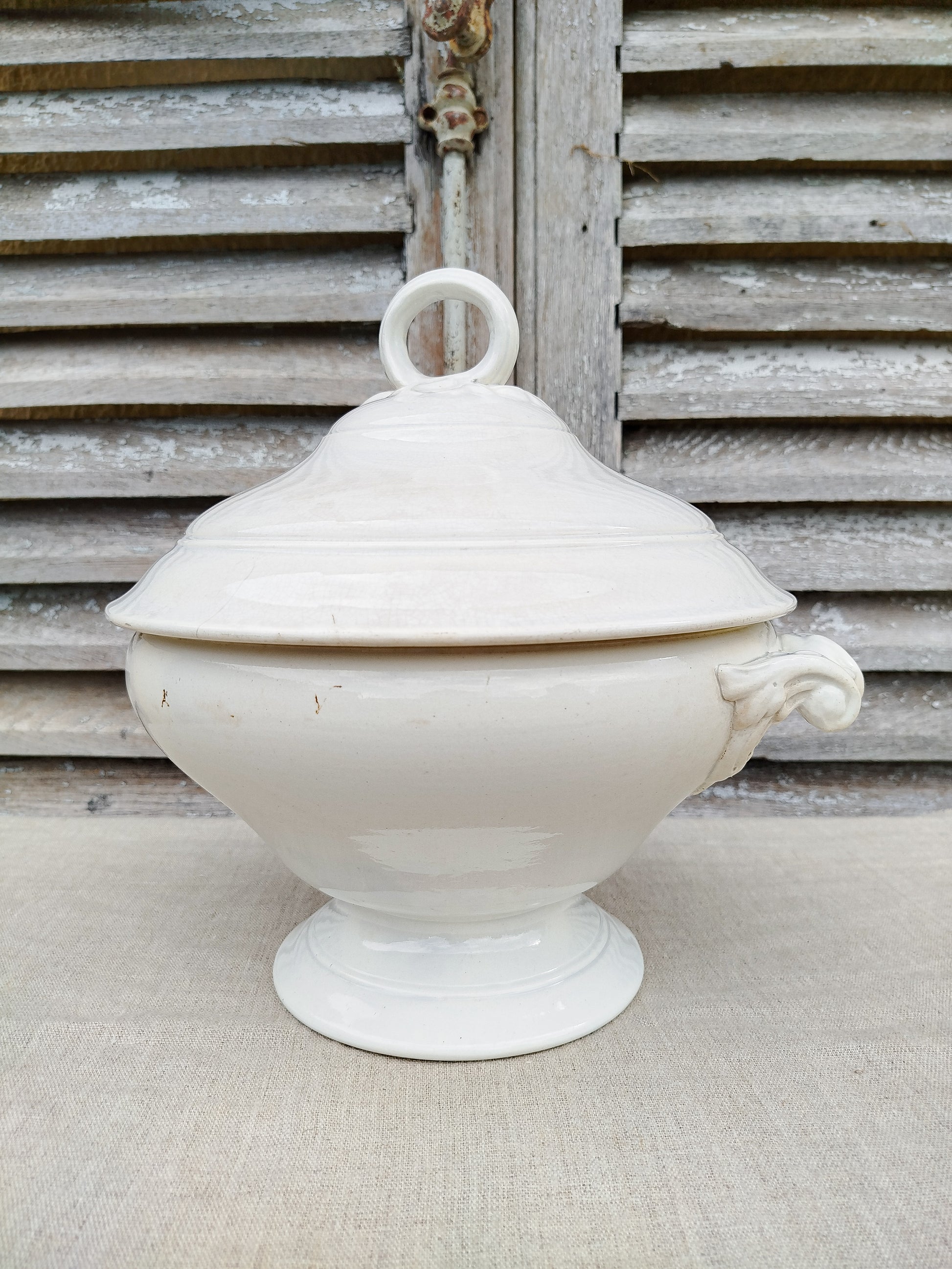 Soupière antique blanche en faïence de Digoin & Sarreguemines.