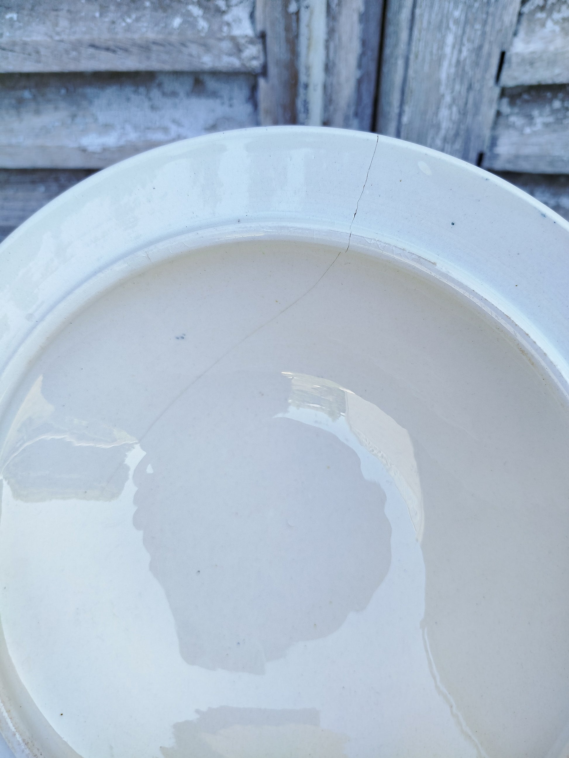 En revanche, le couvercle possède un fêle et un éclat a été recollé sur le rebord. ( Photos).