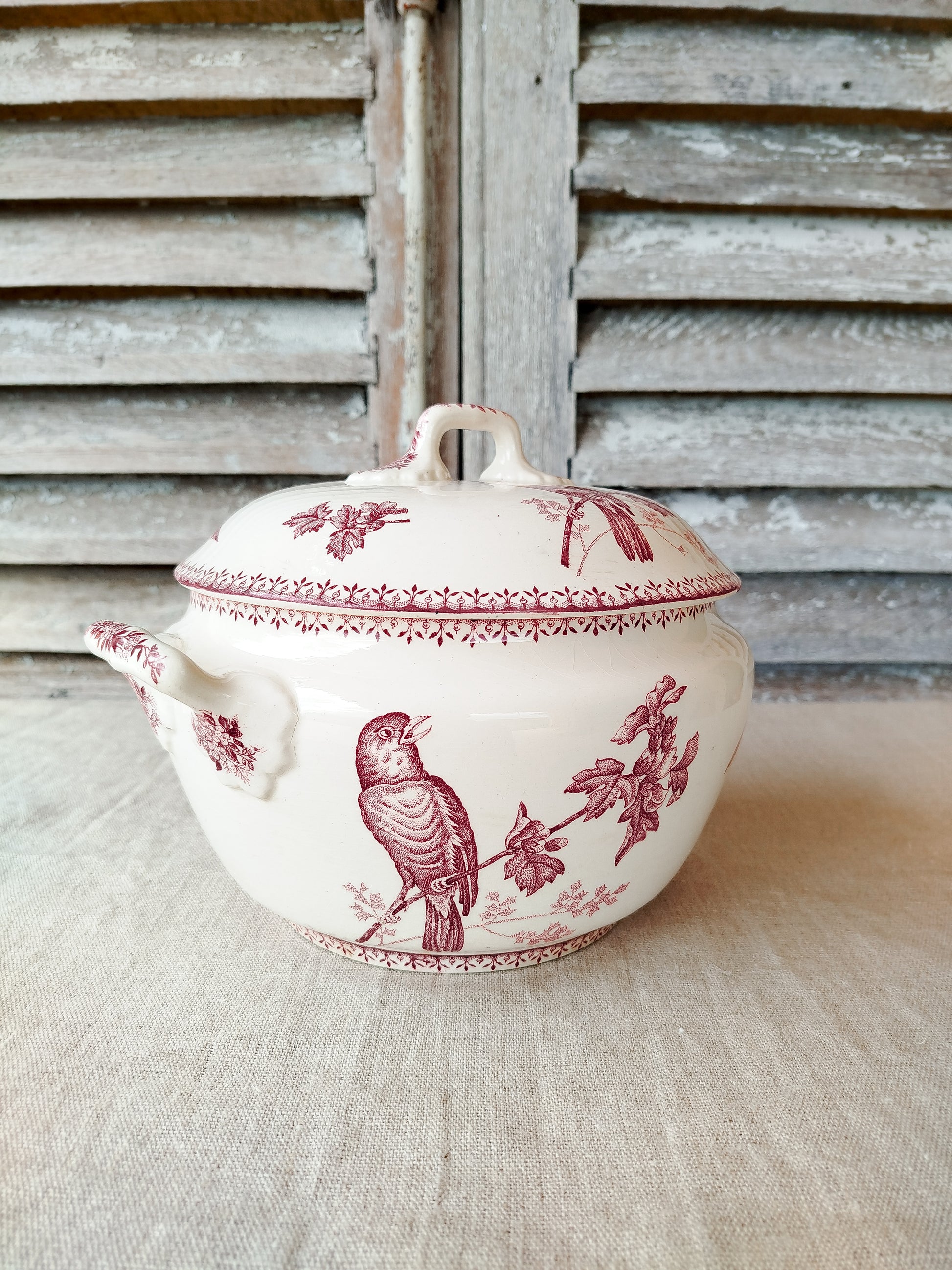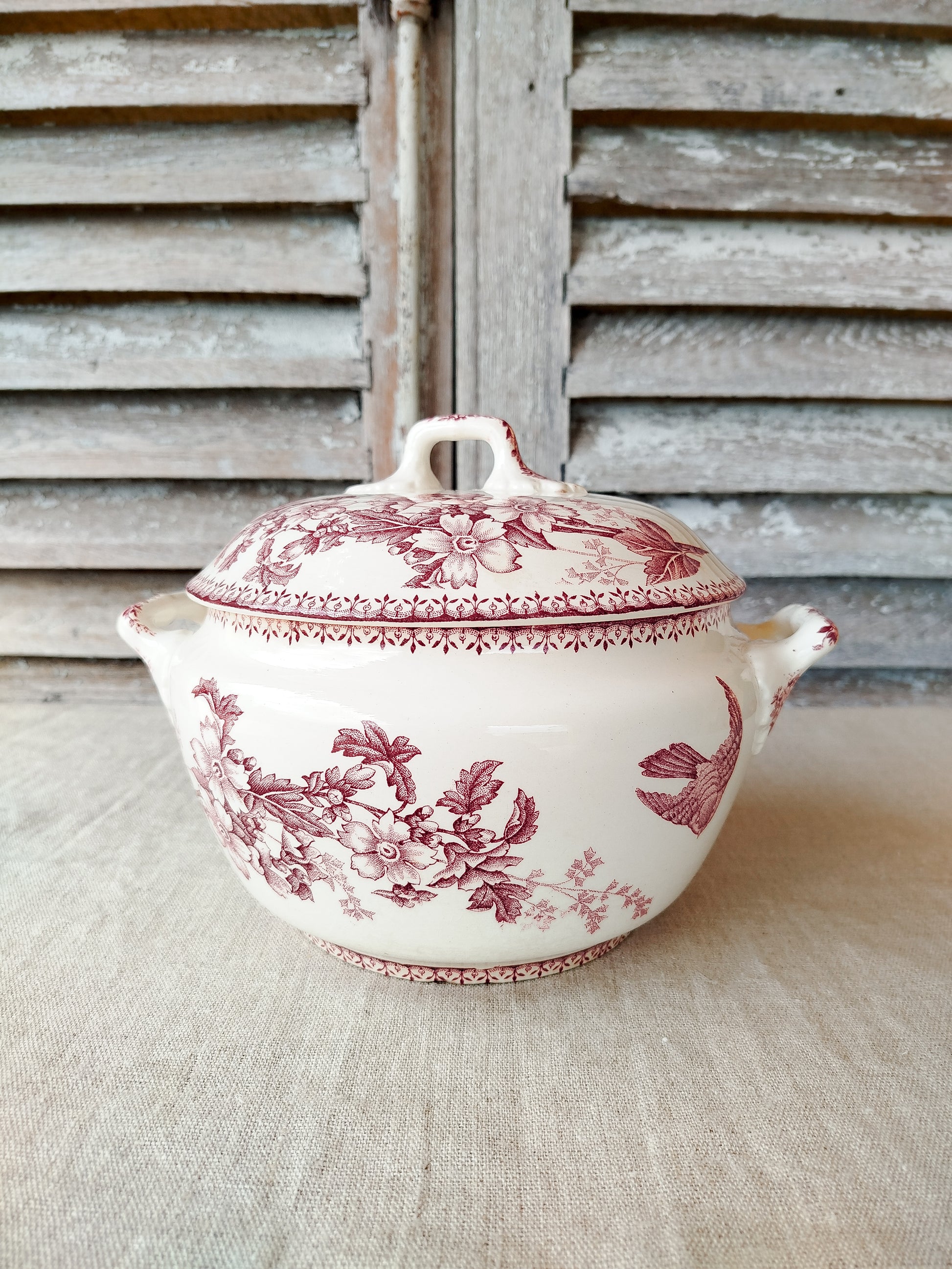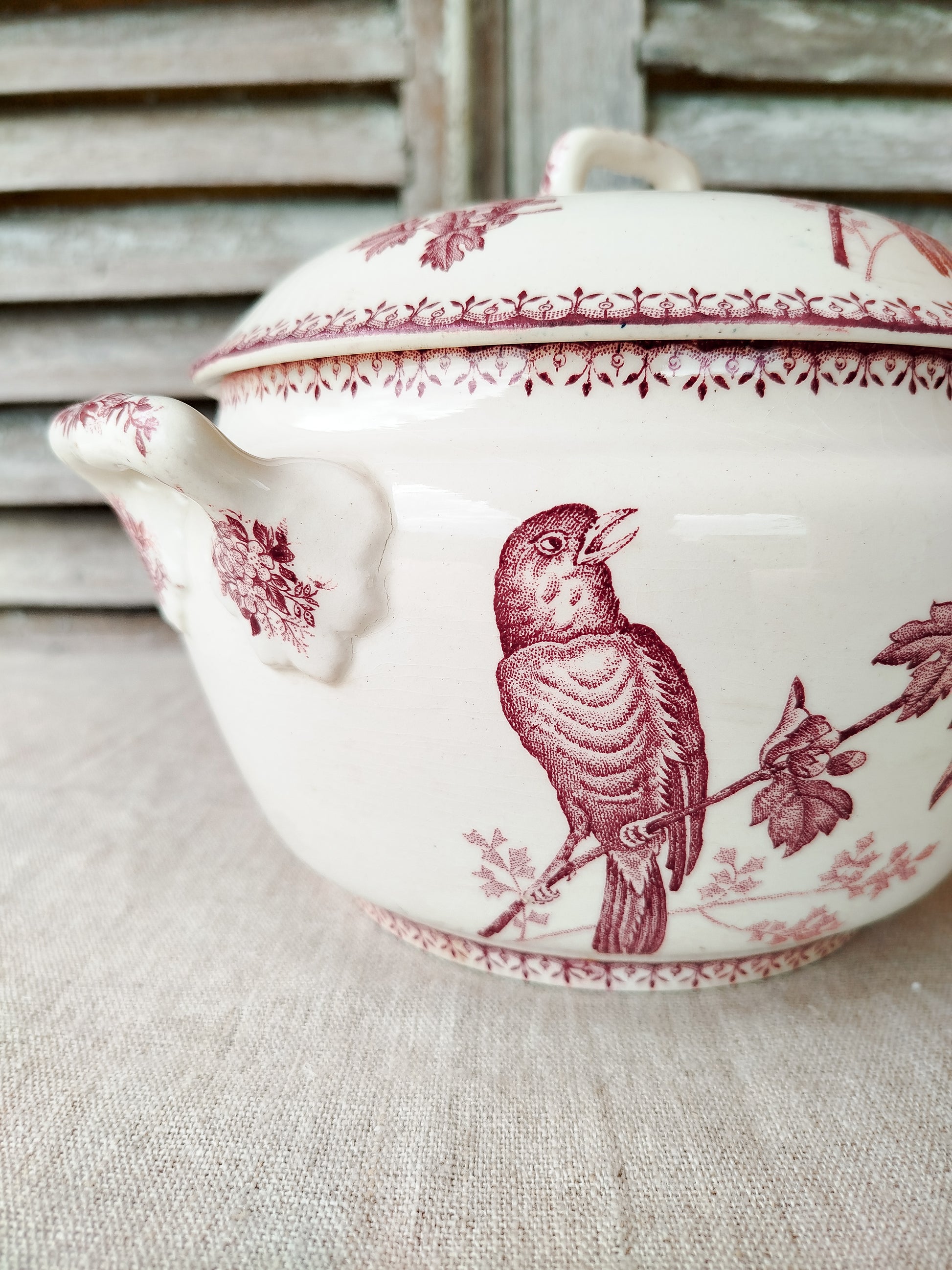 La soupière est estampillée au dessous avec la mention : " Mésange Longwy" ainsi qu'un tampon en creux : " Longwy 2 14 " pour la date de fabrication : février 1914.