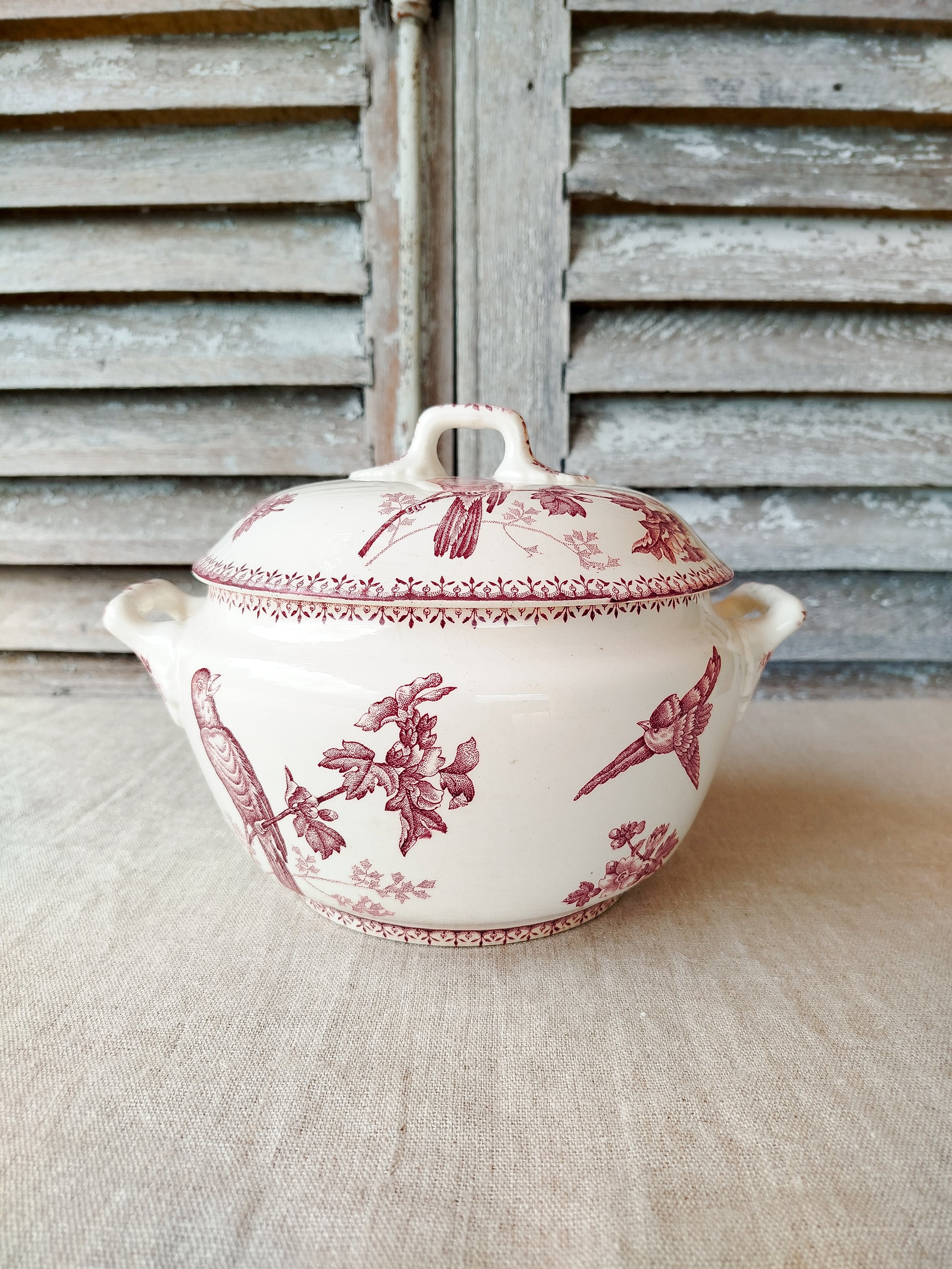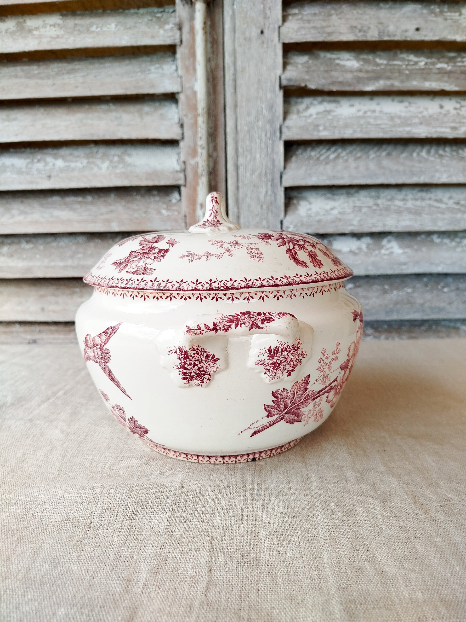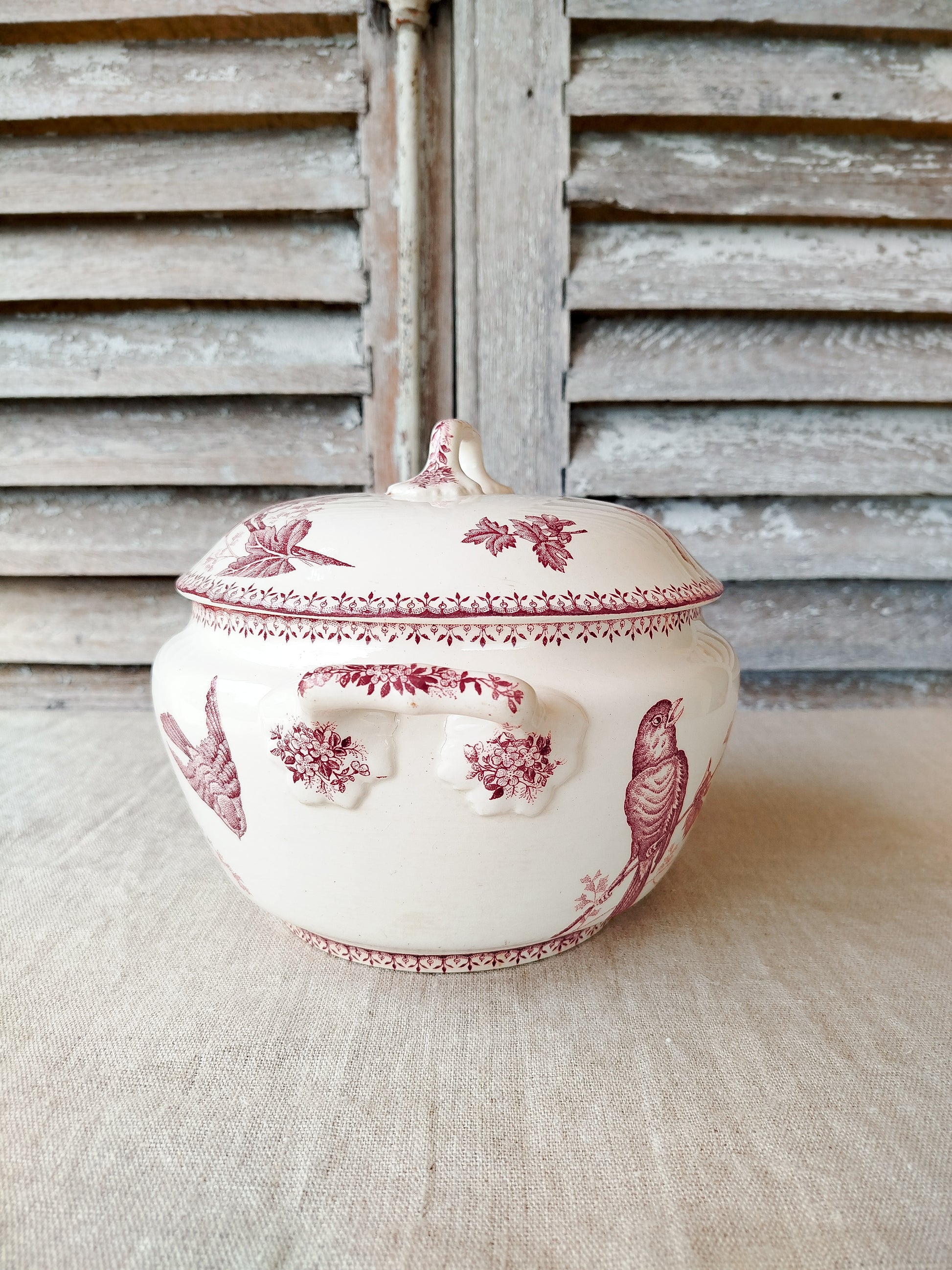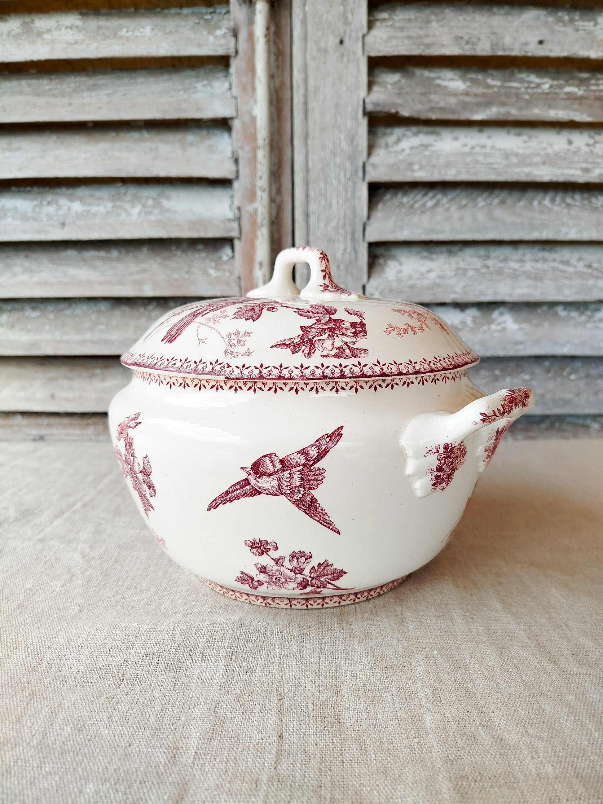 La soupière est estampillée au dessous avec la mention : " Mésange Longwy" ainsi qu'un tampon en creux : " Longwy 2 14 " pour la date de fabrication : février 1914.