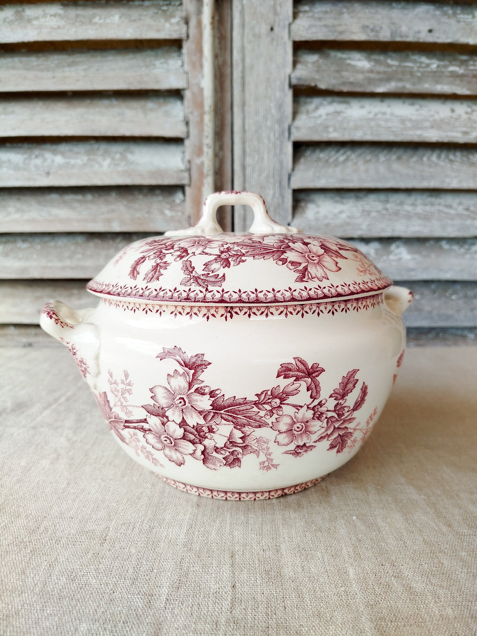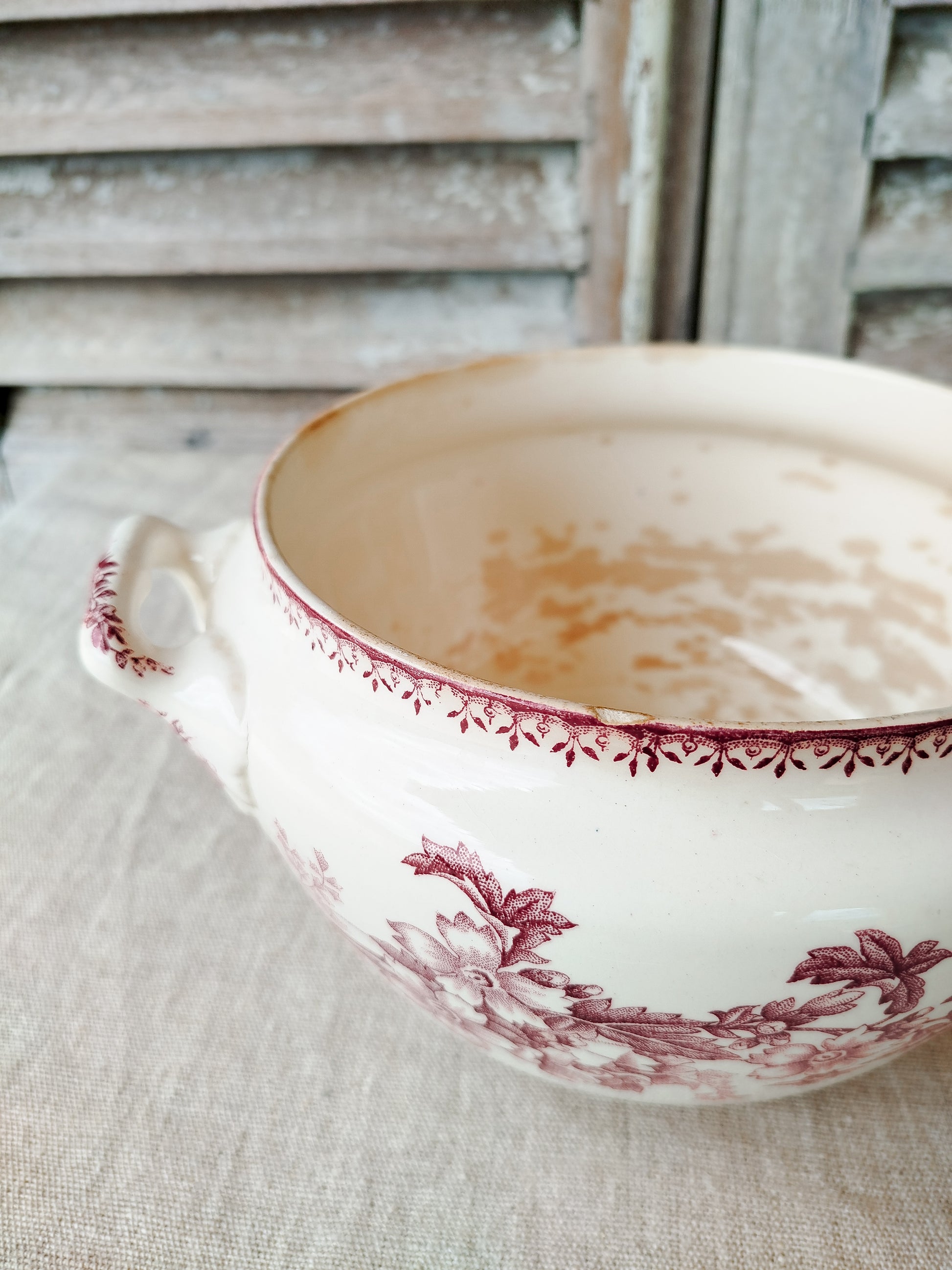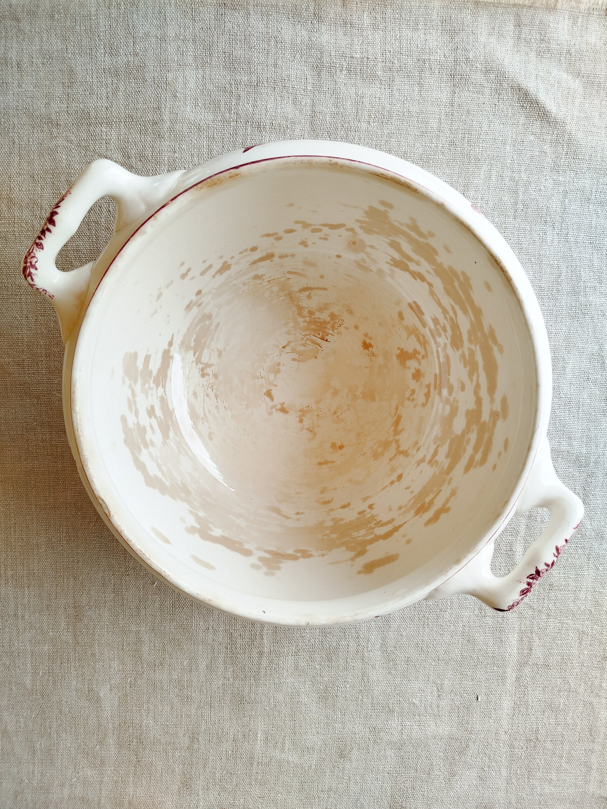 La soupière possède des tâches beiges à l'intérieur, qui sont dûes à une patine ancienne.