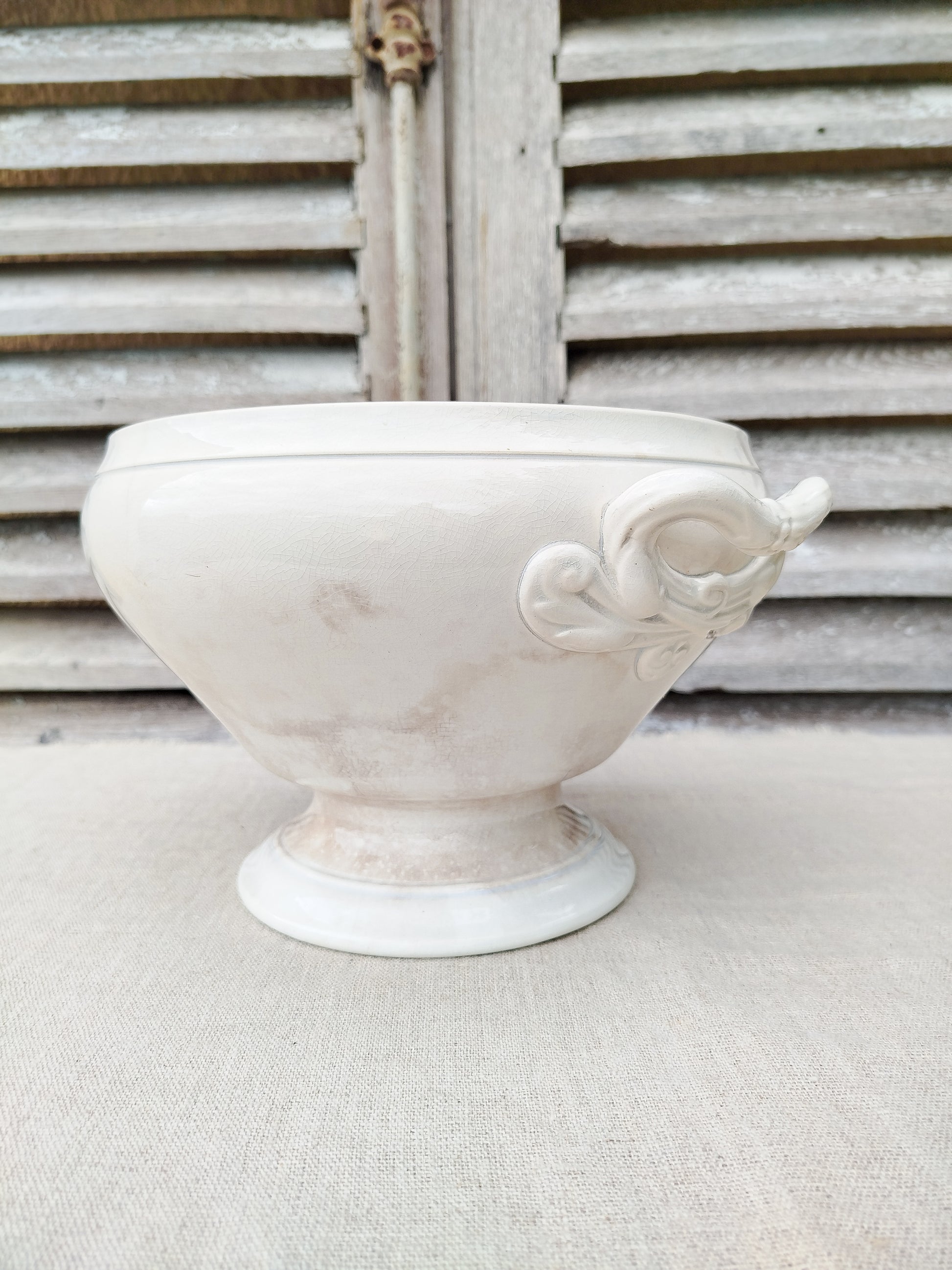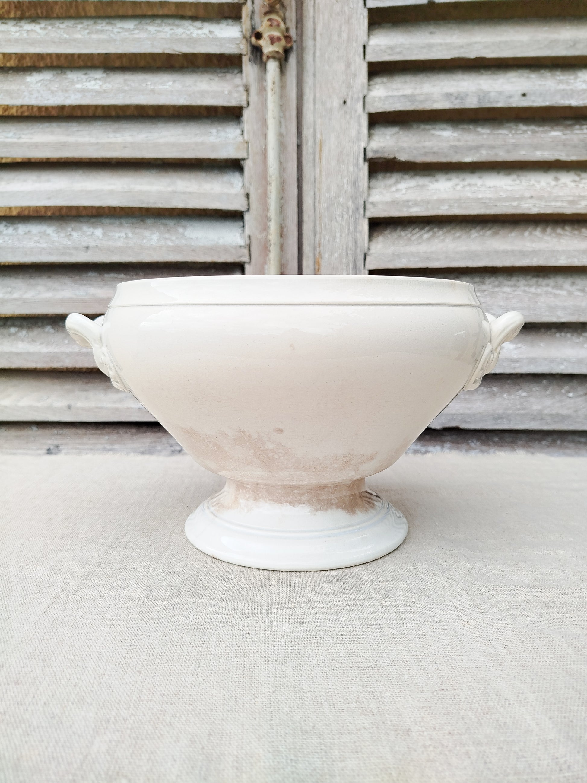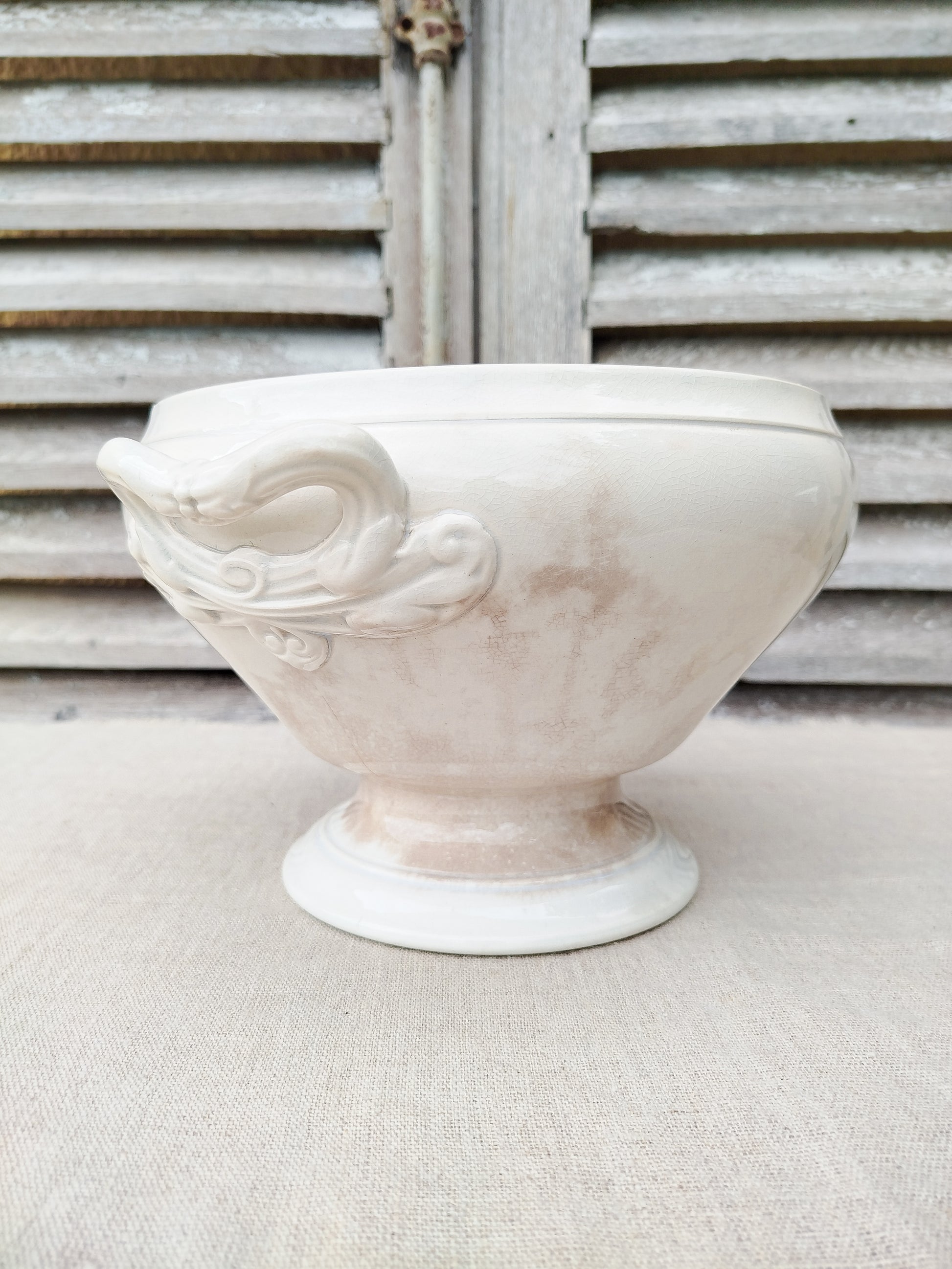 Magnifique soupière ancienne en faïence Opaque de Sarreguemines.