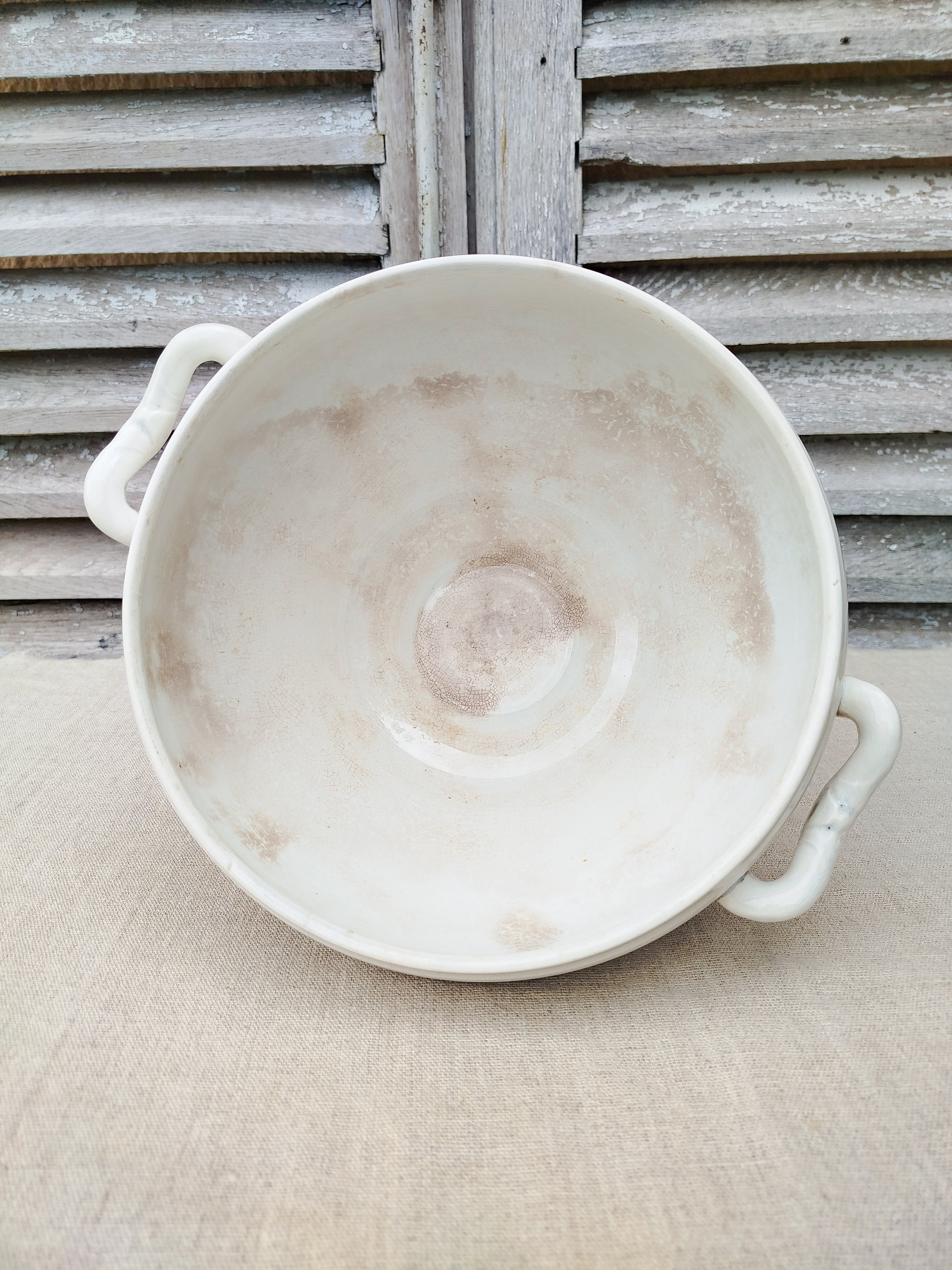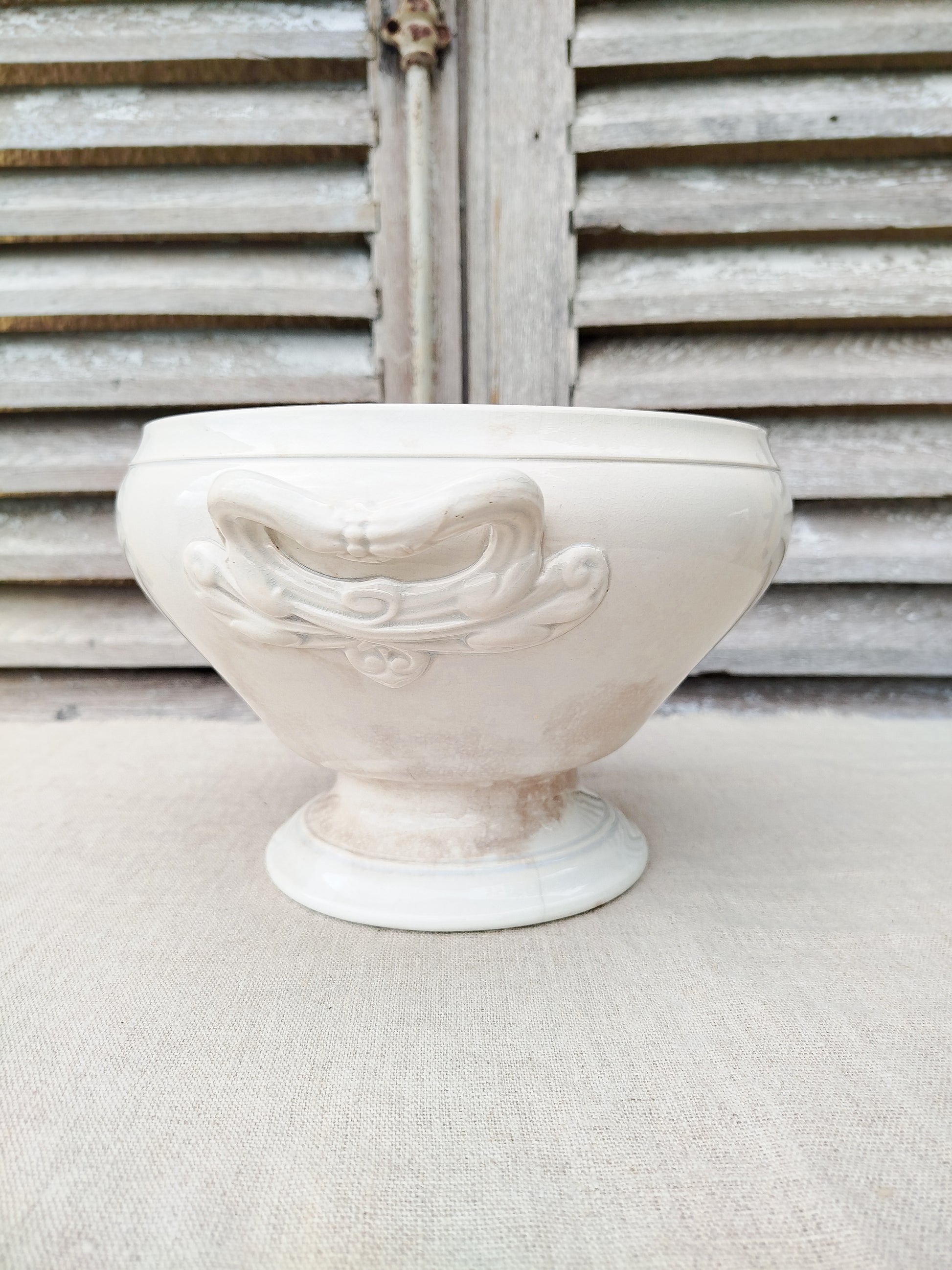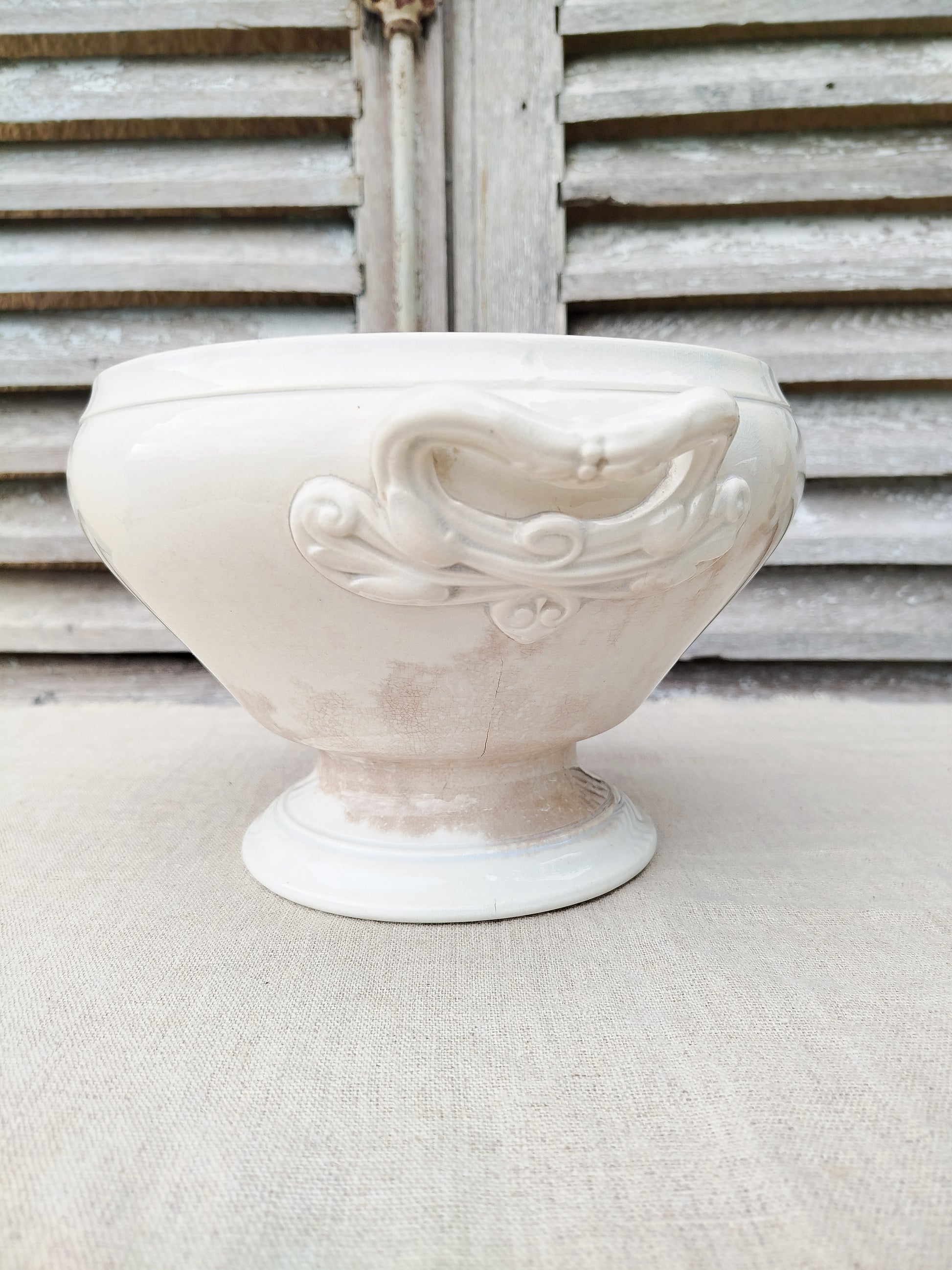 Magnifique soupière ancienne en faïence Opaque de Sarreguemines.