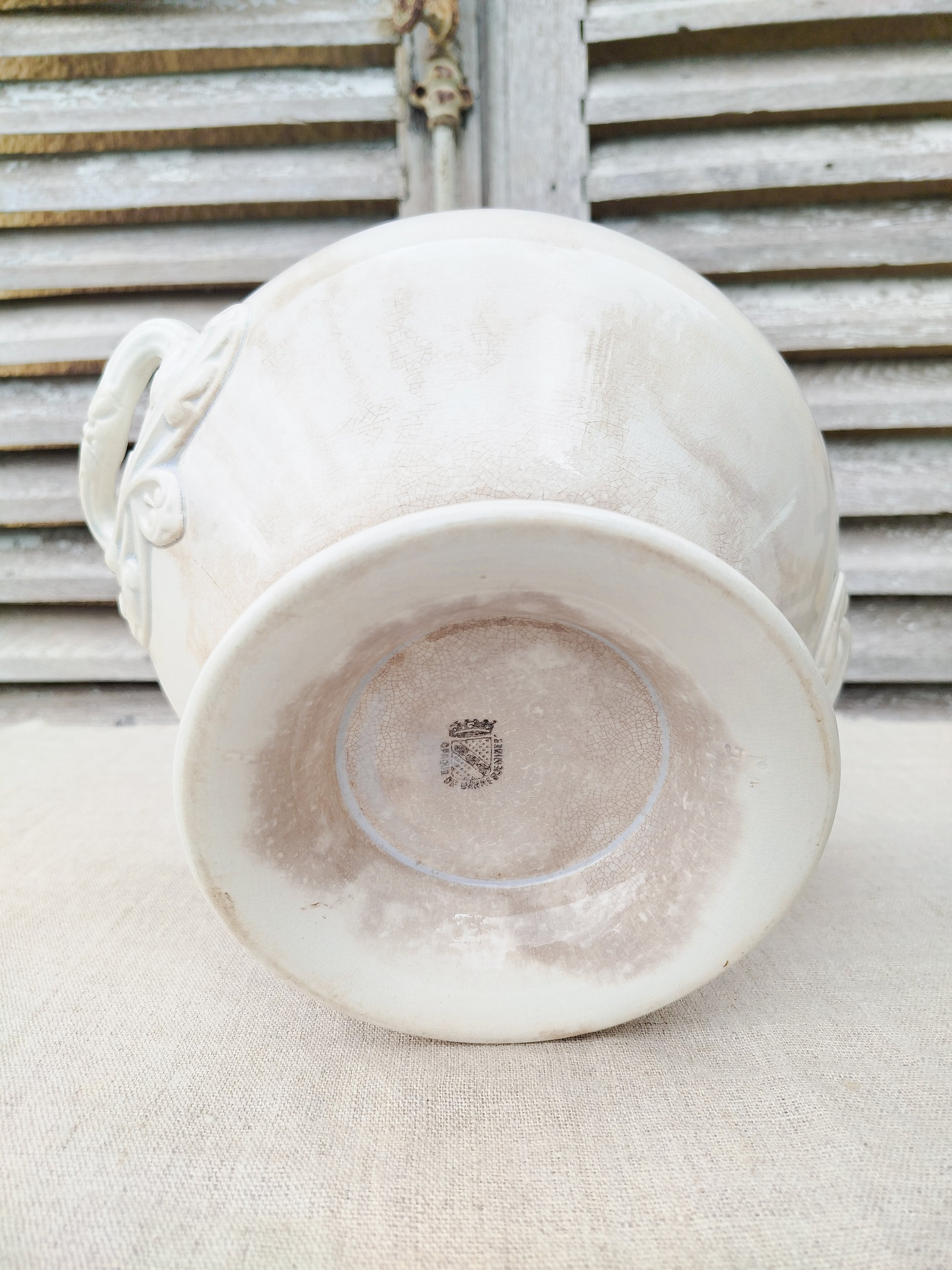 Elle est estampillée au dessous avec la marque " Opaque de Sarreguemines ", sa fabrication est située entre 1875 et 1900.