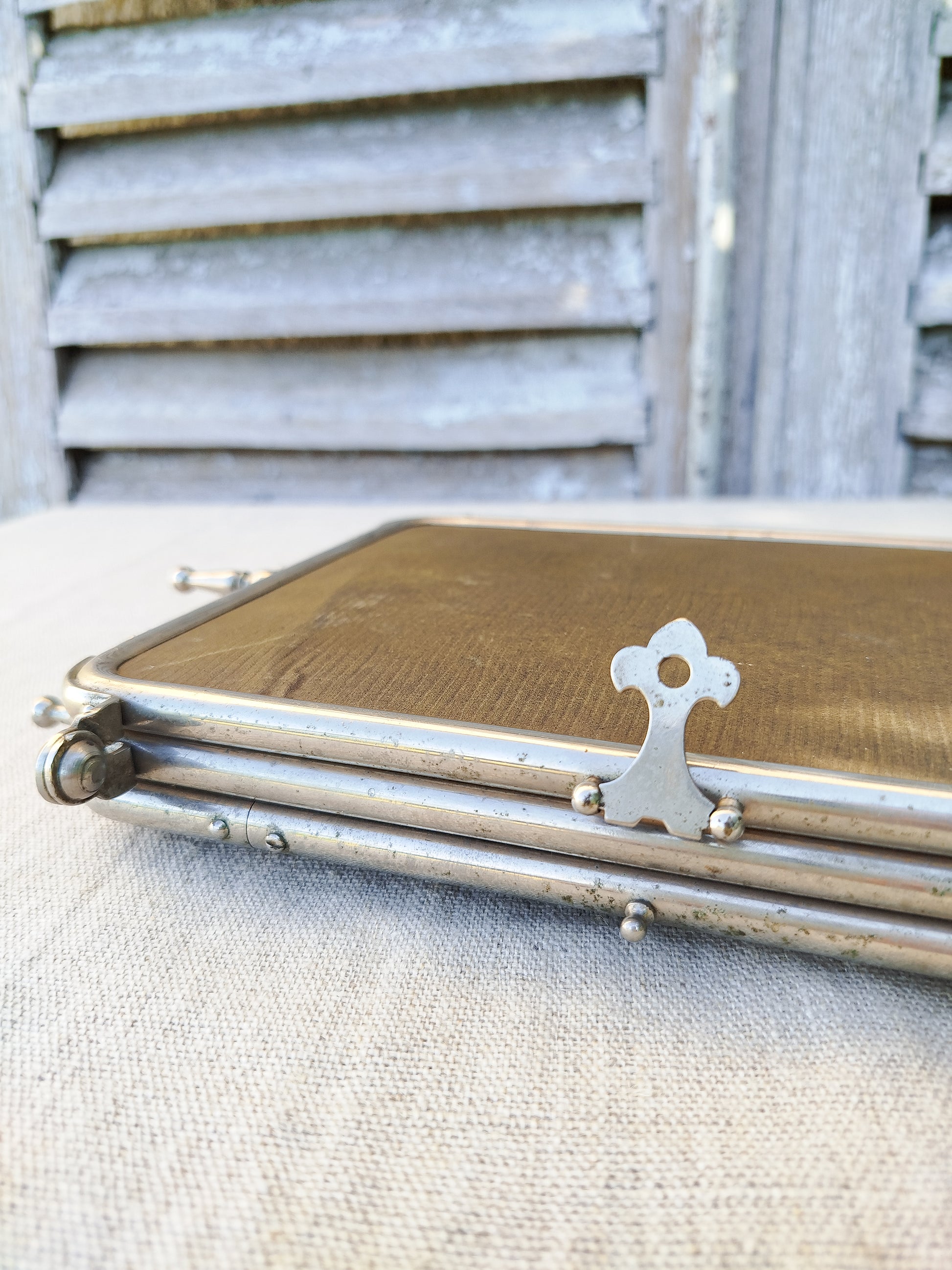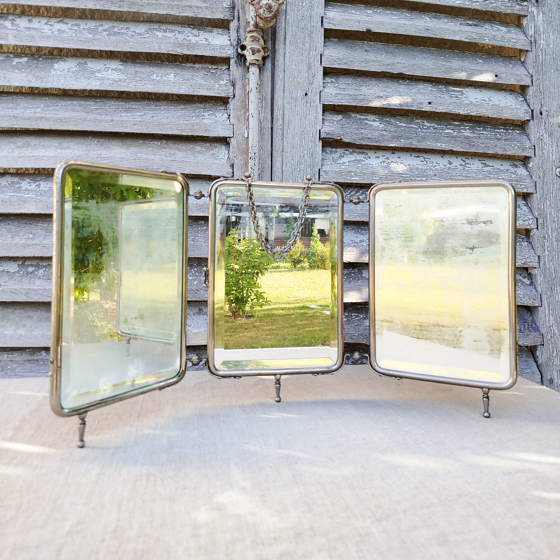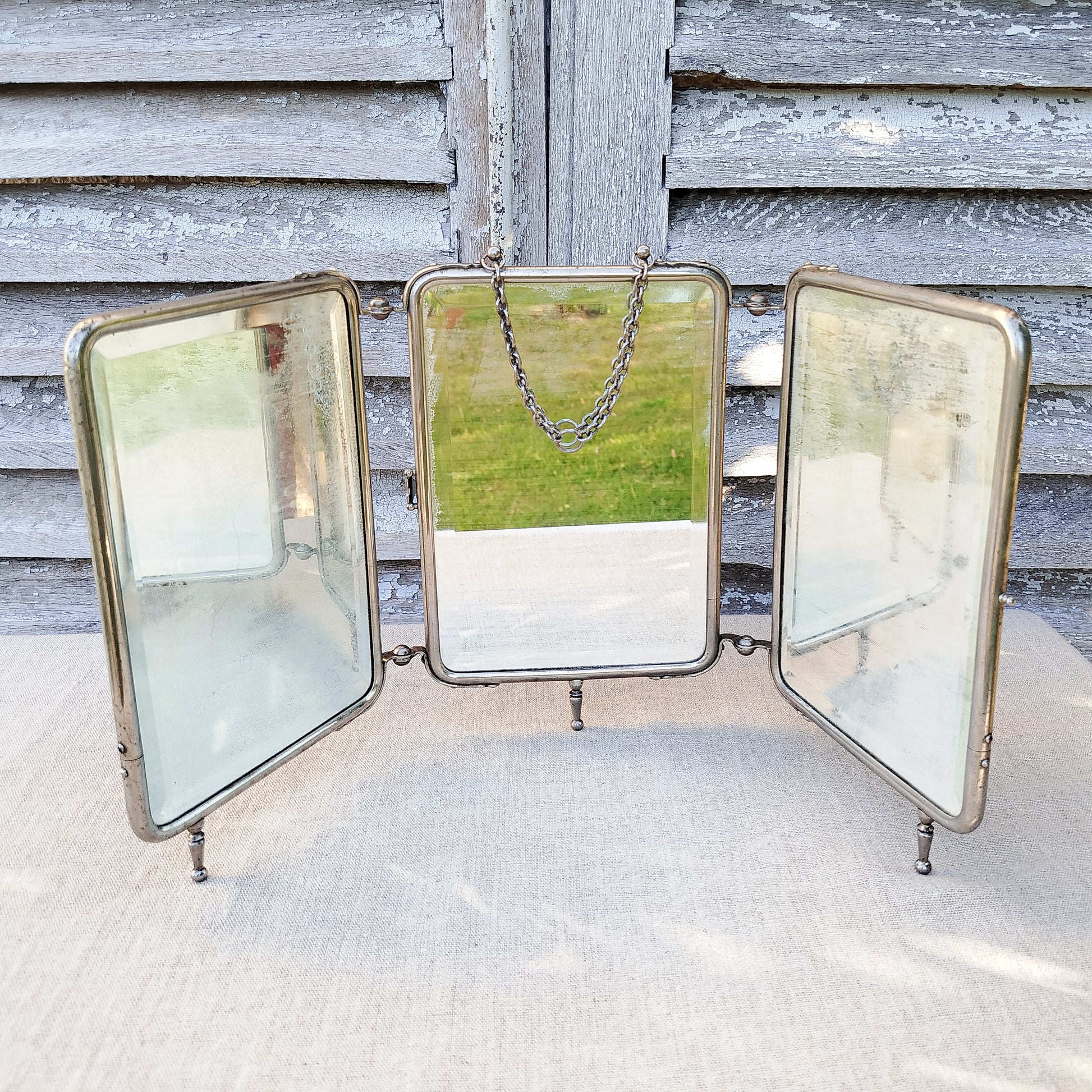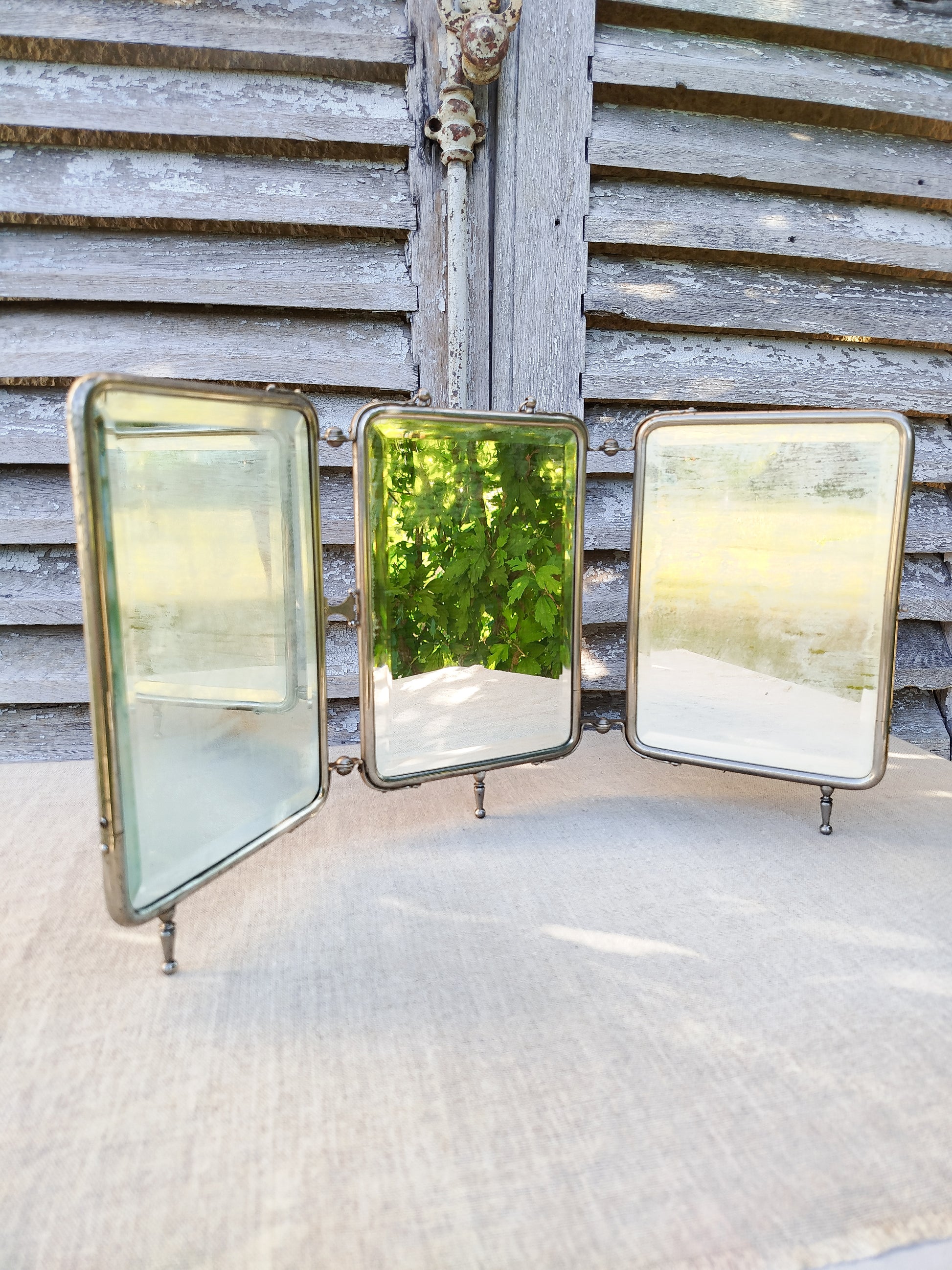 Très bel objet de collection, rare avec ces trois miroirs biseautés, et ses pieds en métal.